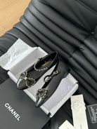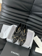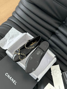 CC BALLET FLATS IN BLACK LAMBSKIN WITH GOLD HARDWARE