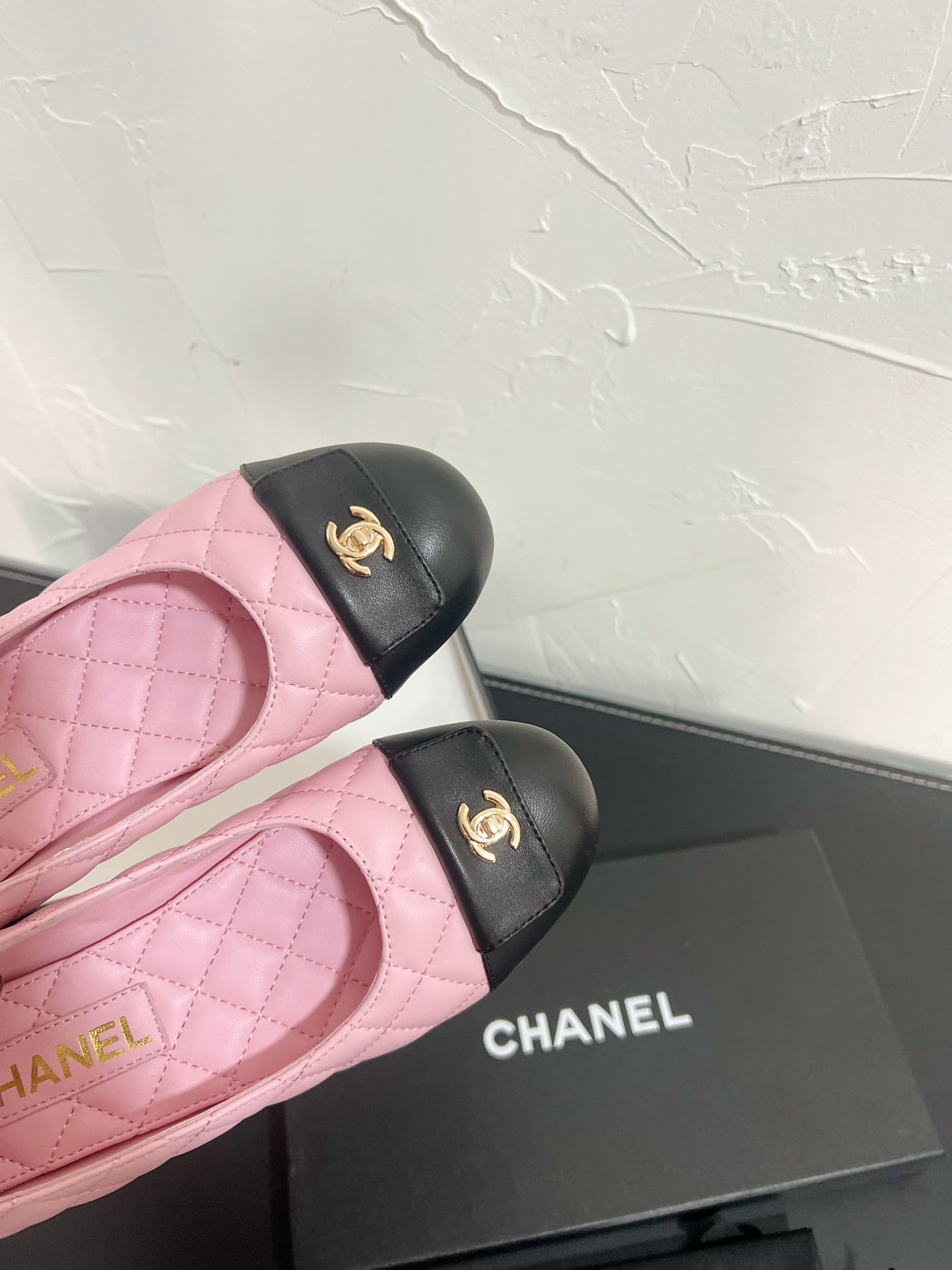 CC Ballet Flats In Pink Mix Black Quilted Lambskin 949714