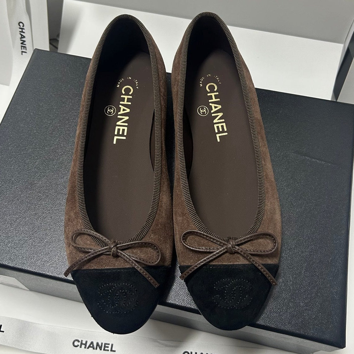 Chanel 25 Ballet Flat Black mix Brown Suede 490045