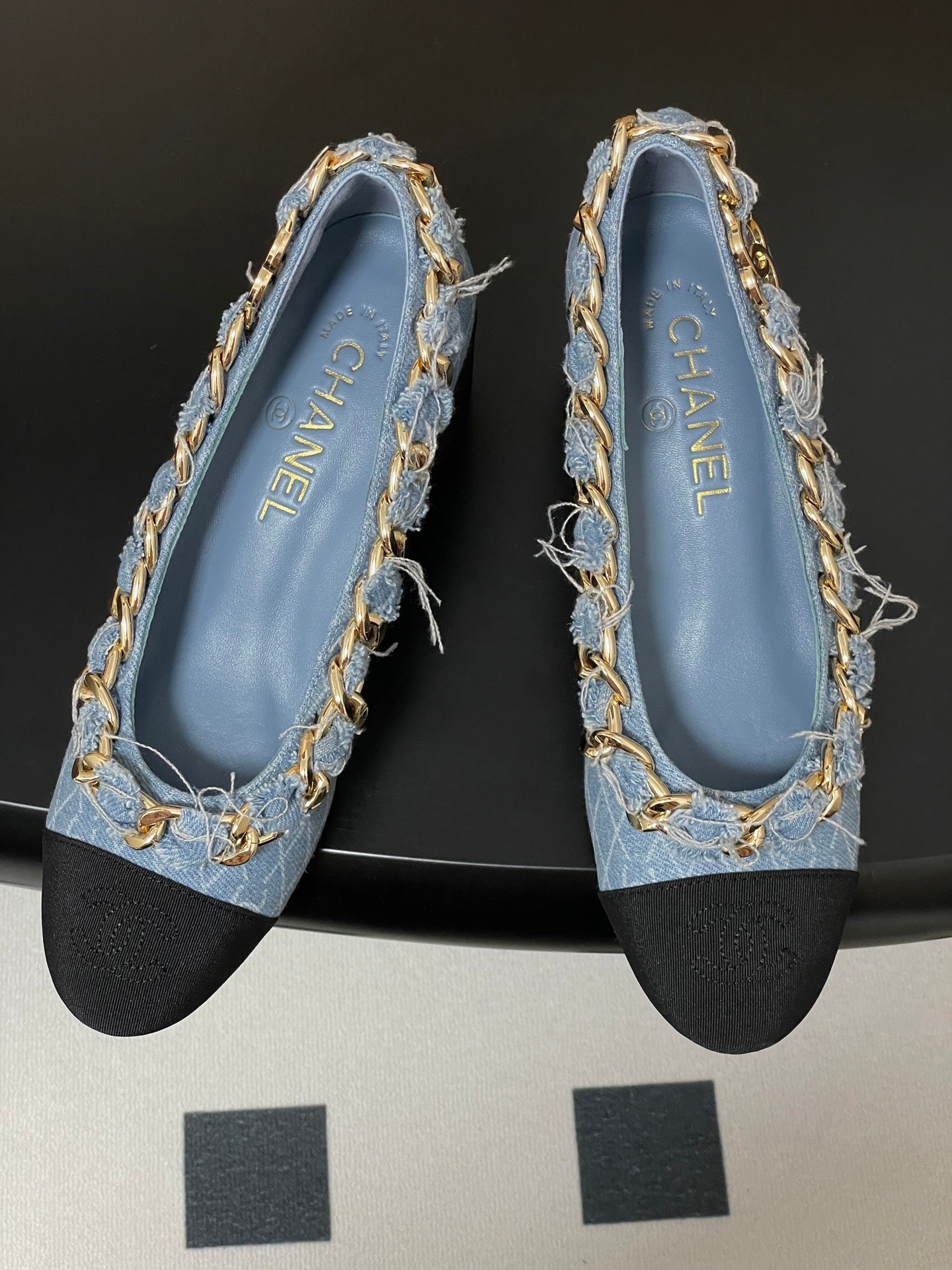 Chanel 25A 55mm Pump Big Chain Double C Blue Denim Sheepskin 393812