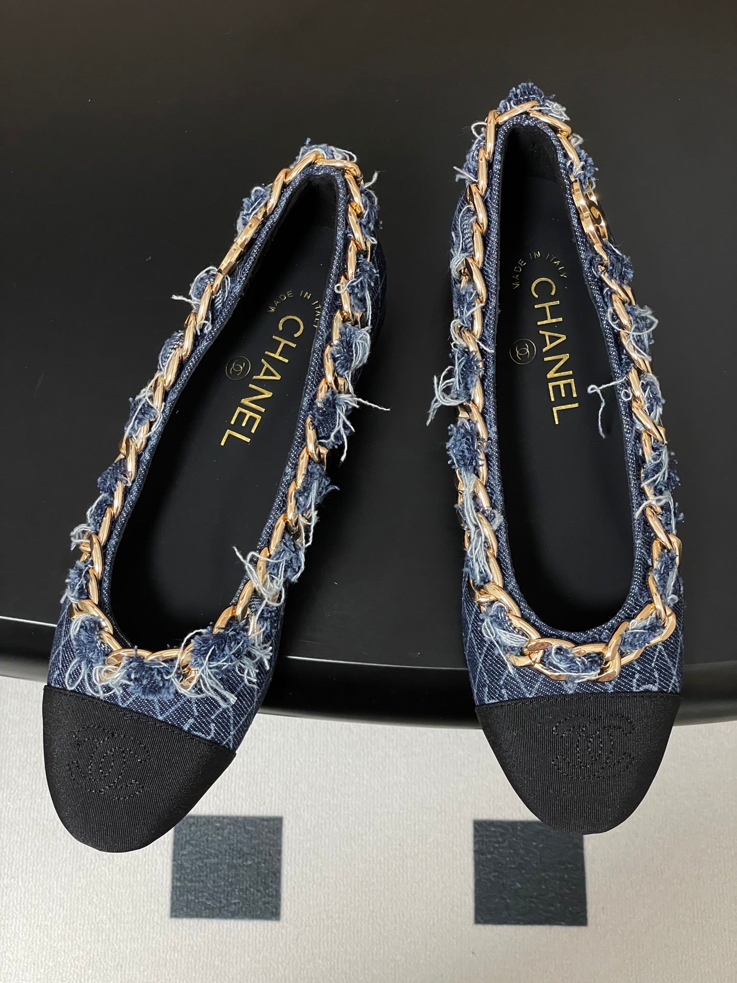 Chanel 25A Ballet Flats Big Chain Double C Dark Blue Denim Sheepskin 393816