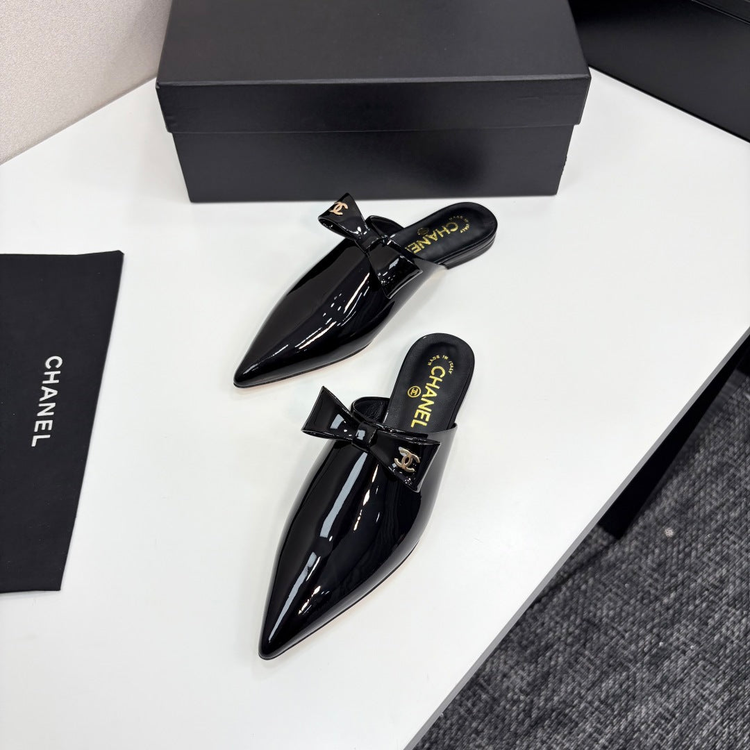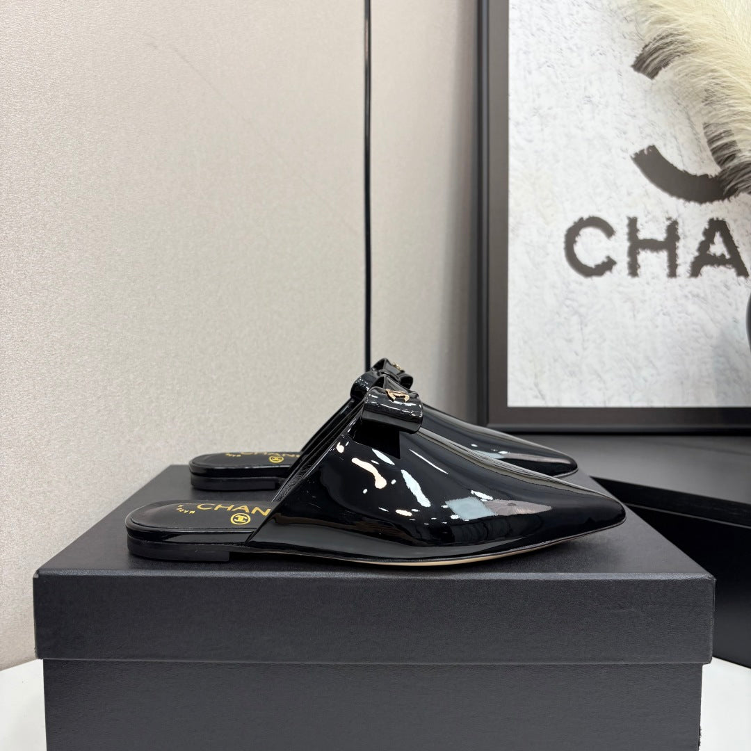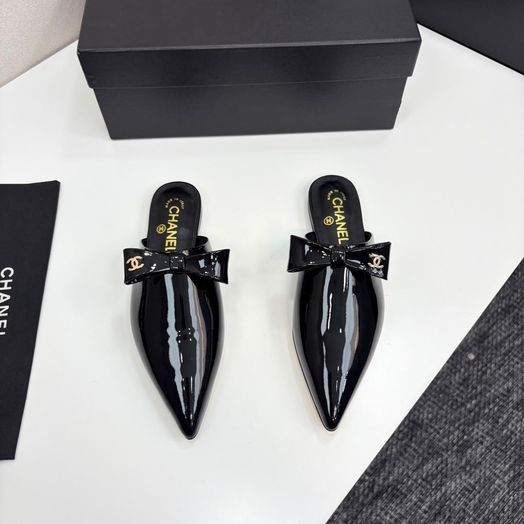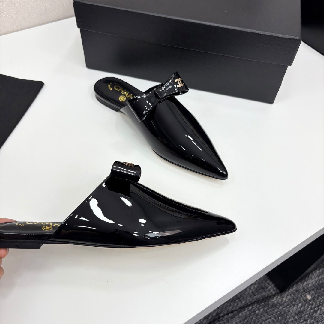 CC 25 Point-Toe Flat Mule Black Patent Calfskin 352472