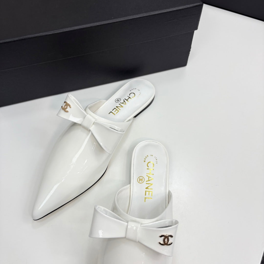 CC 25 Point-Toe Flat Mule White Patent Calfskin 352473