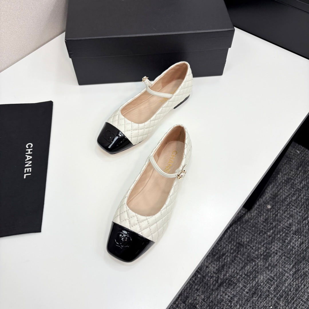 CC25 Mary Janes White Tweed And Black Cowhide 352506