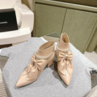 CC 24A Pearl Bow Ankle Boots 65mm Beige Sheepskin 447469