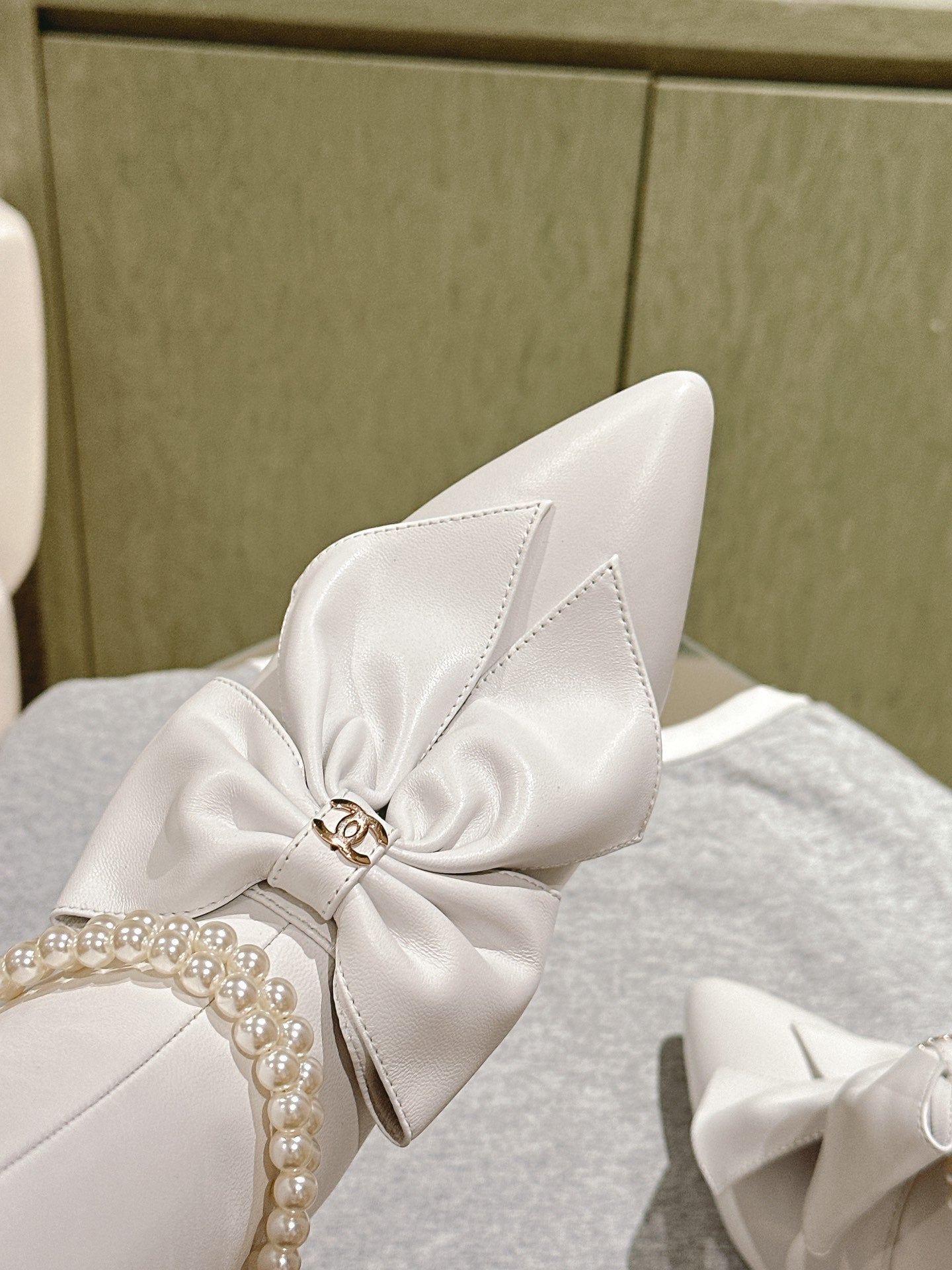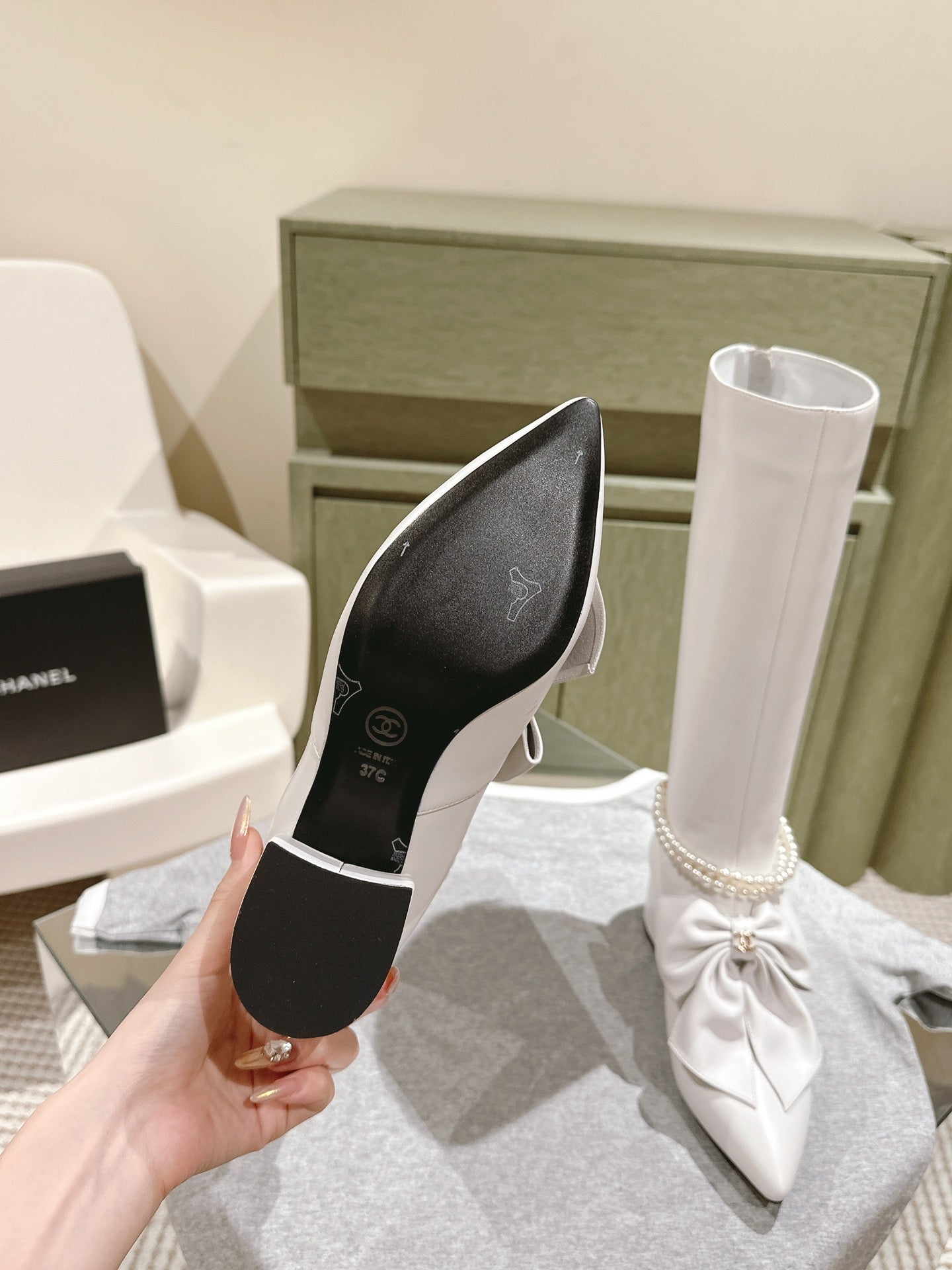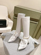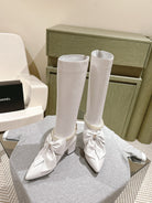 CC 24A Pearl Bow Knee-High Boots 65mm White Sheepskin 447464