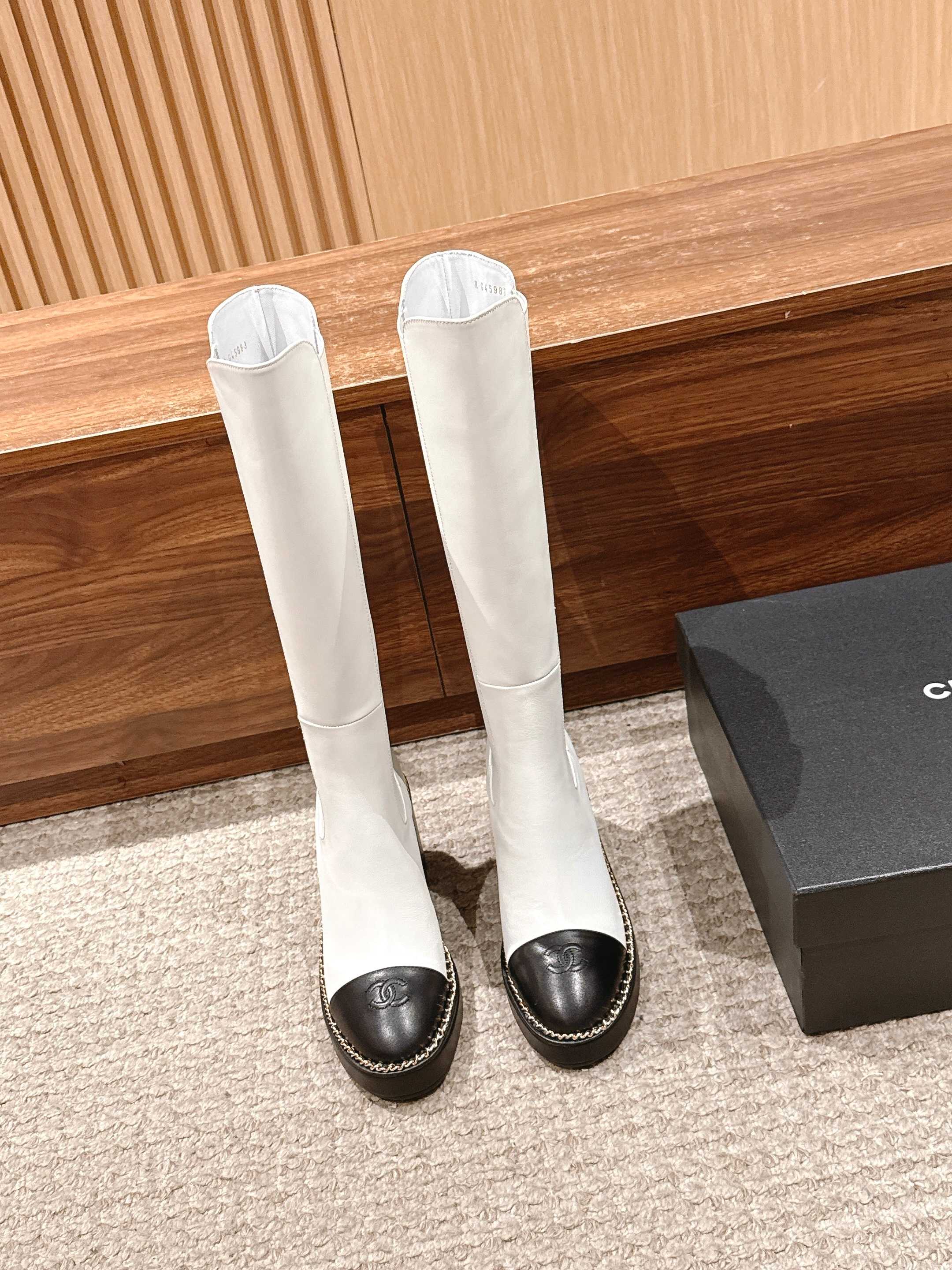 CC 25 Chelsea High Boots With Chain 85mm Black White Calfskin 428215
