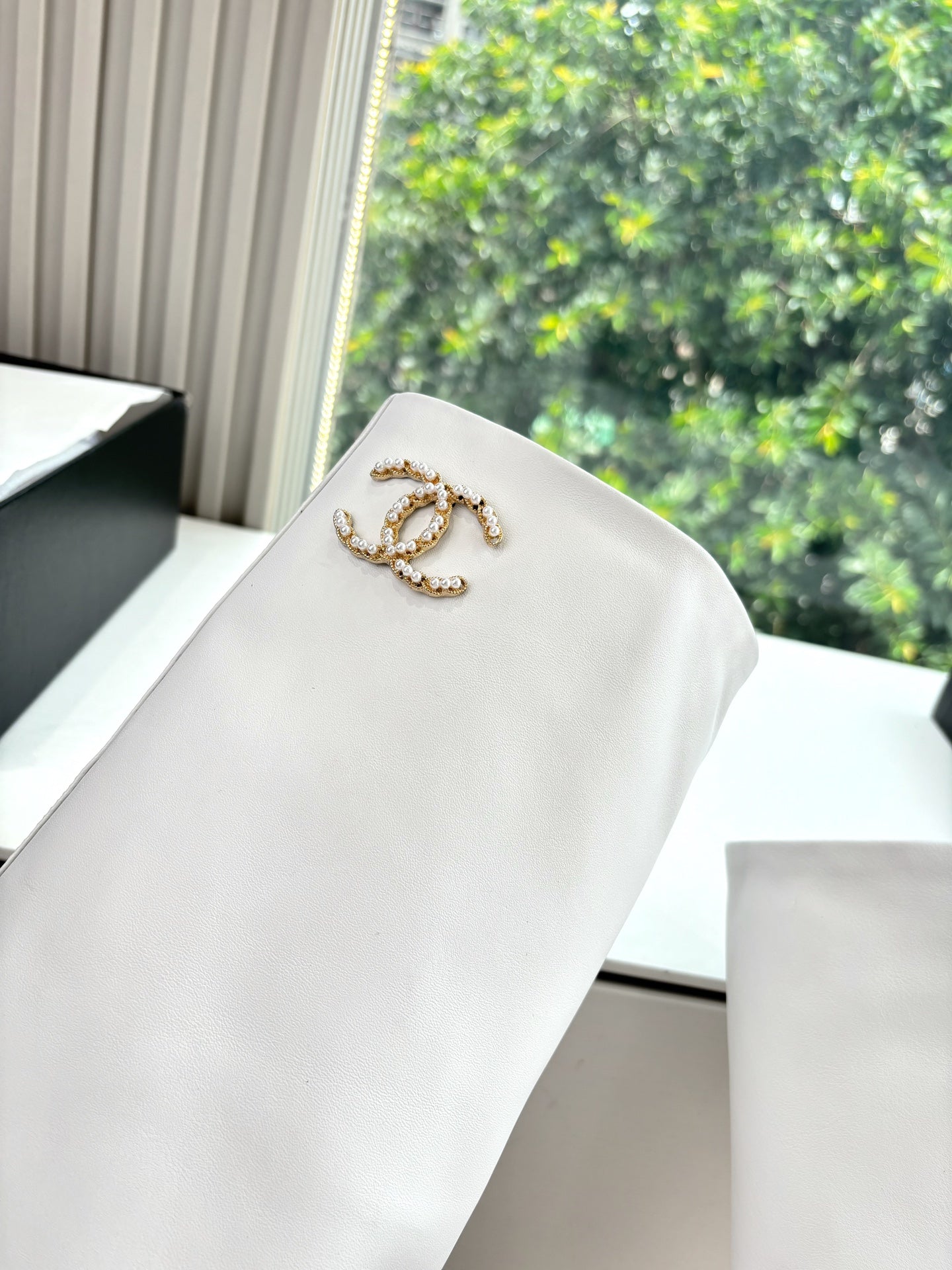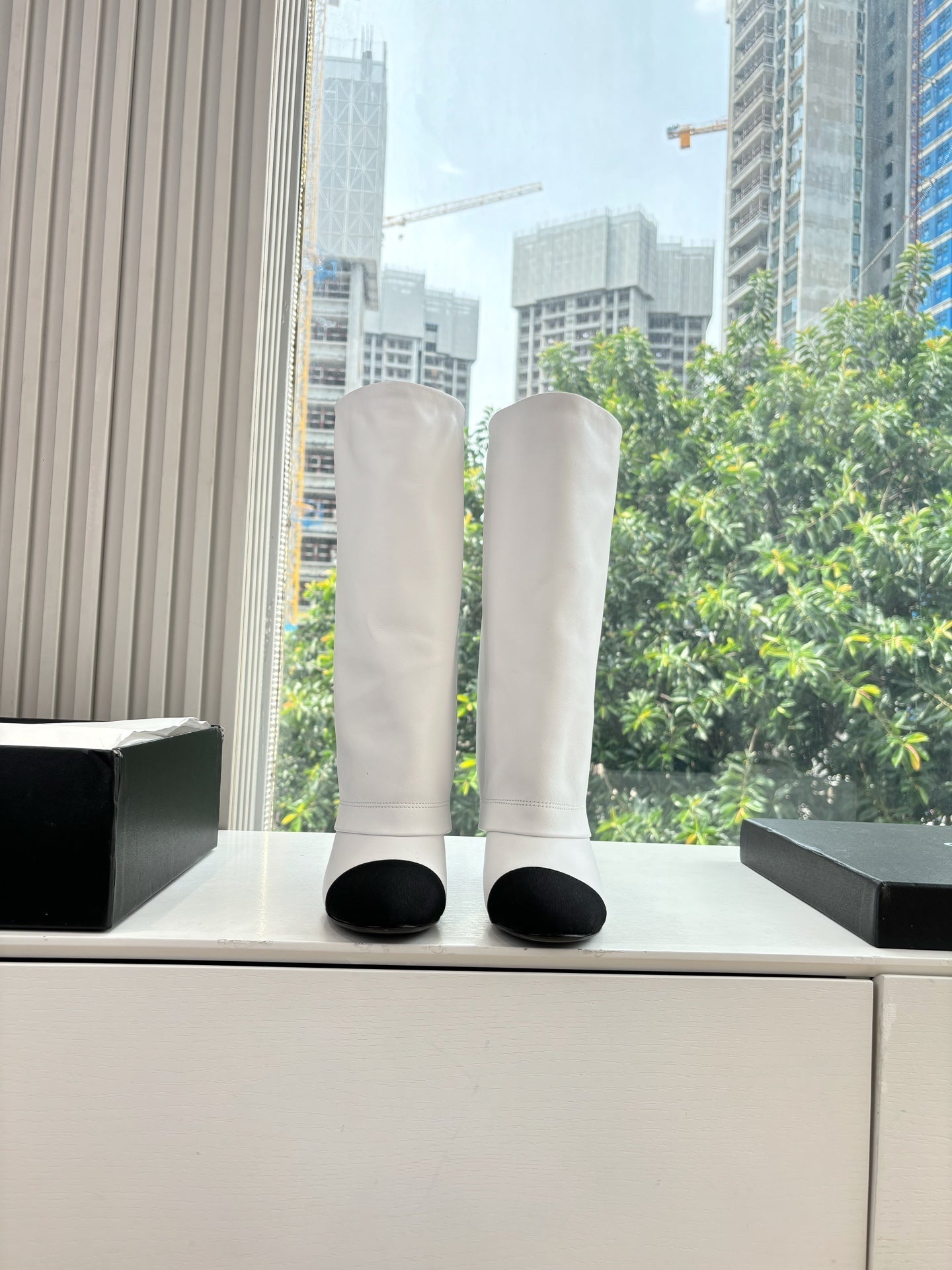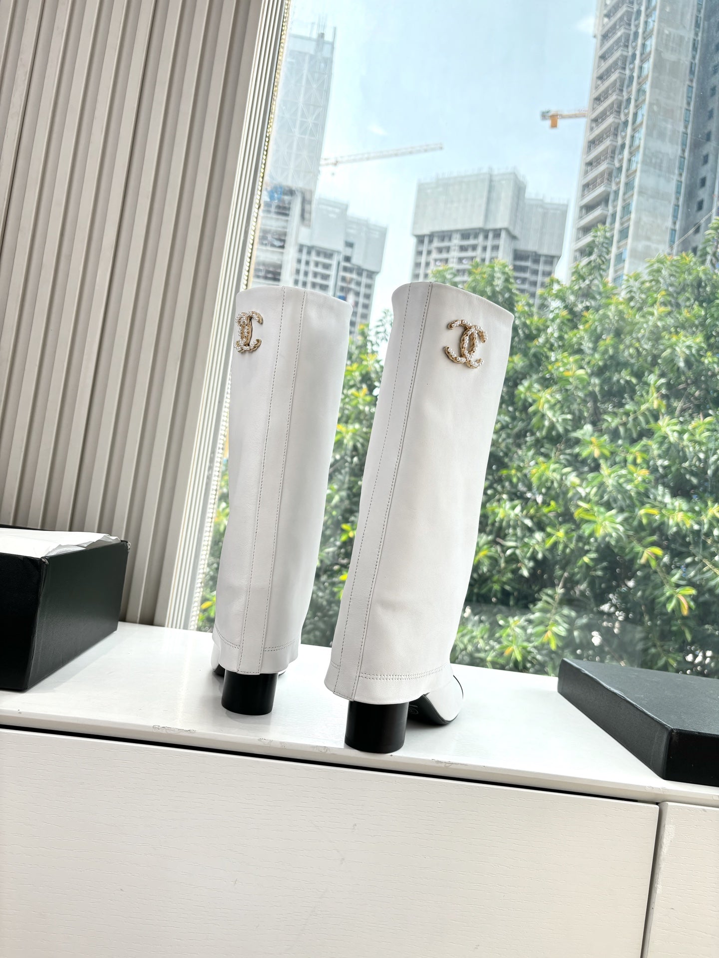 CC 25 High Boot White Calfskin Black Grosgrain 430336