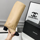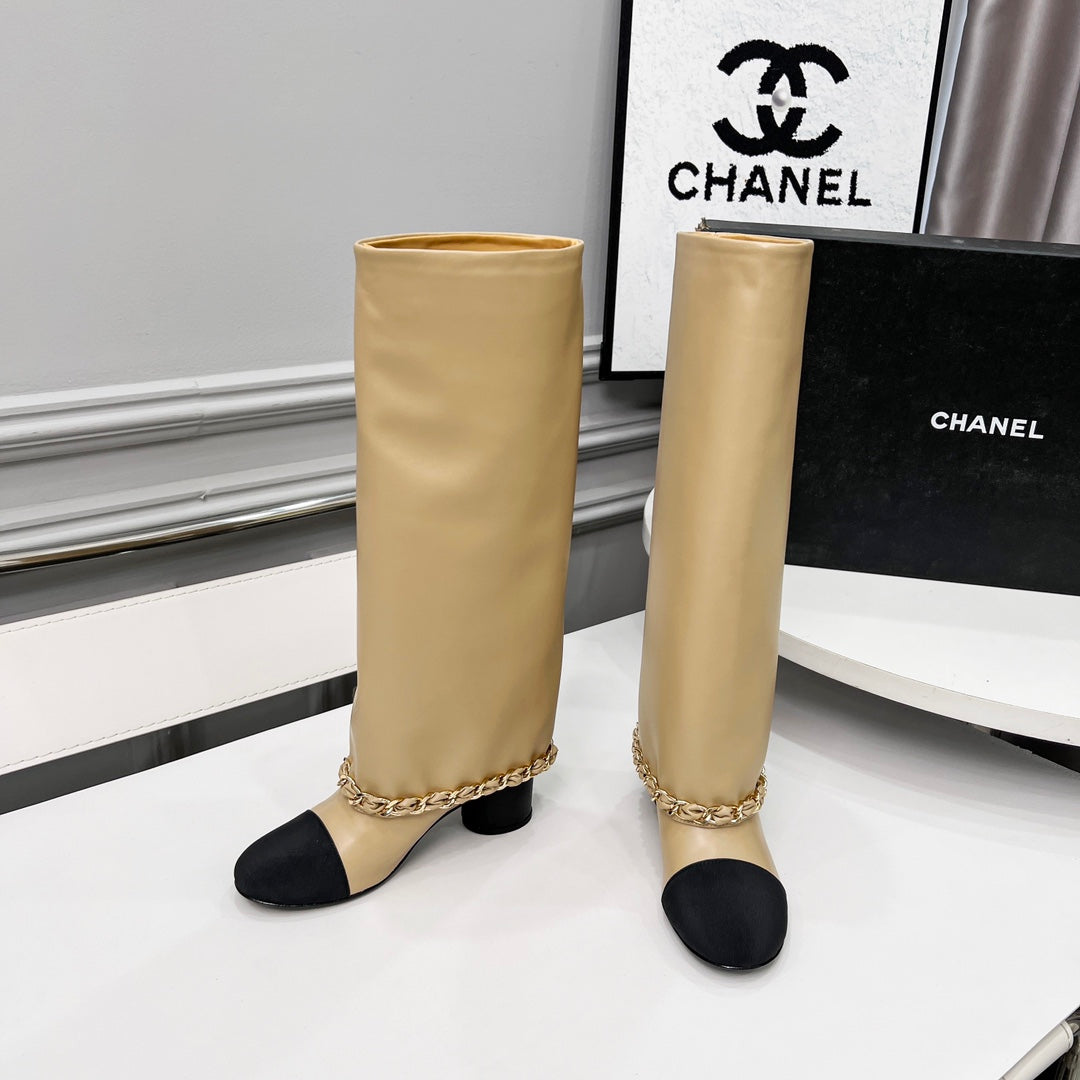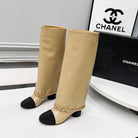 CC 25 High Boots With Chain 55mm Beige Cowhide Black Grosgrain 374025
