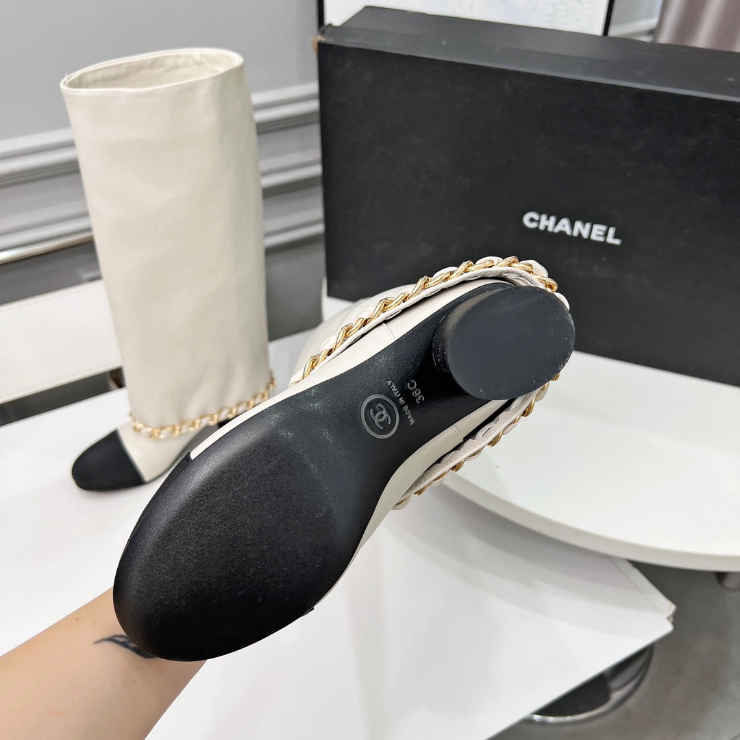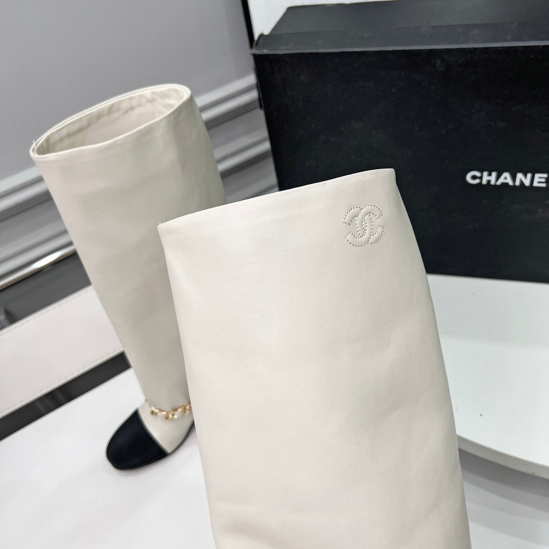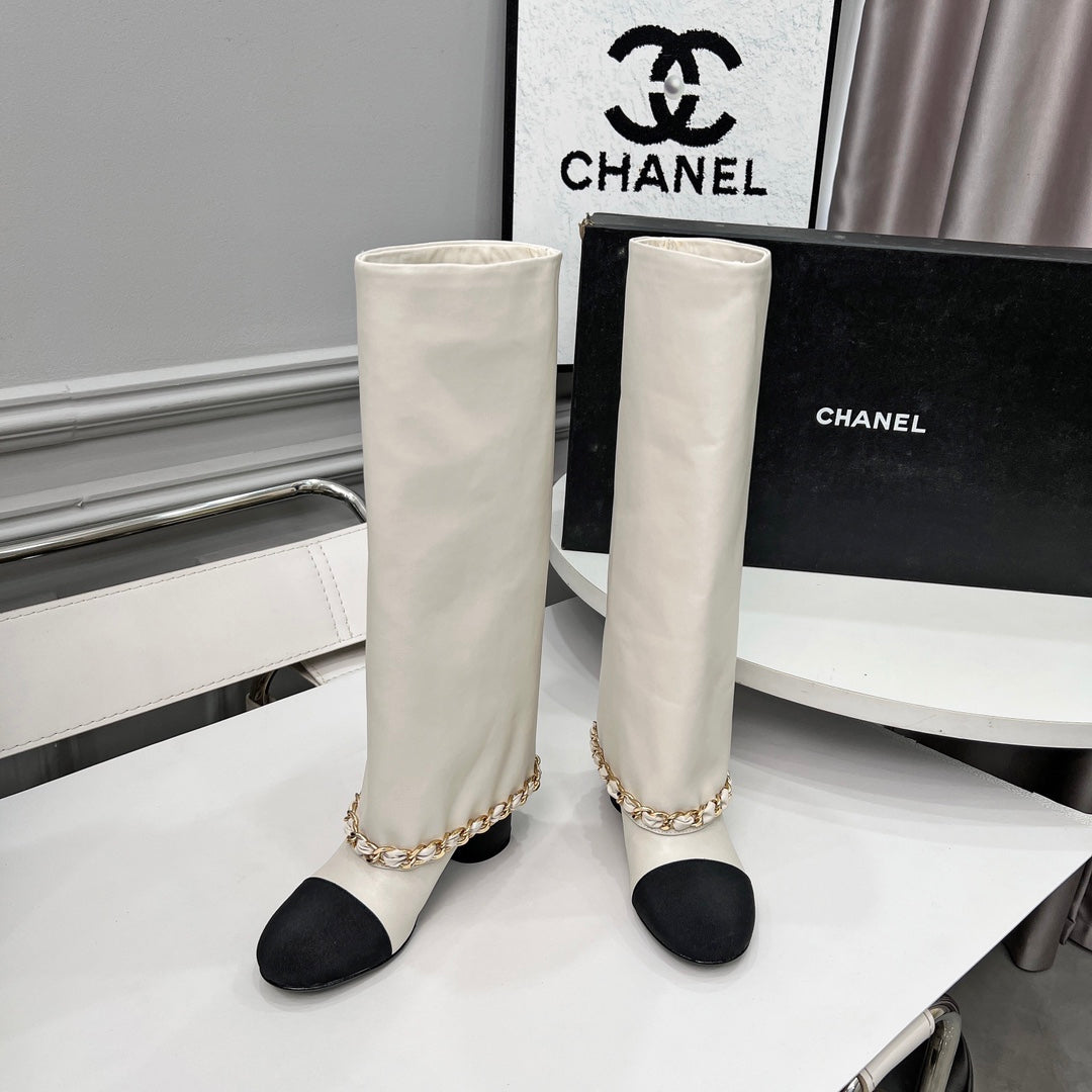 CC 25 High Boots With Chain 55mm White Cowhide Black Grosgrain 374024