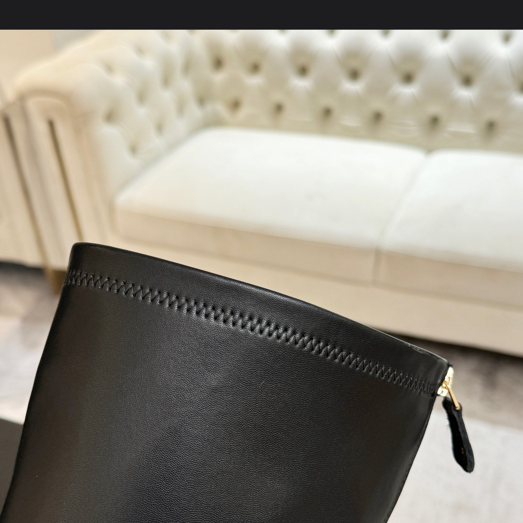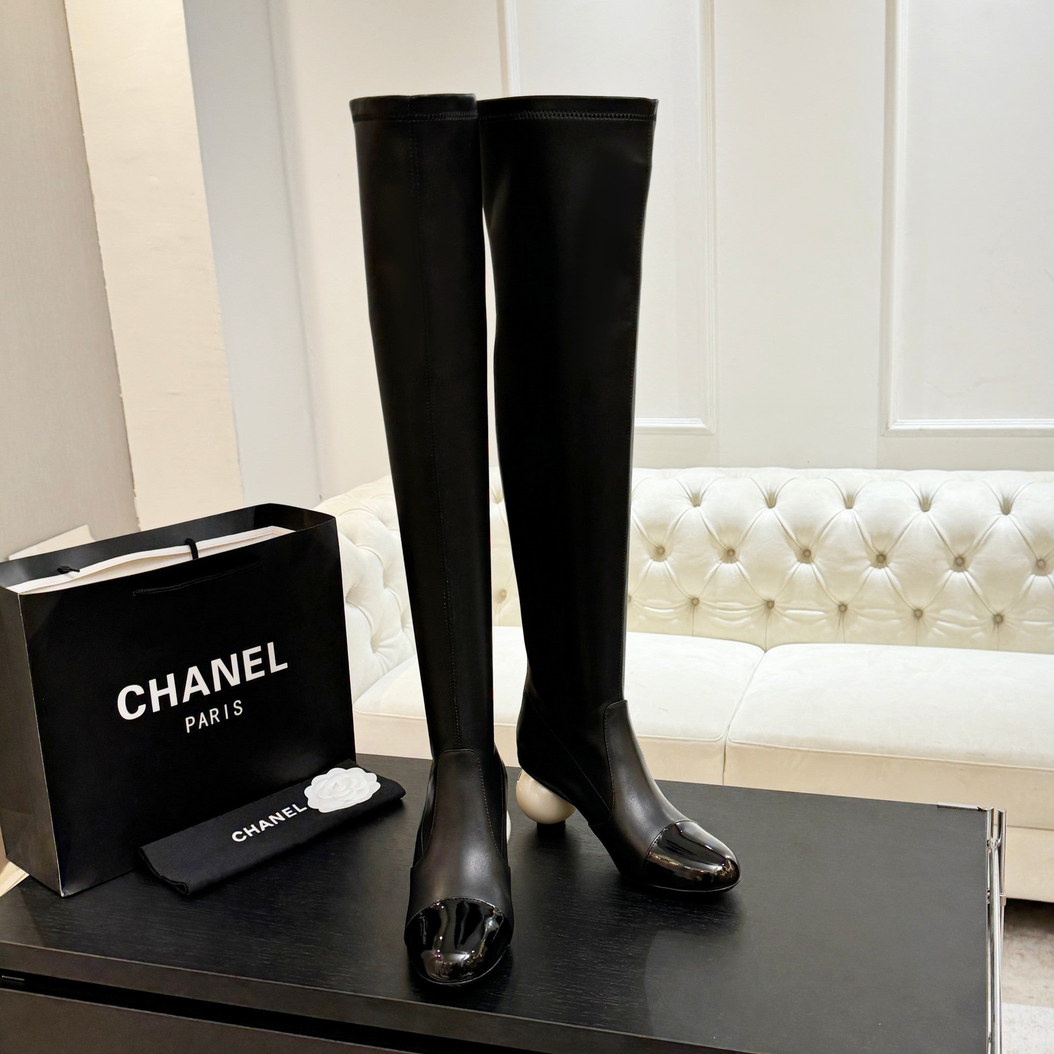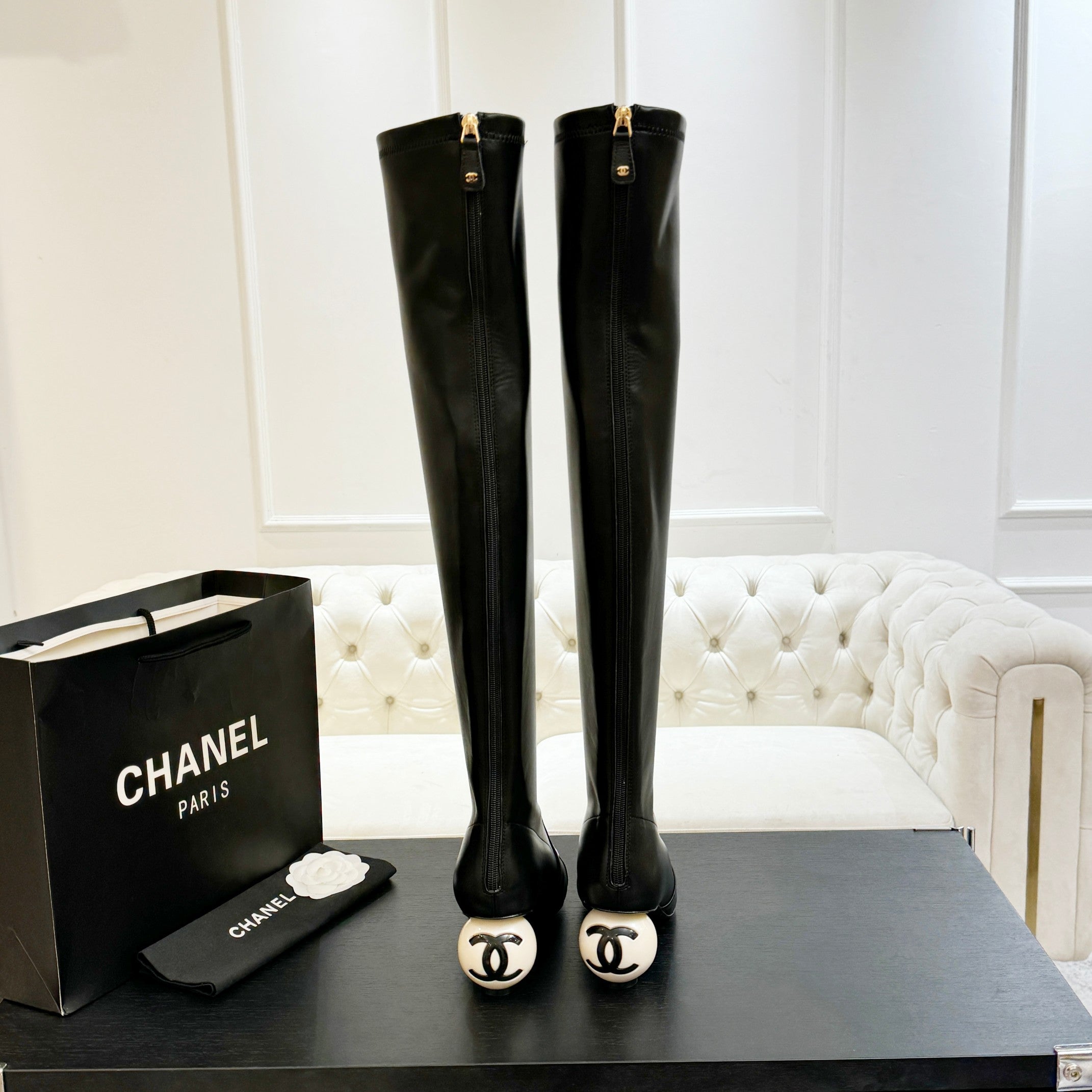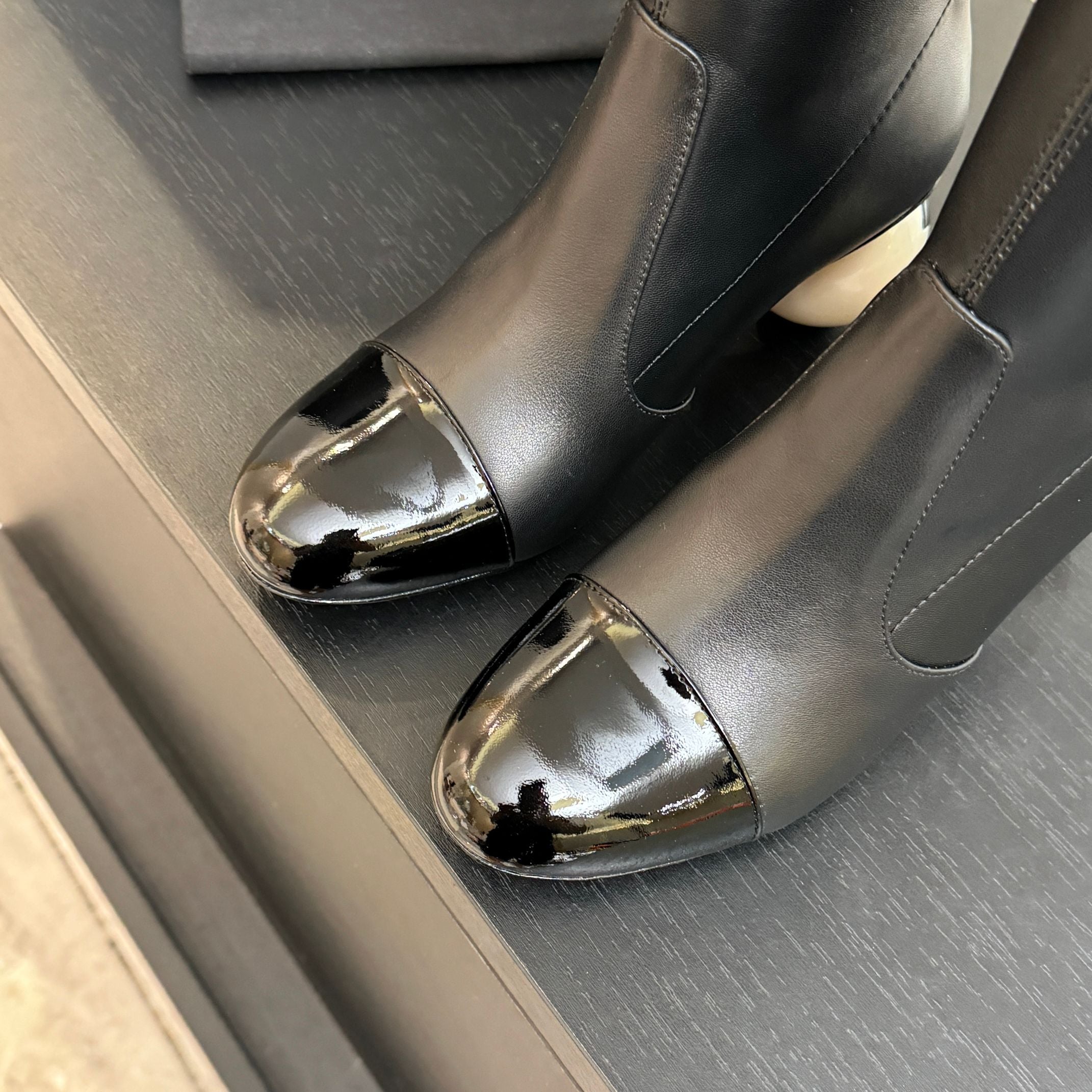 CC 25A Double C Giant Pearl Heel Boots 50mm Black Cowhide 454946