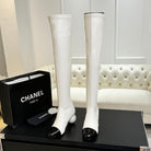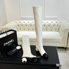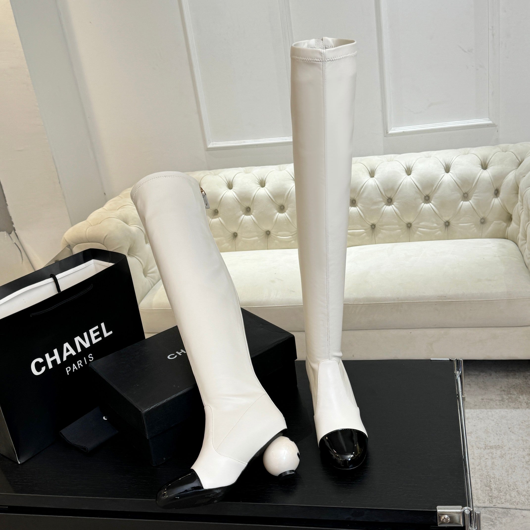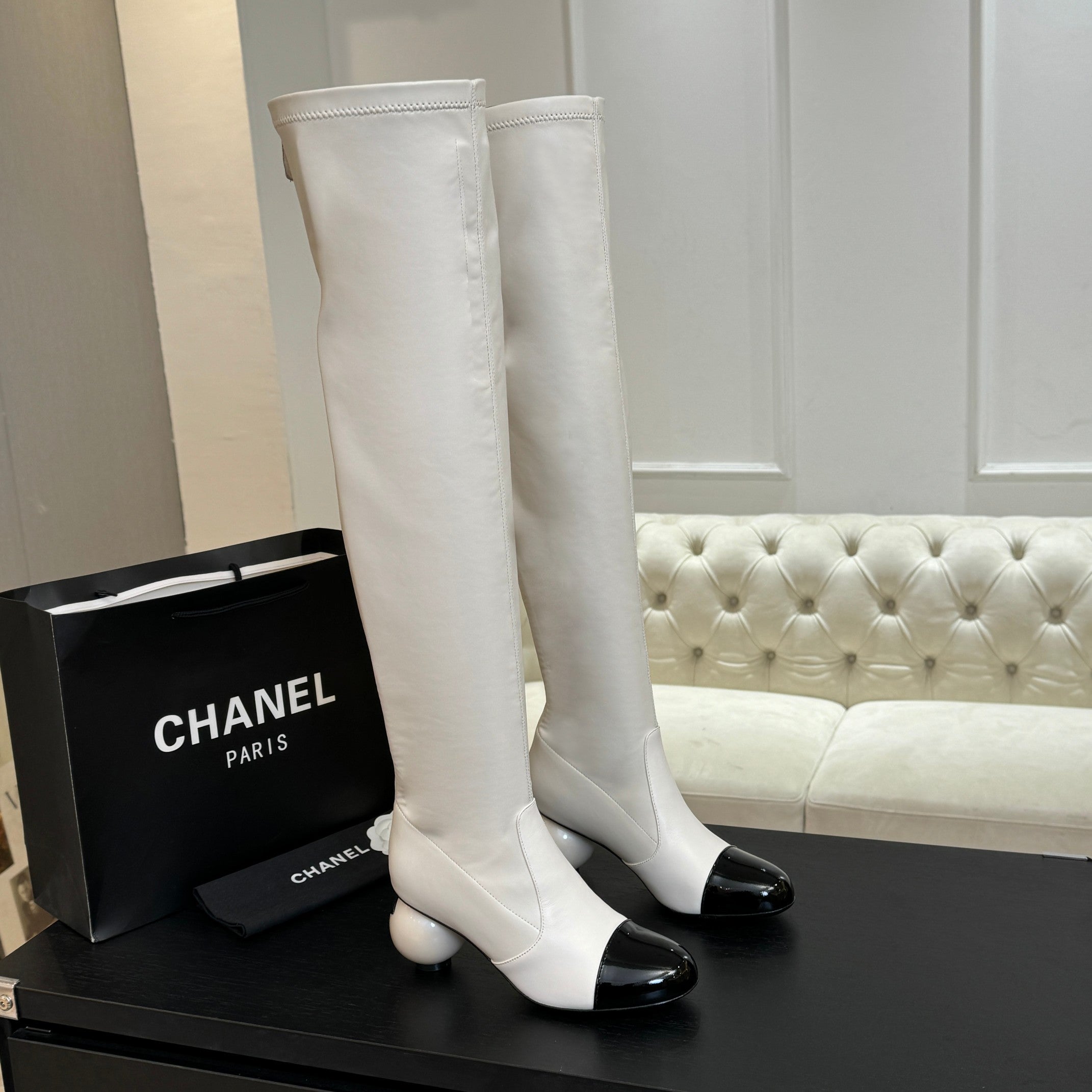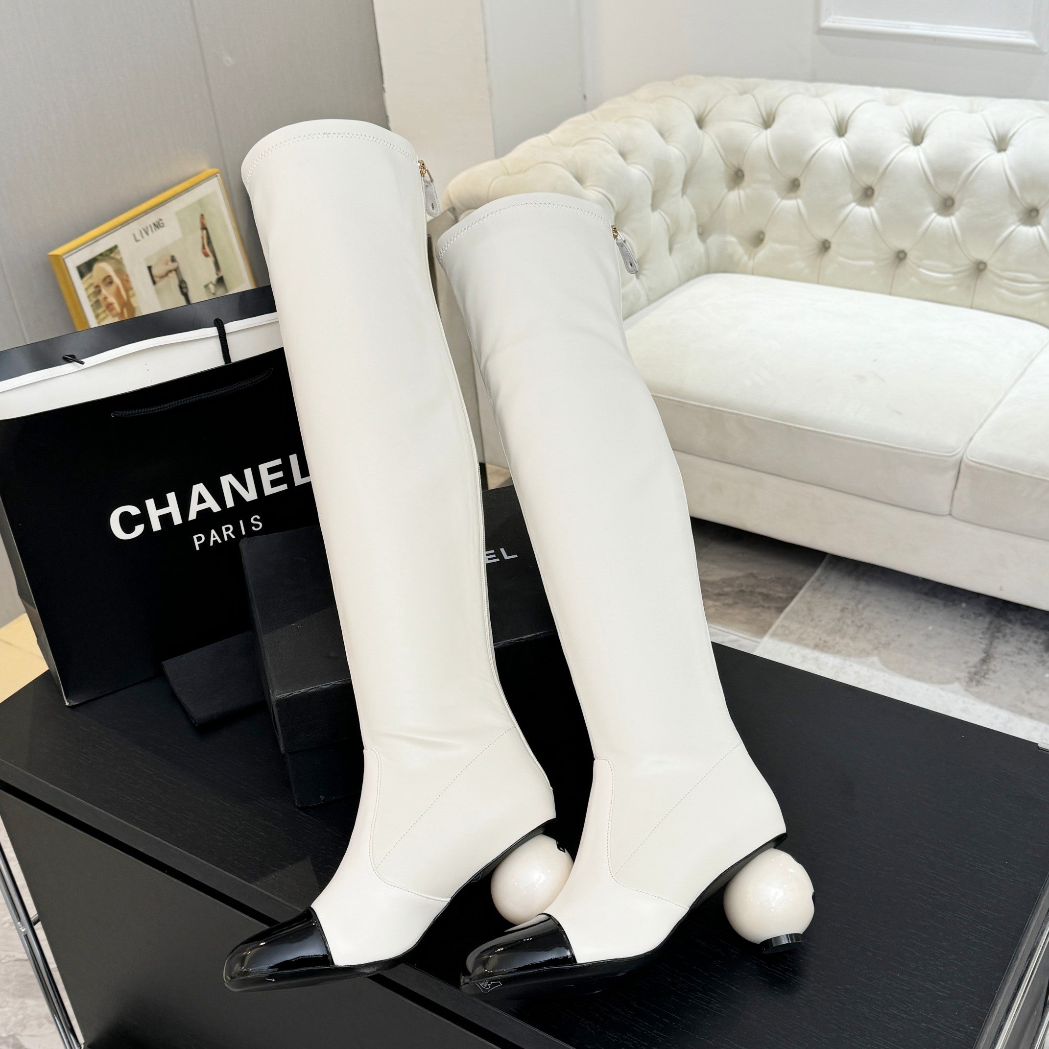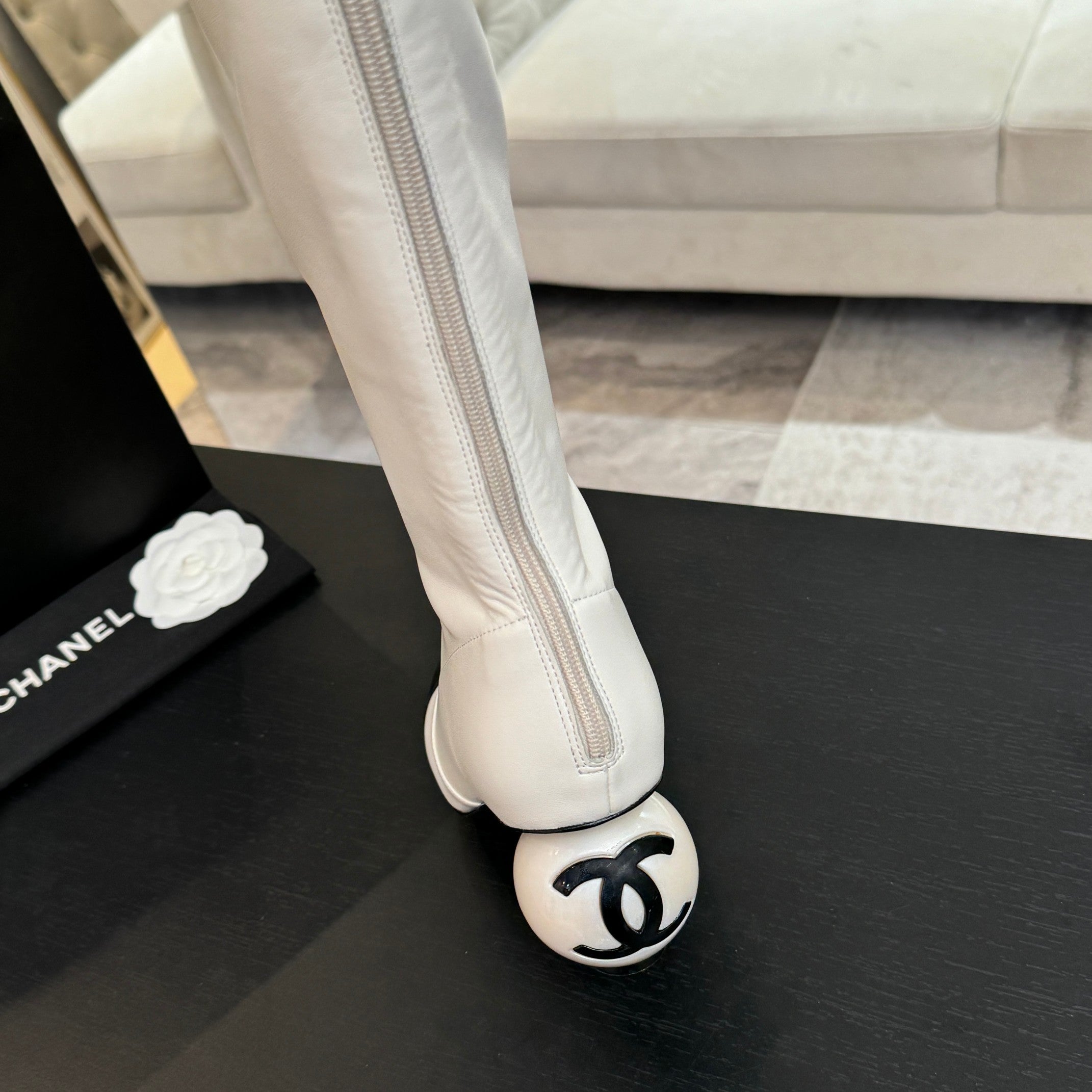CC 25A Double C Giant Pearl Heel Boots 50mm Black White Cowhide 454945