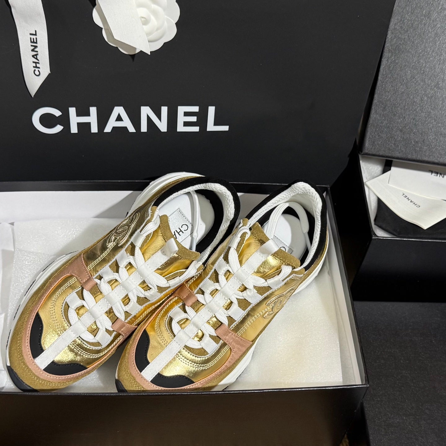 CC 25A Trainers Gold Black Beige Laminated Calfskin And Suede Calfskin352119