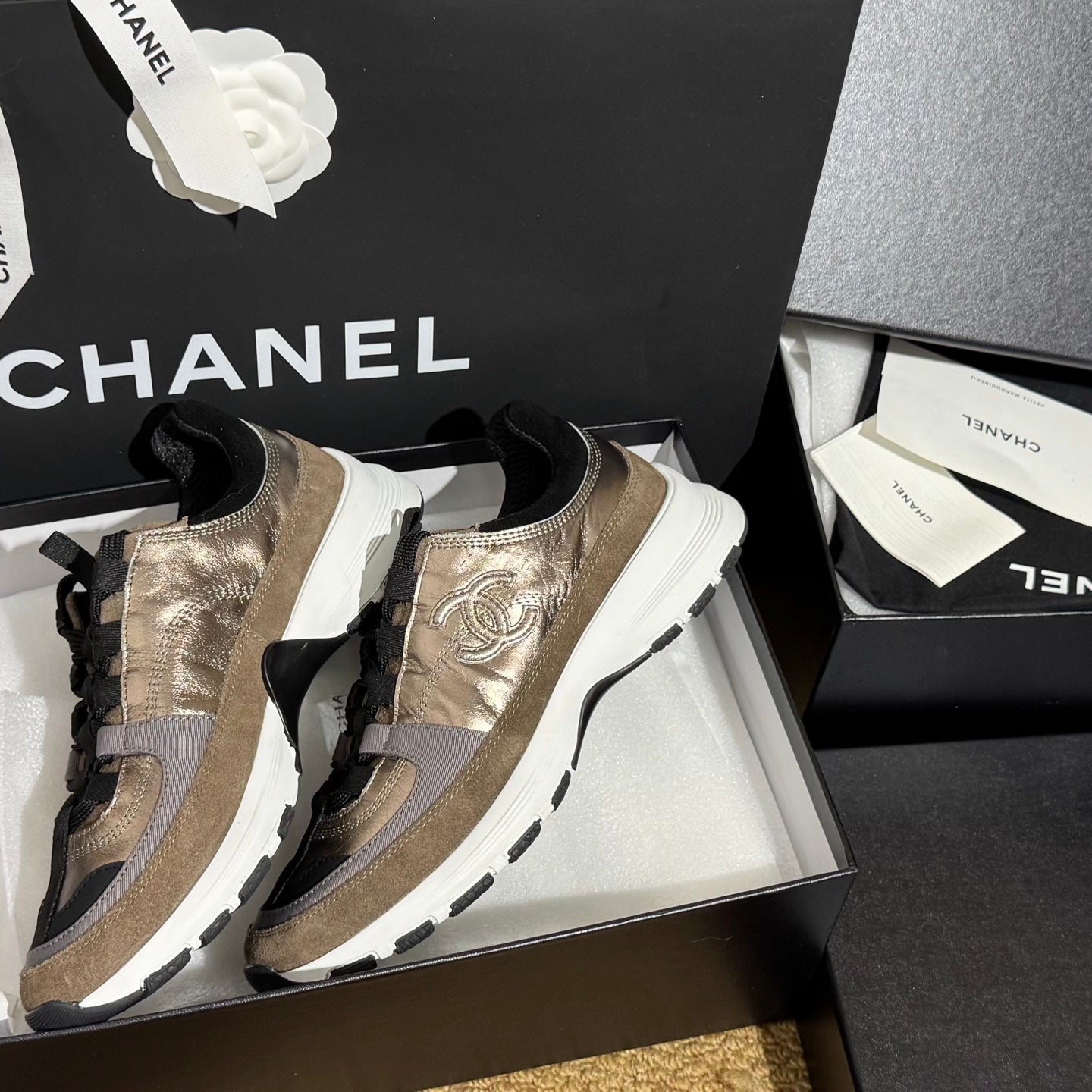 CC 25A Trainers Gold Black Grey Laminated Calfskin And Suede Calfskin 352116