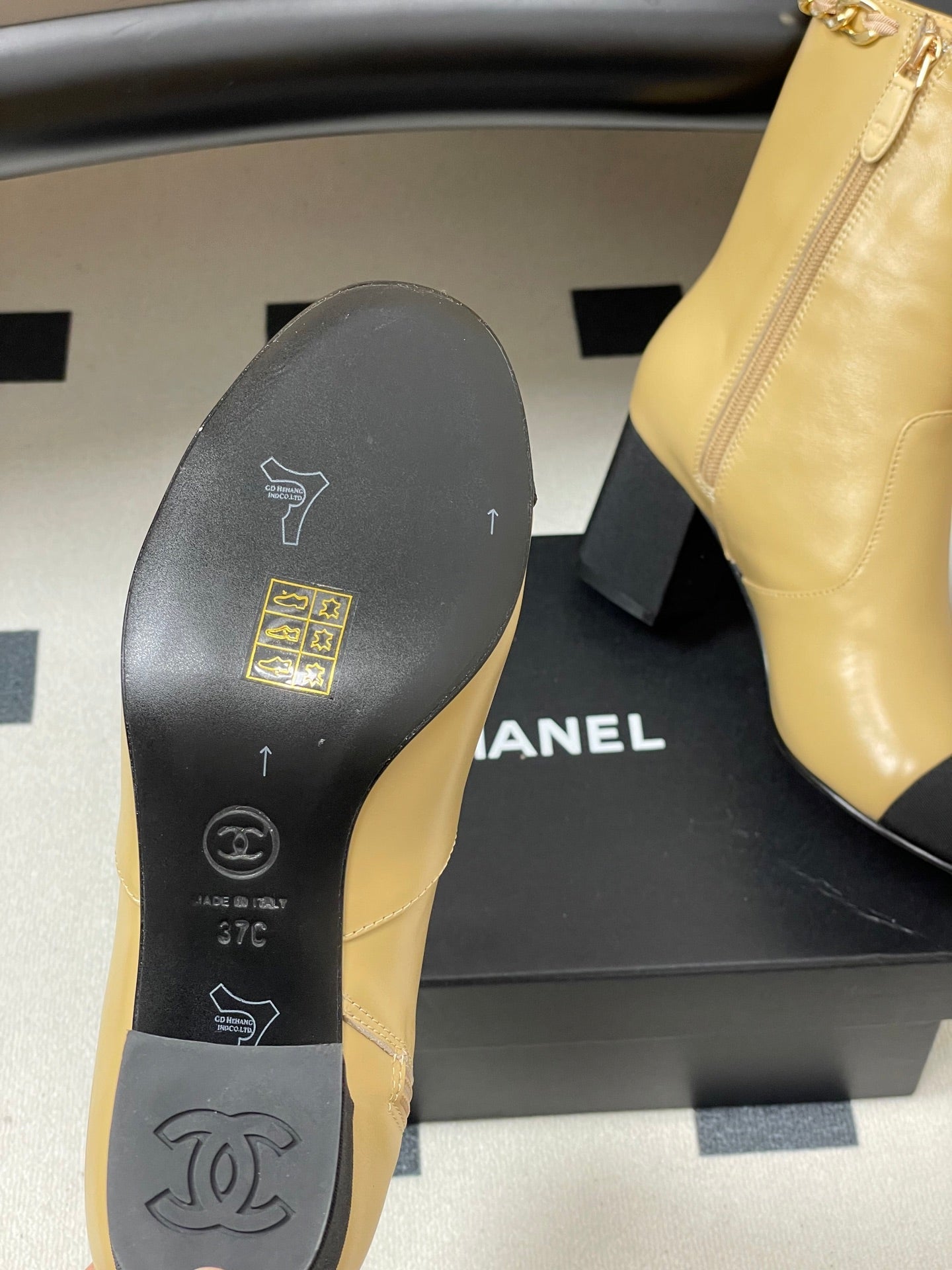 CC 25B Chain Short Boot 70mm Black Beige Denim Cowhide 423147