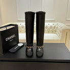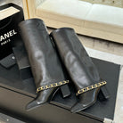 CC 25B High Boots Black Sheepskin With Chain Black Grosgrain 373810