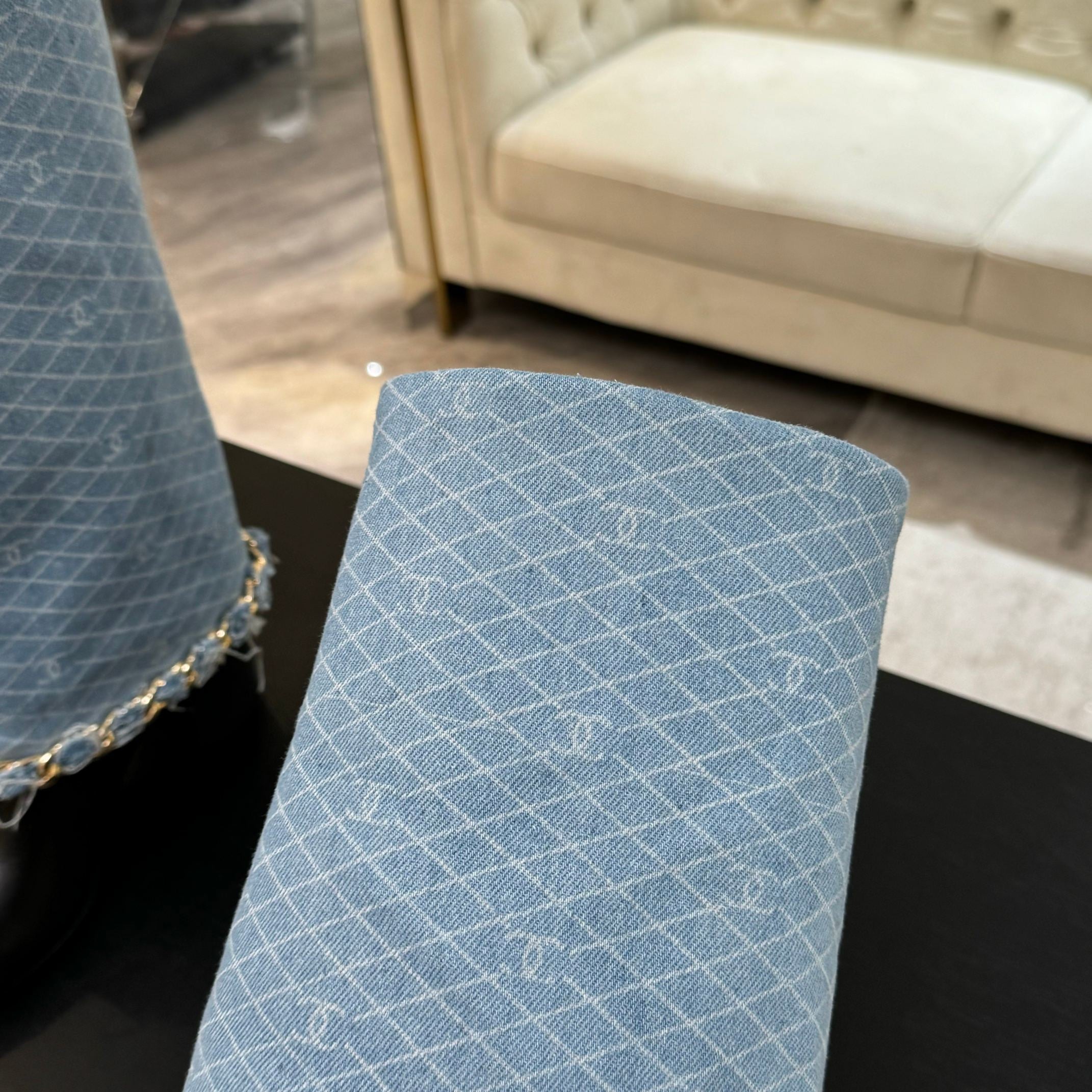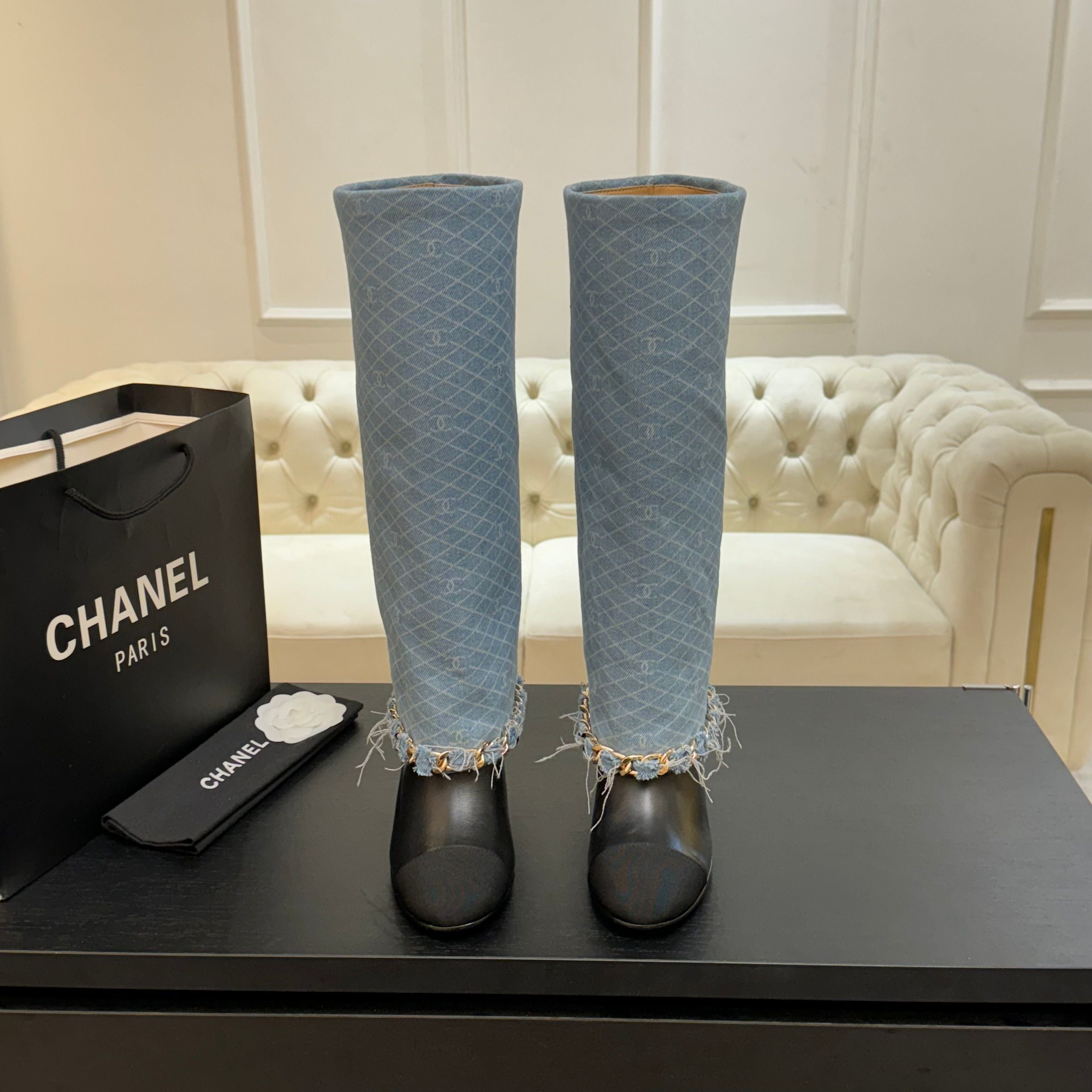 CC 25B High Boots Light Blue Denim With Chain Black Grosgrain 373808