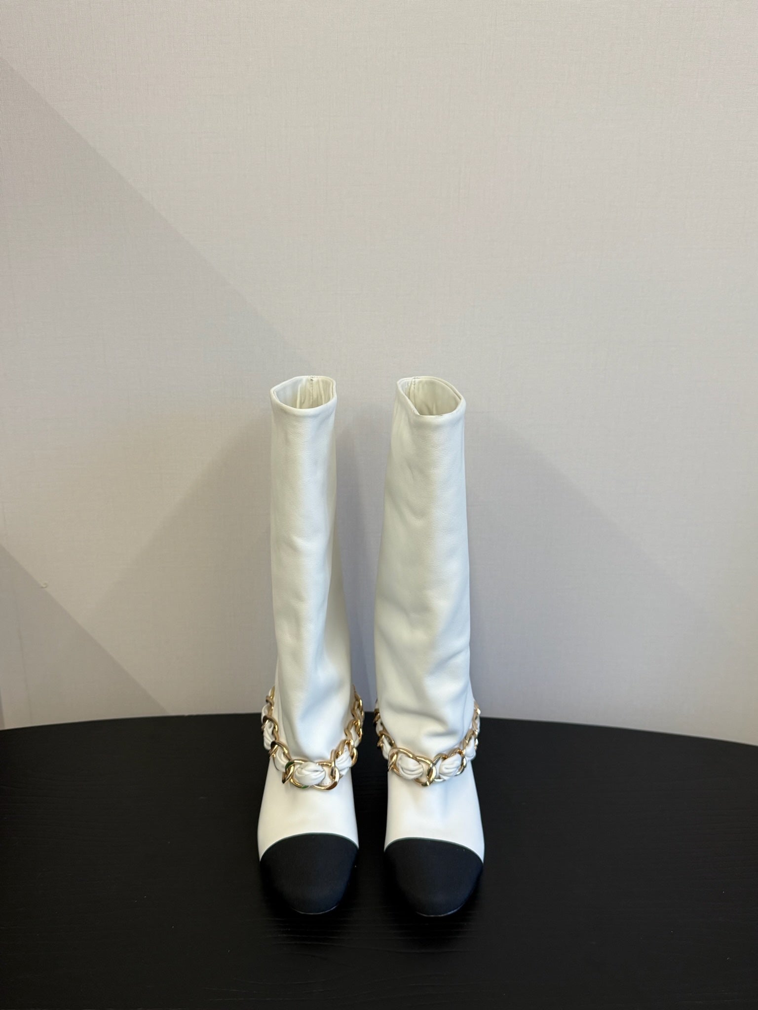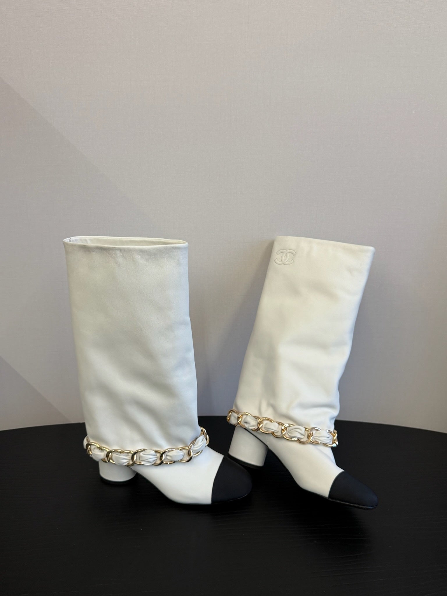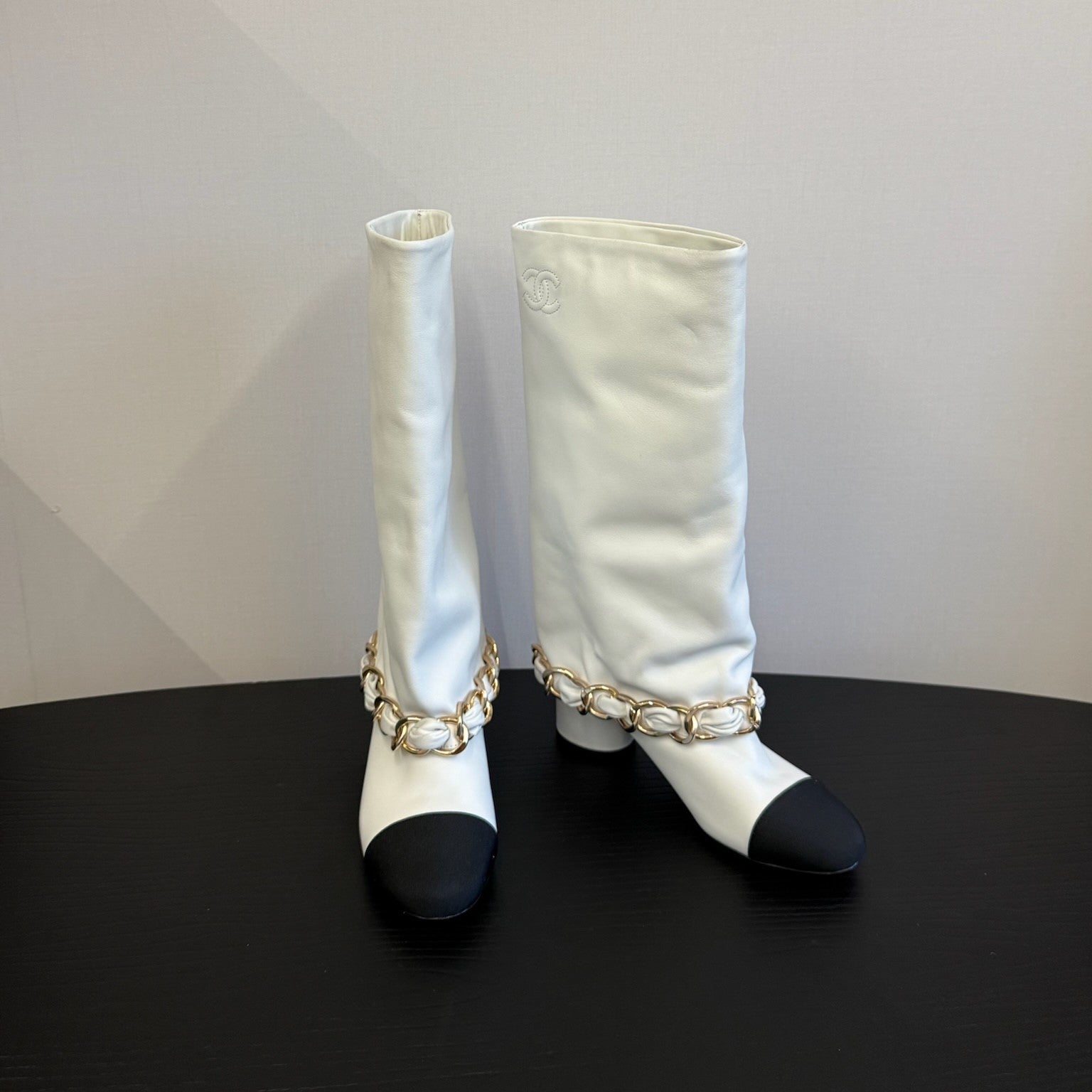 CC 25S High Boots With Chain Black White Cowhide & Sheepskin 417846