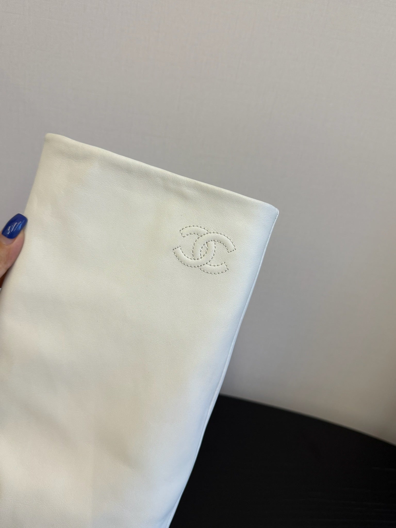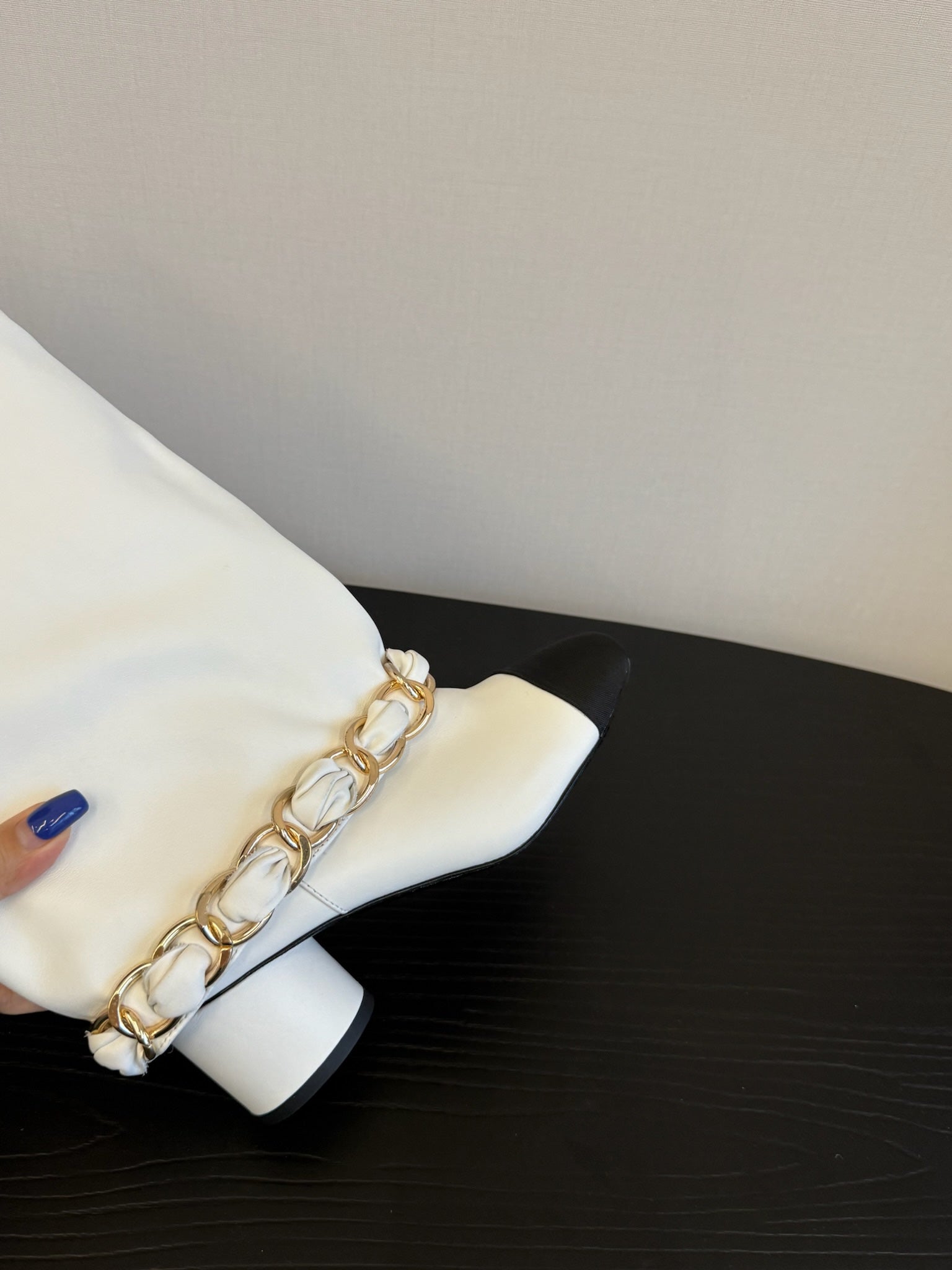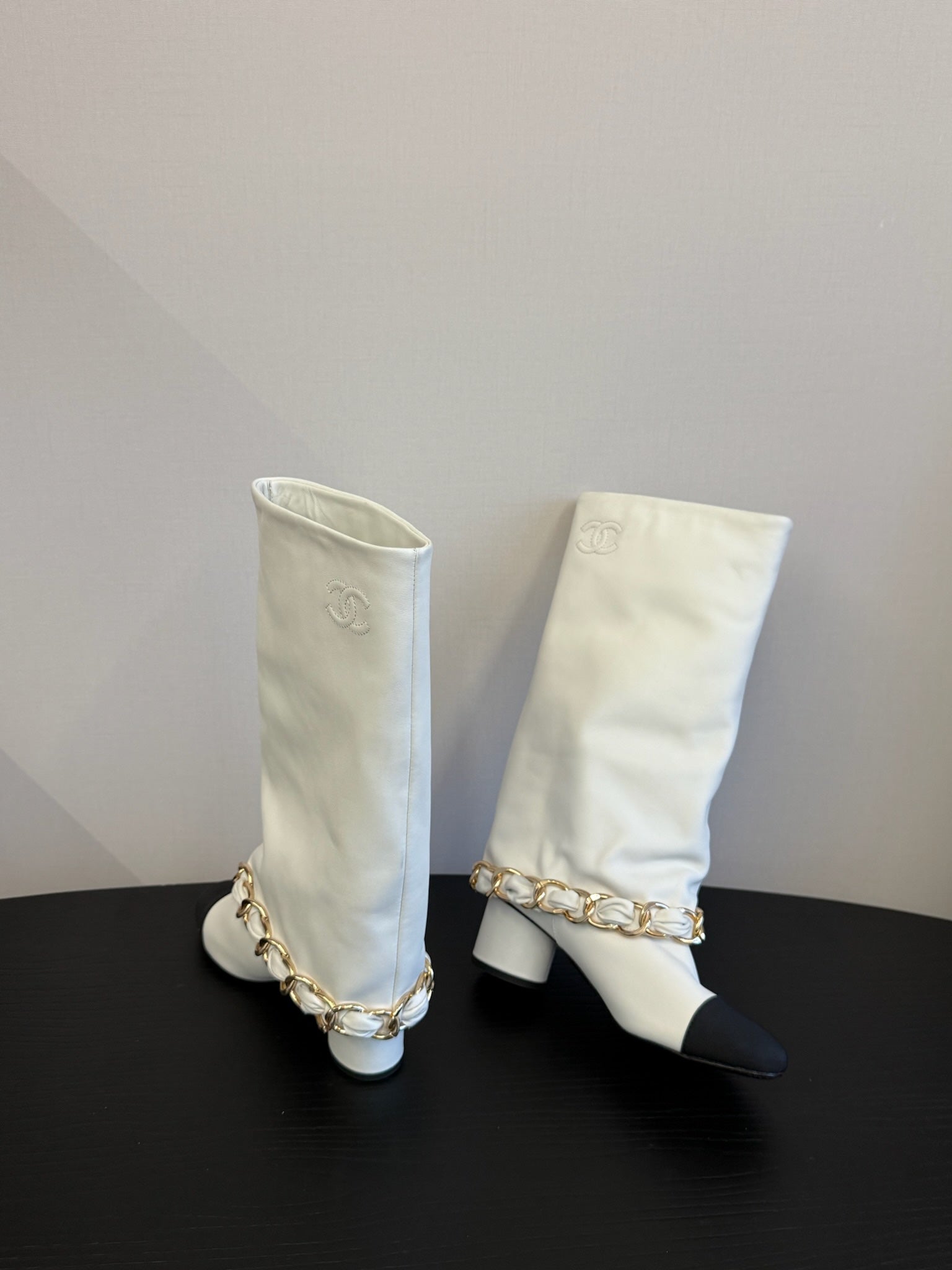 CC 25S High Boots With Chain Black White Cowhide & Sheepskin 417846