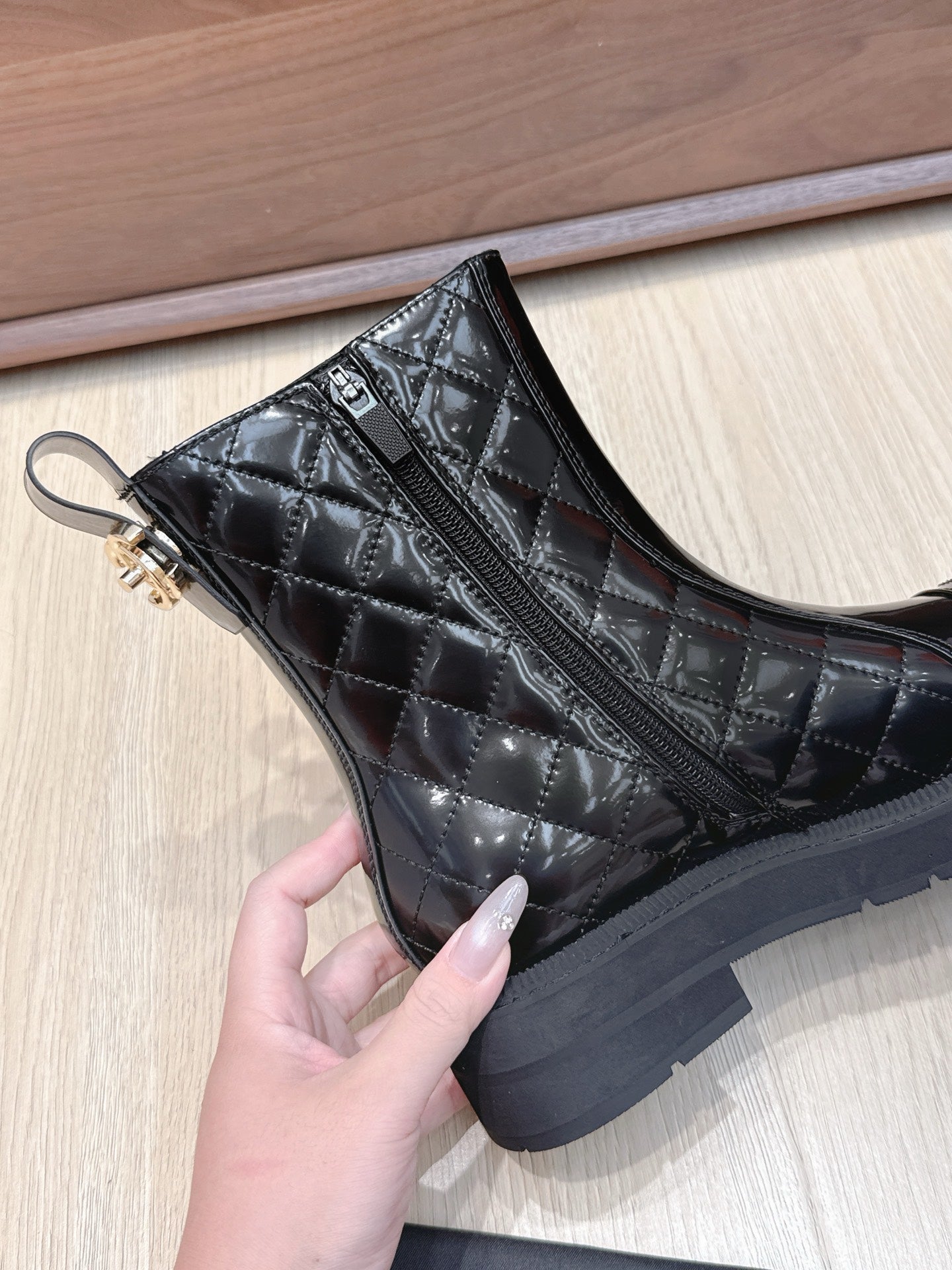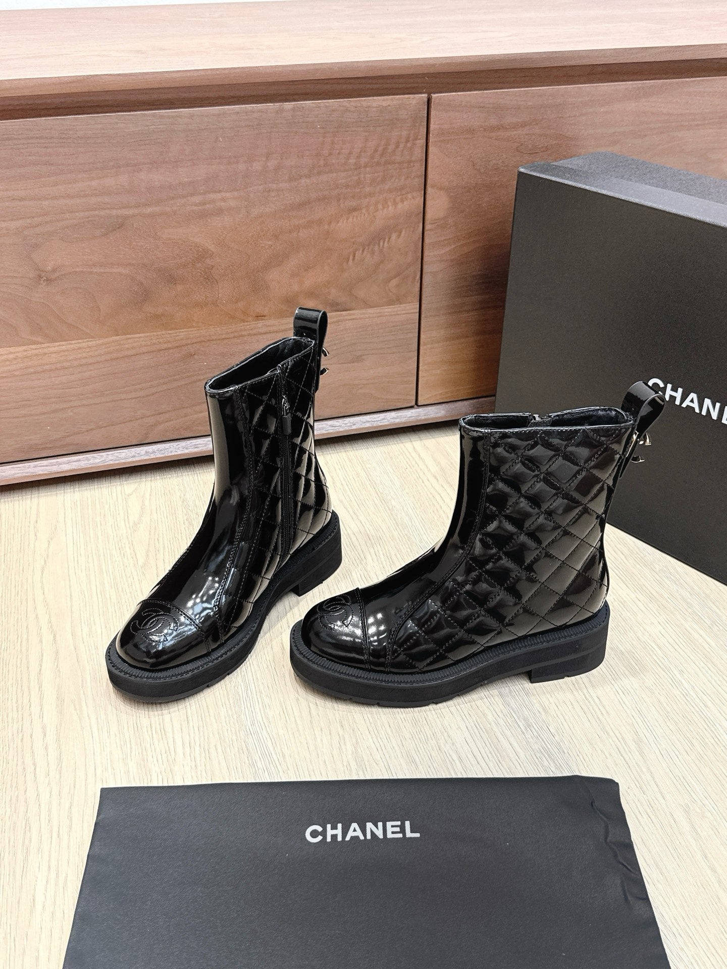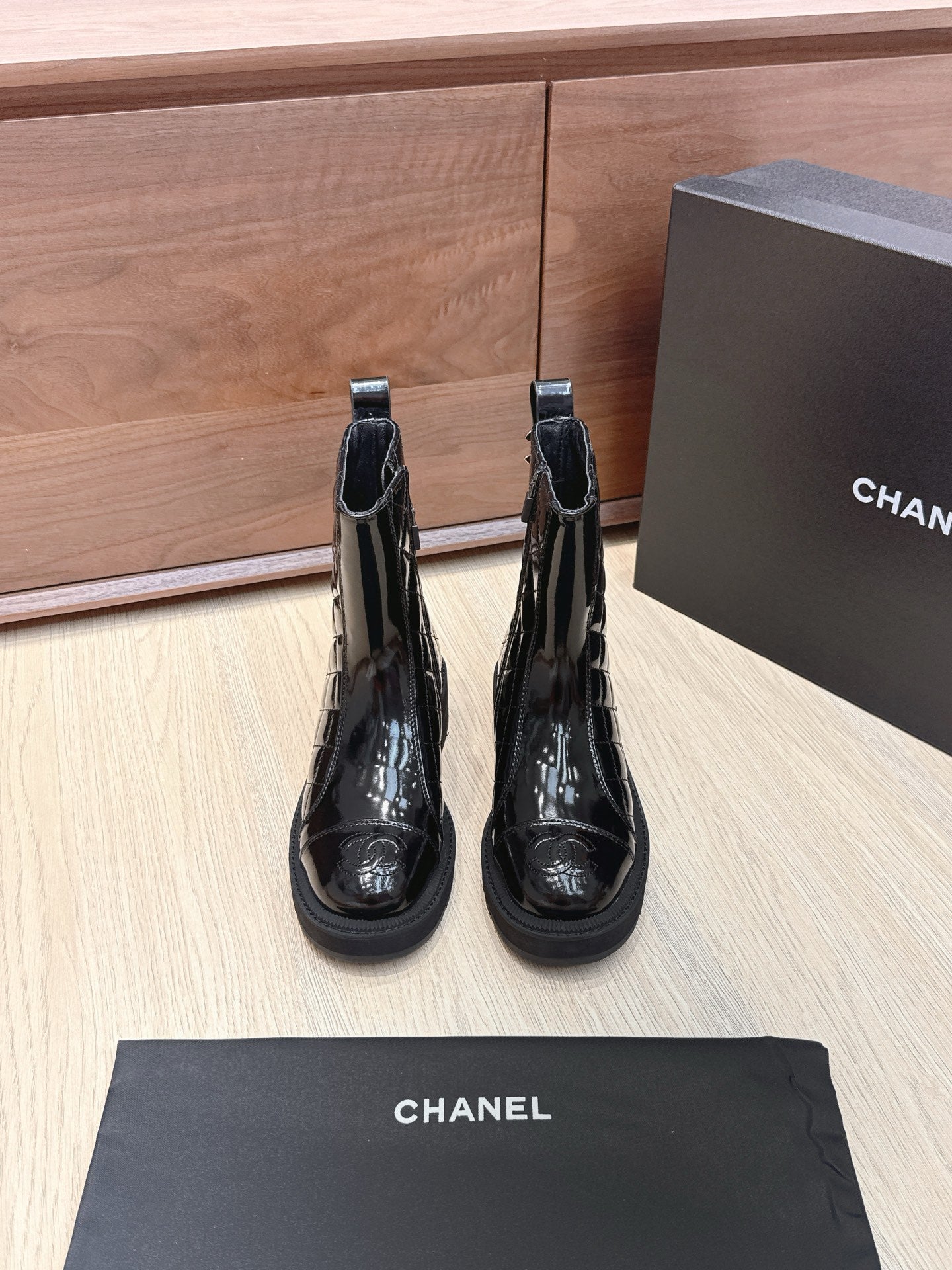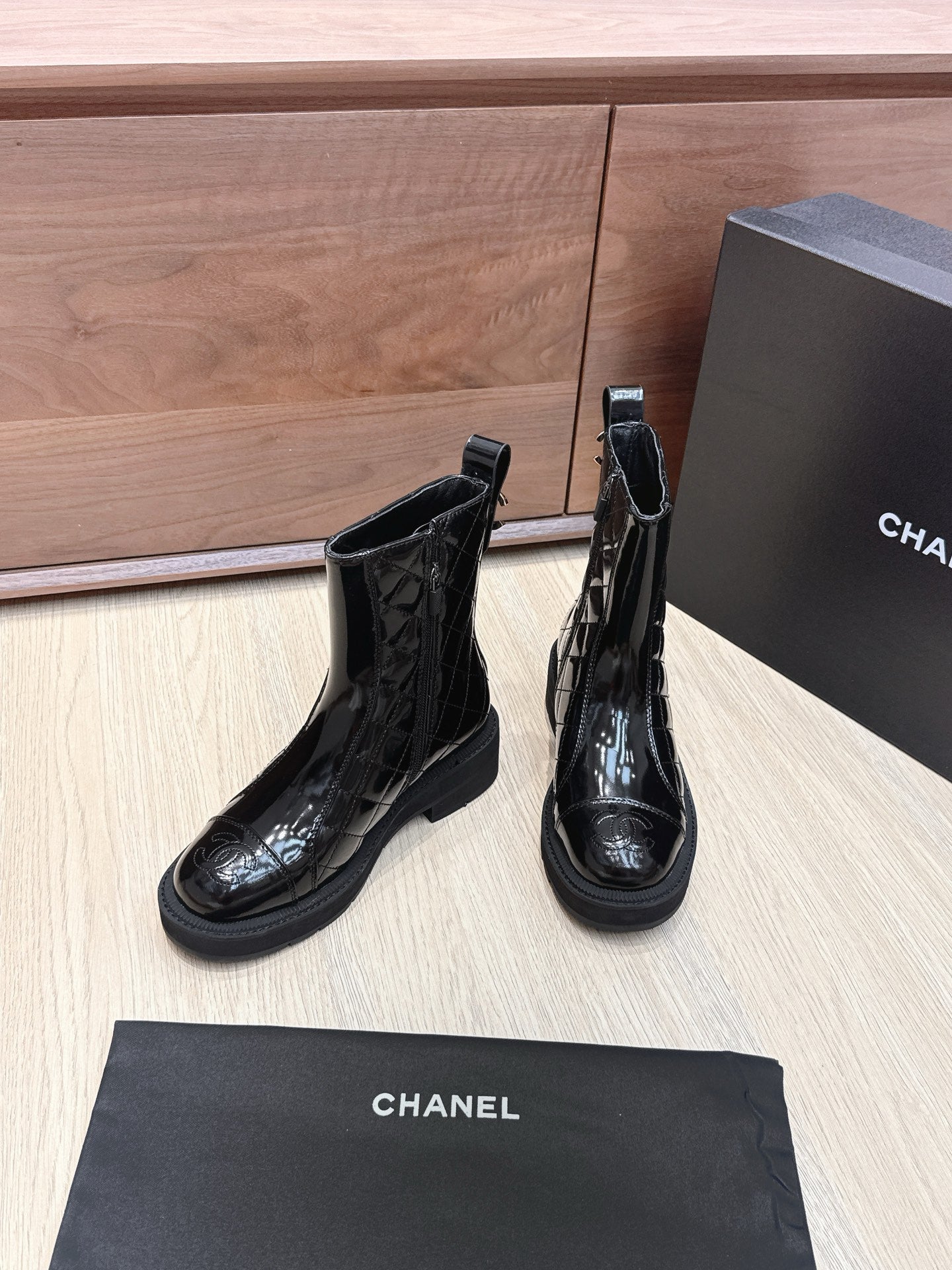 CC 25s Knight Ankle Boots 50mm Black Quilted Patent Leather 461560