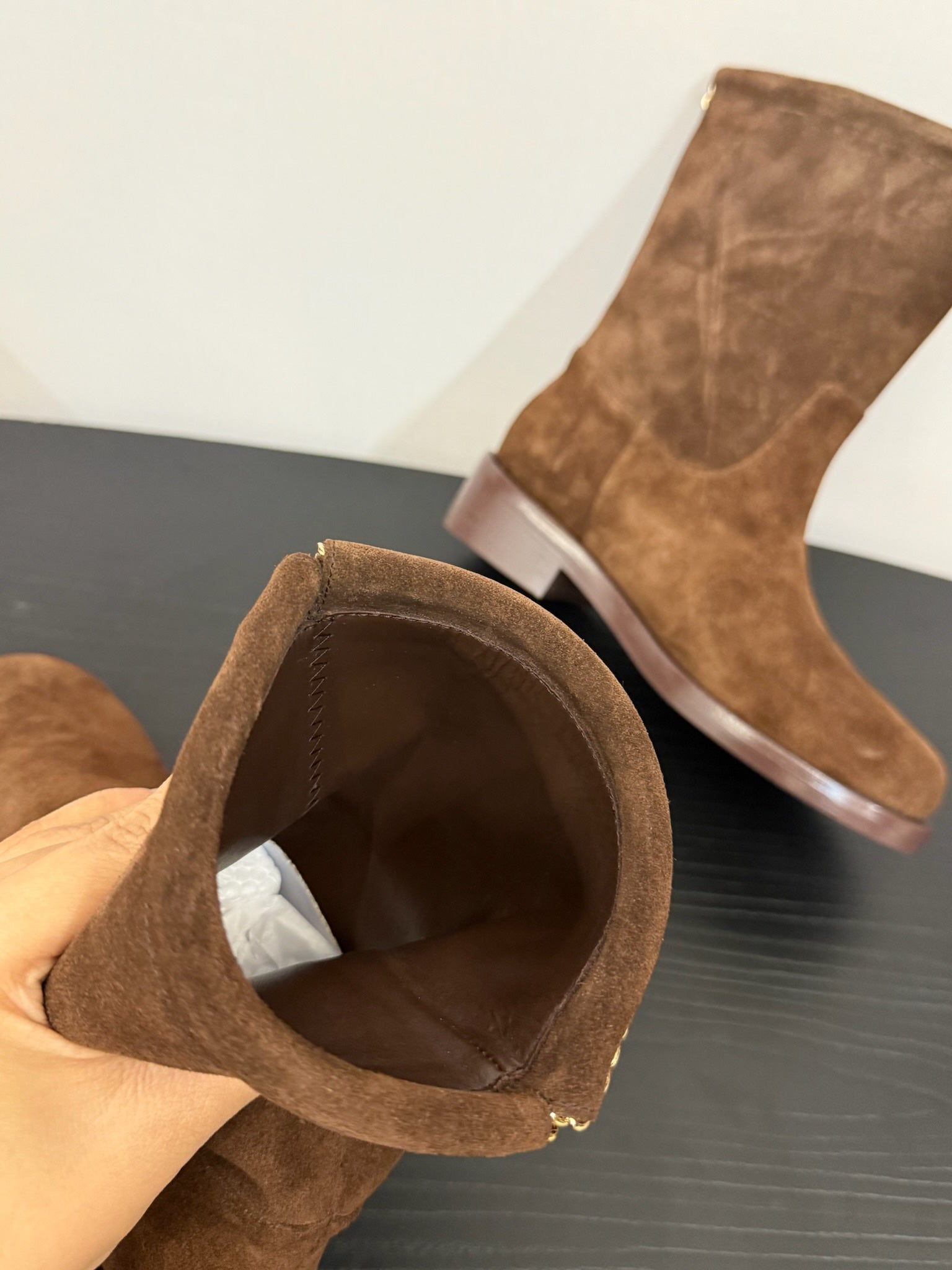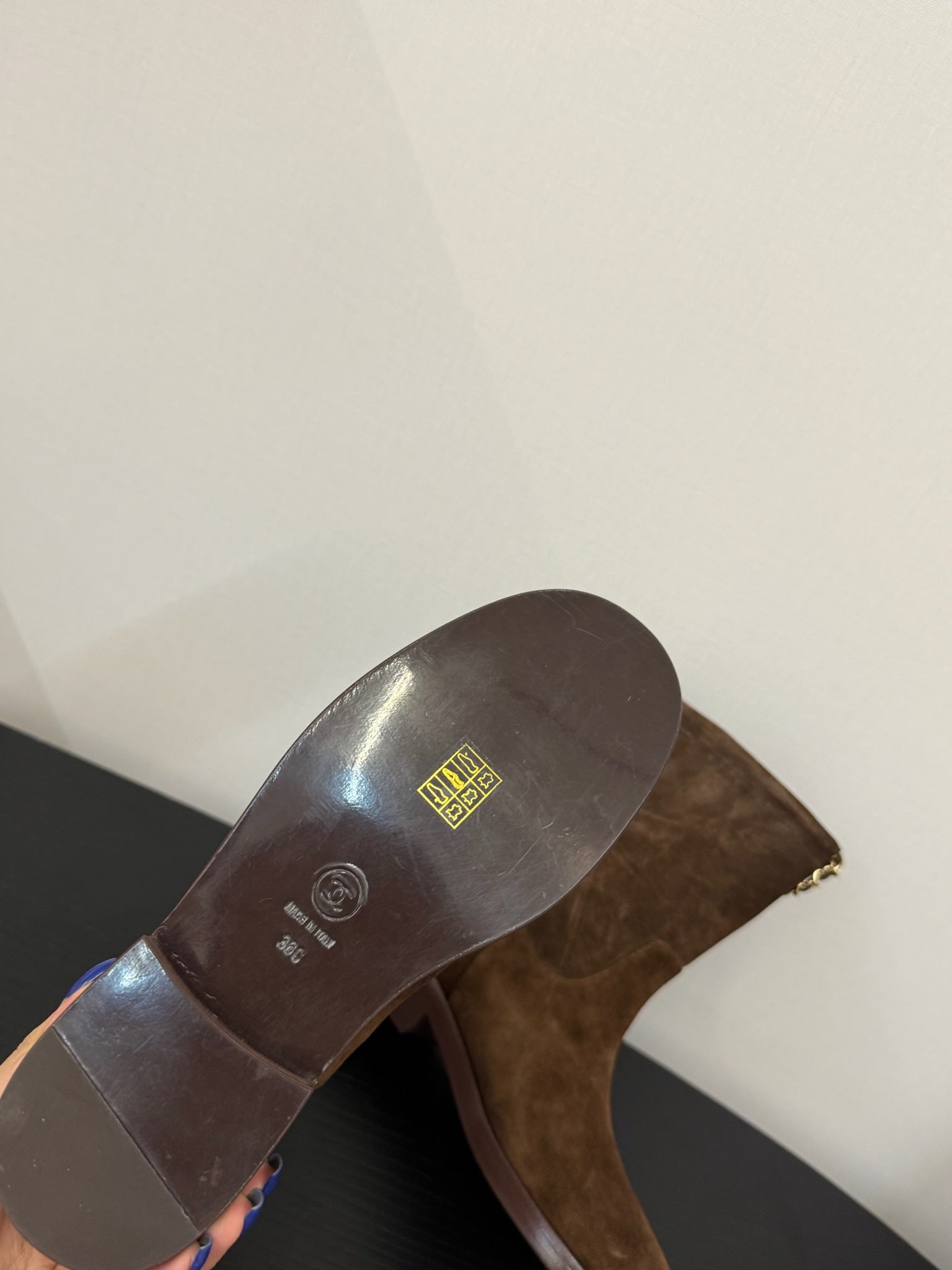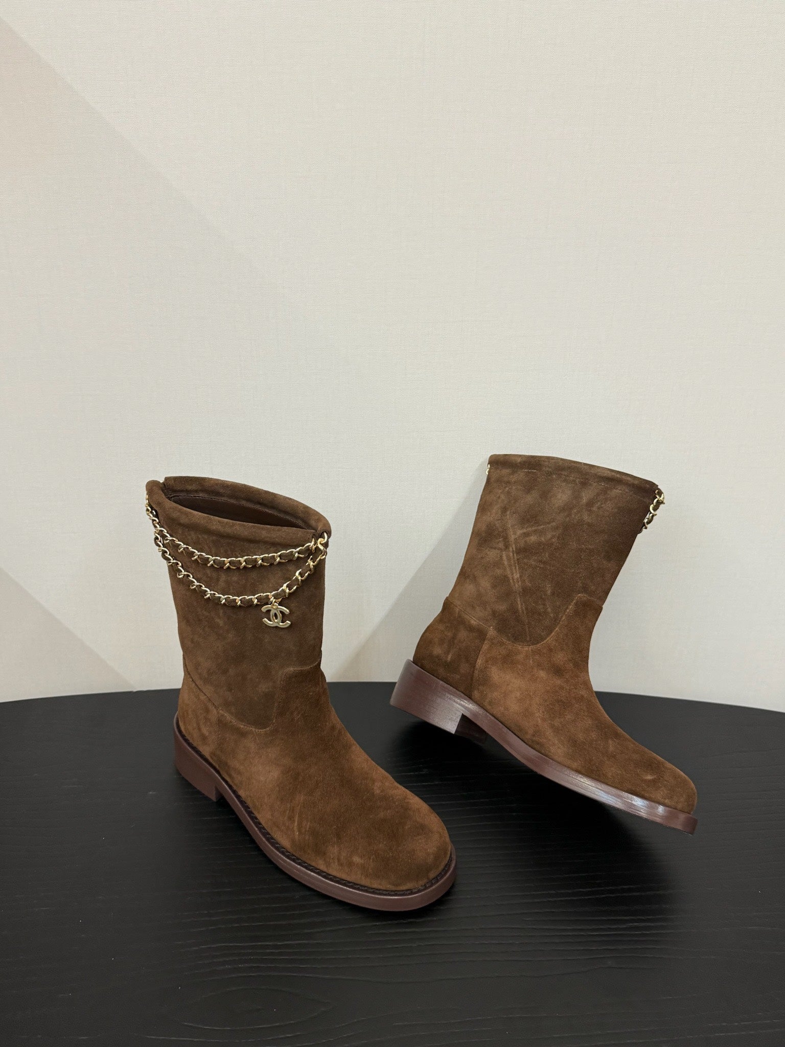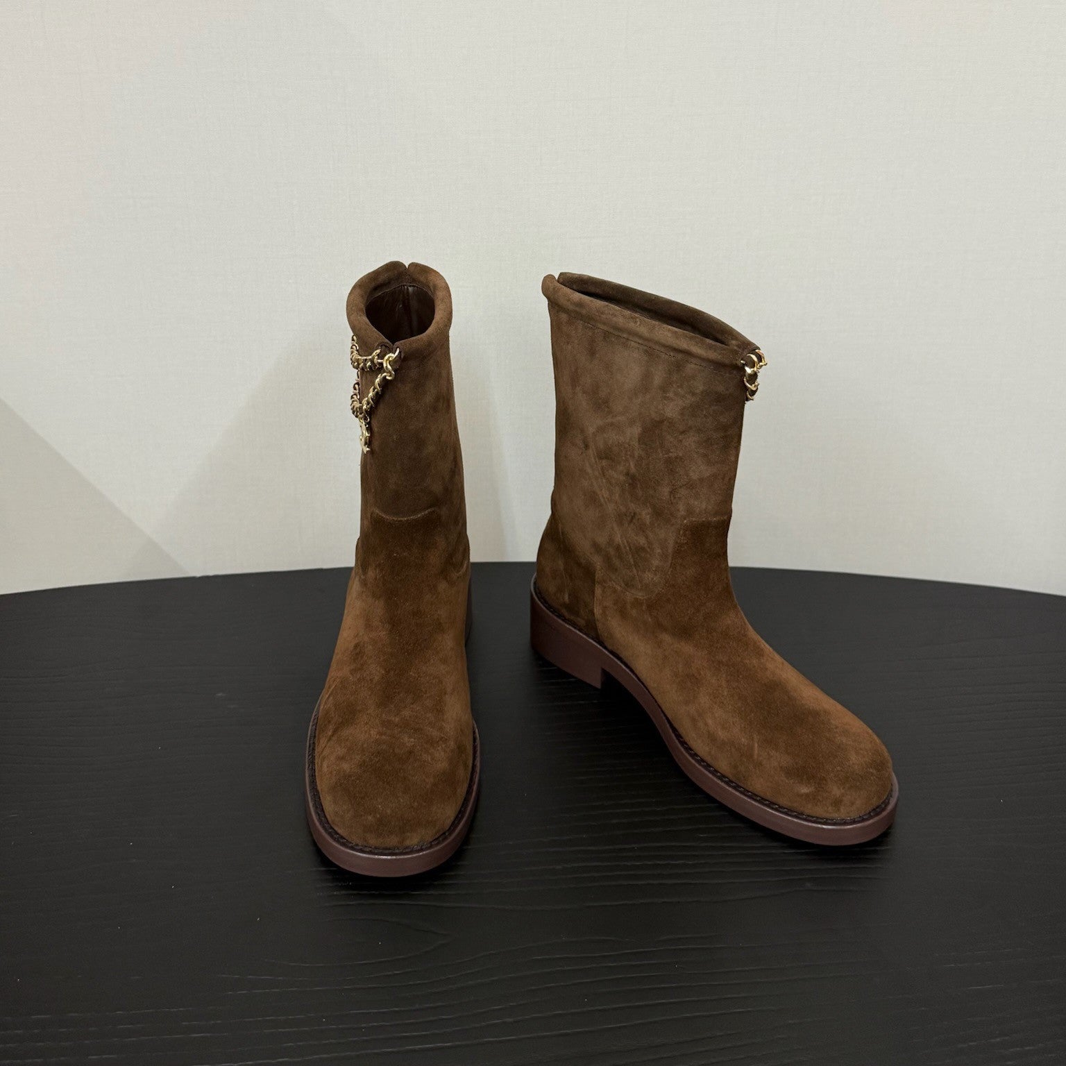 CC 25s Short Flat Chain Knight Boots Brown Cow Suede&Sheeepskin 417843