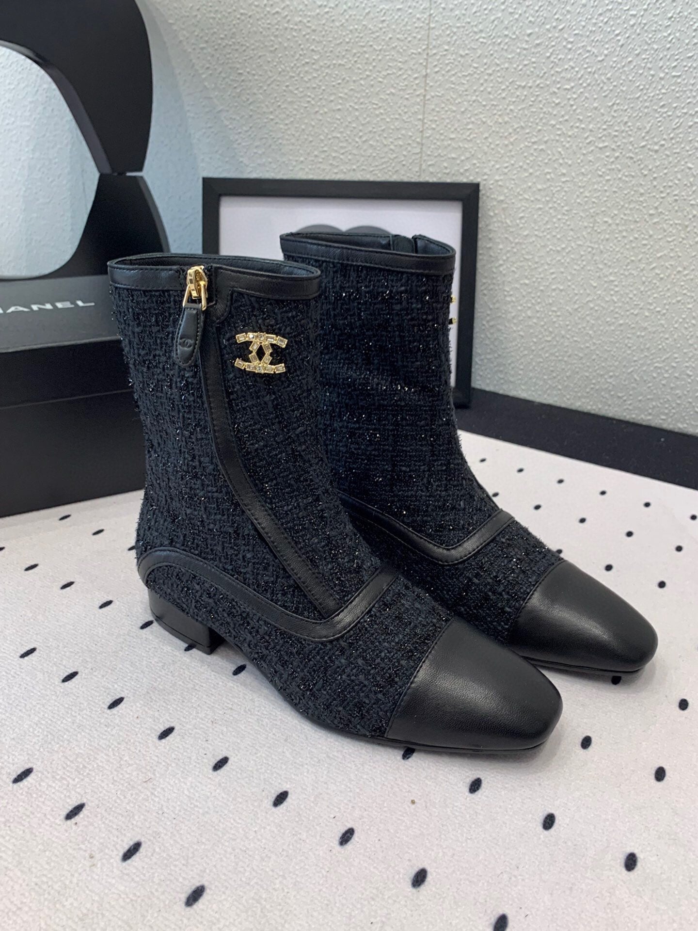 CC Ankel Boots 30mm Black Tweed & Sheepskin 432509