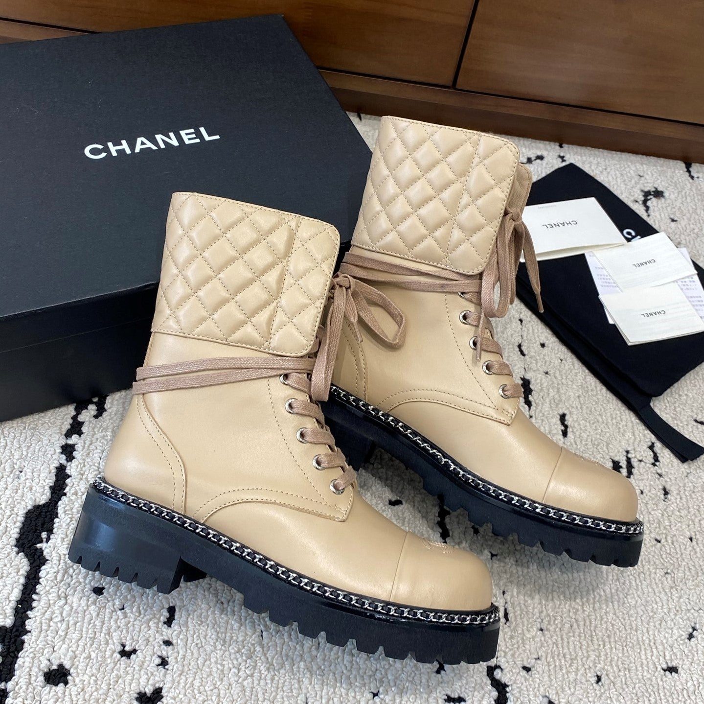 CC Ankle Boots Flat Quited Beige Calfskin 529288