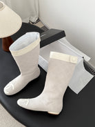 CC Cambon Mid-Calf Boots Light Gray White Suede Patent Leather 540768