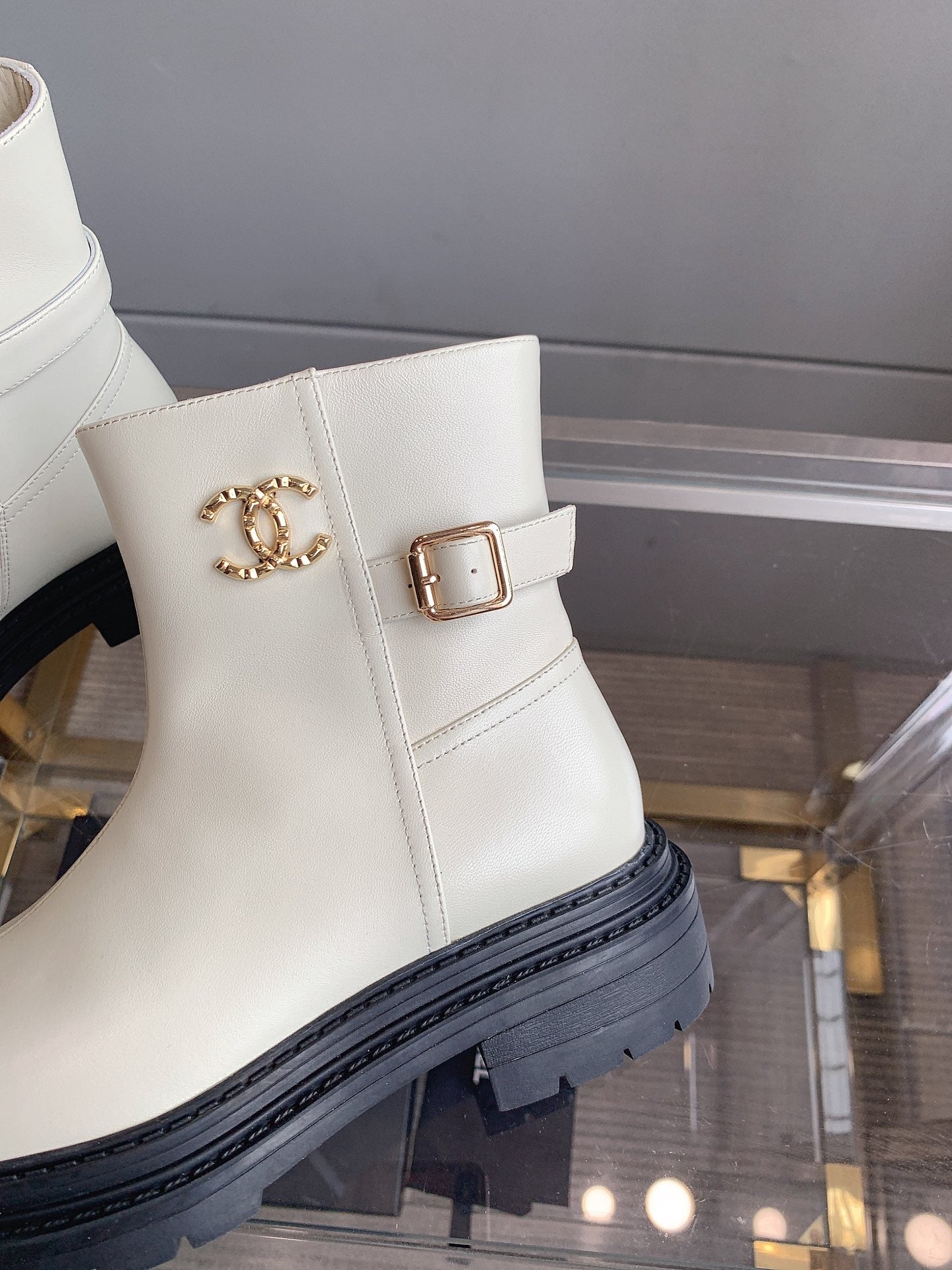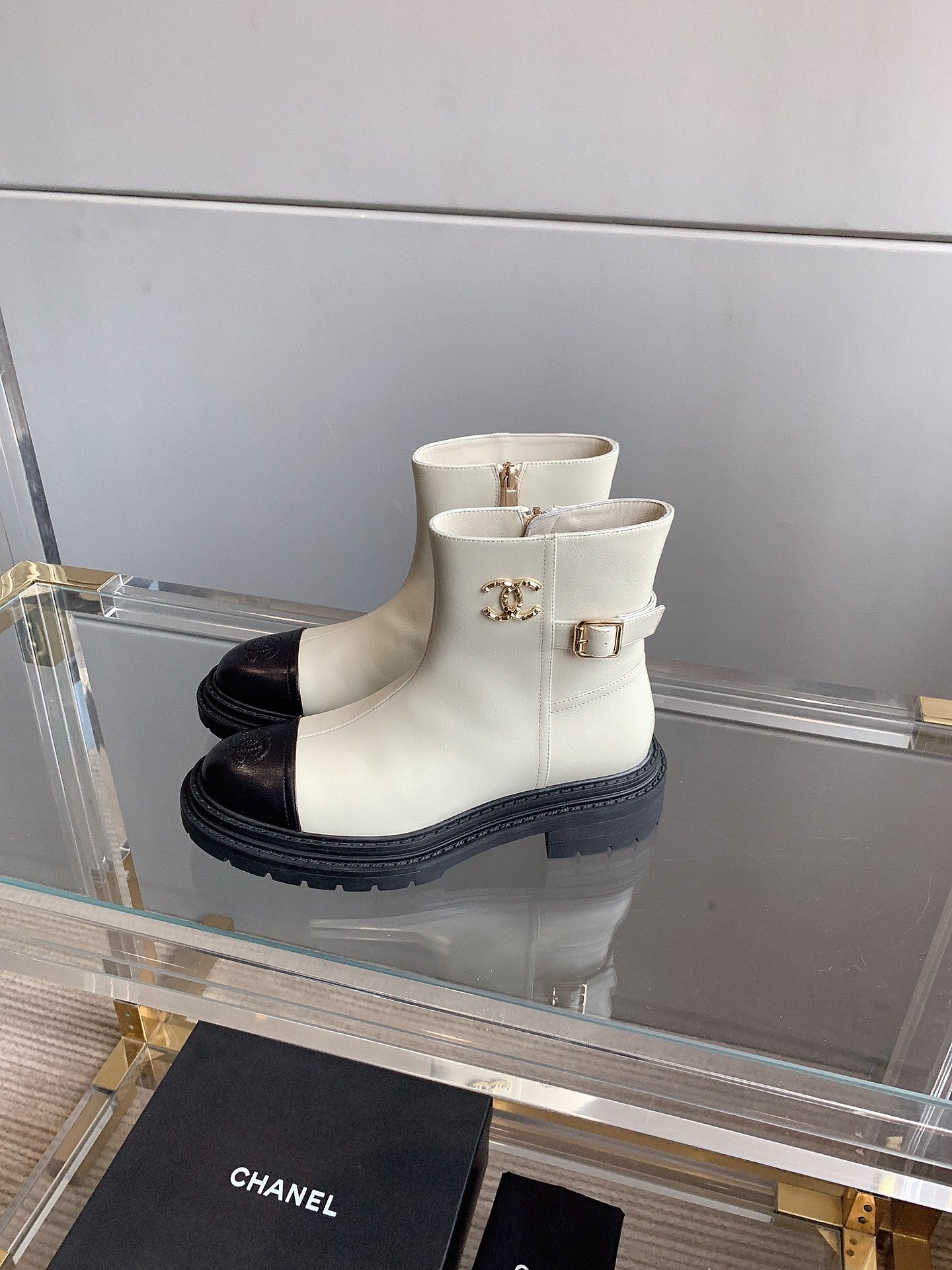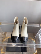 CC Cap Toe Ankle Boots Black White Cowhide 464572