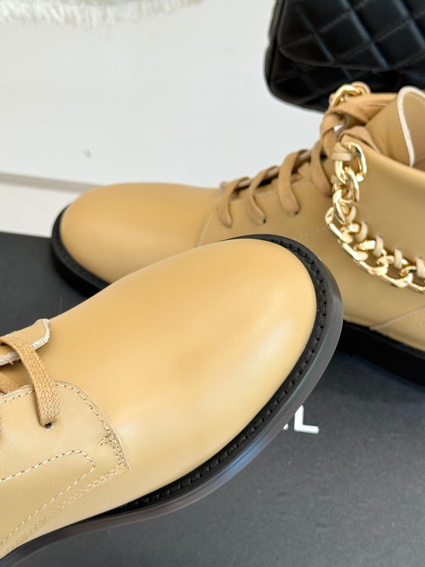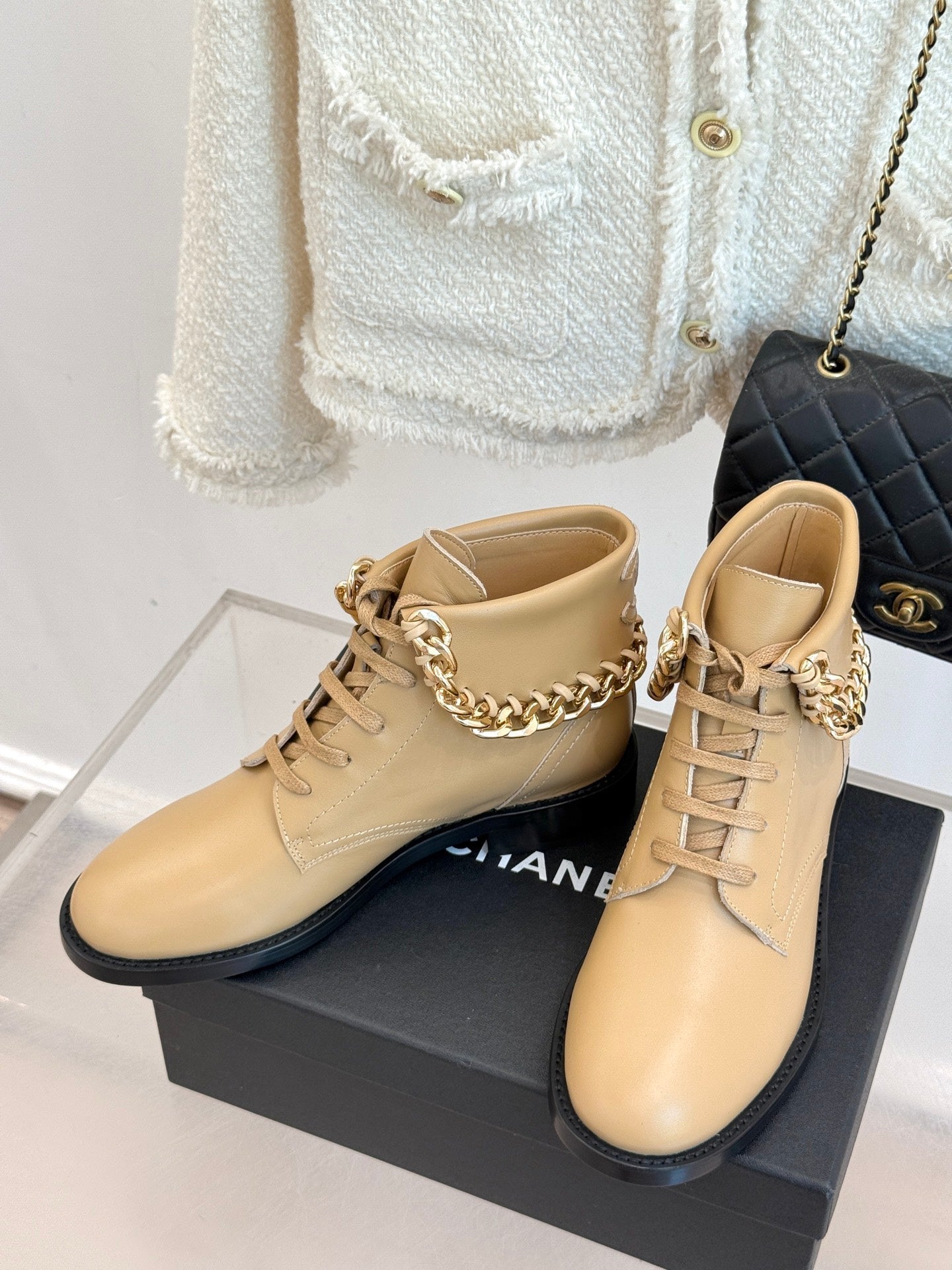 CC Classic Large Chain Martin Booots Beige Sheepskin 404669
