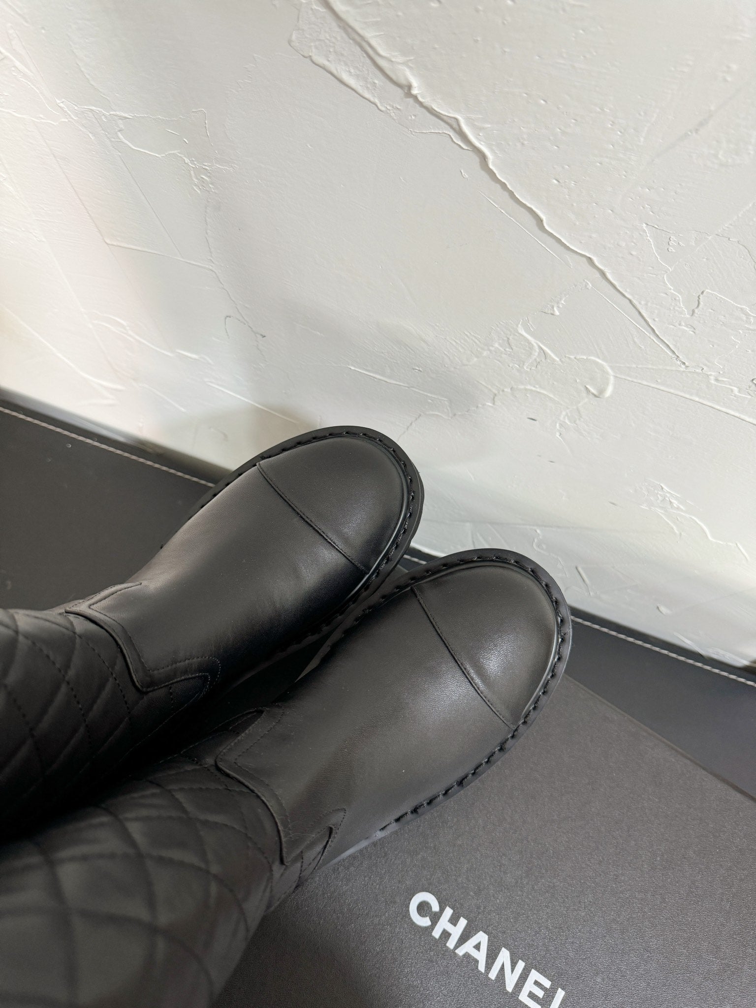 CC High Boots 40mm In Plain Black Mix White Quilted Calfskin 949750