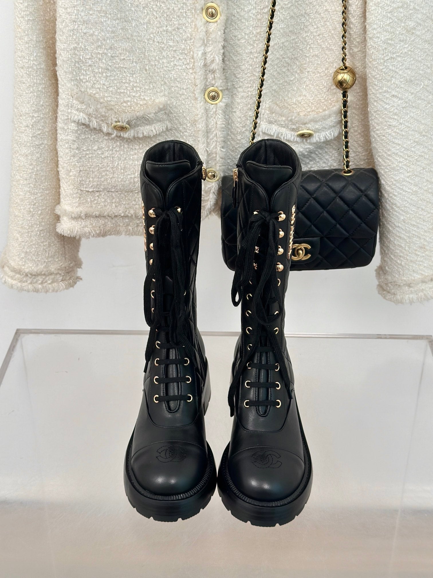 CC High Boots 50mm Black Quilted Calfskin