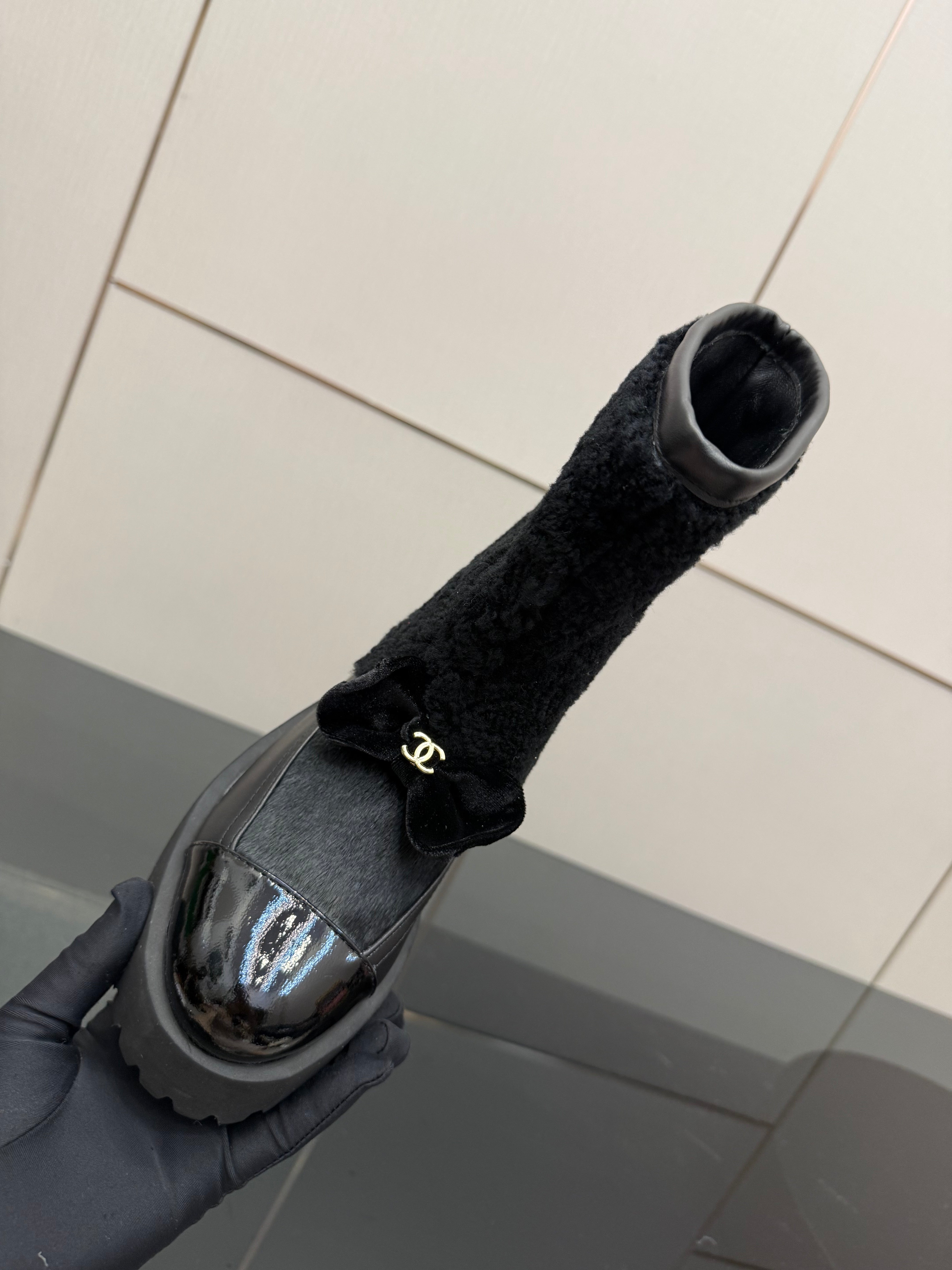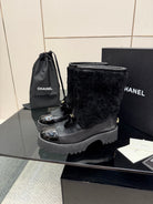 CC platform snow boots black sheepskin and wool 532189