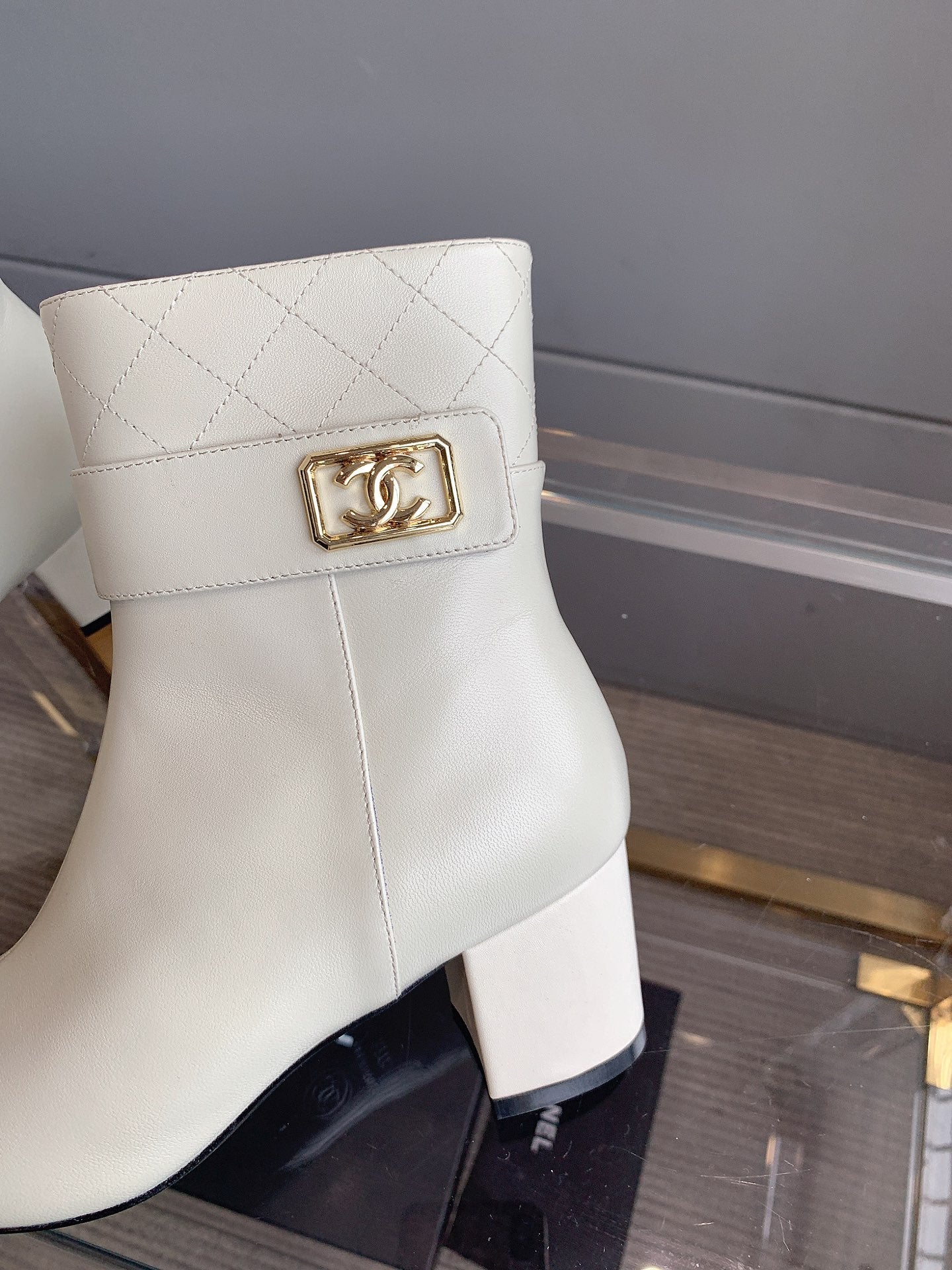 CC Square Toe Ankle Boots 70mm White Black Cowhide 464566