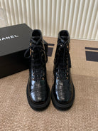Chanel Electric Ankle Show Boot Black Glossy Leather 507527