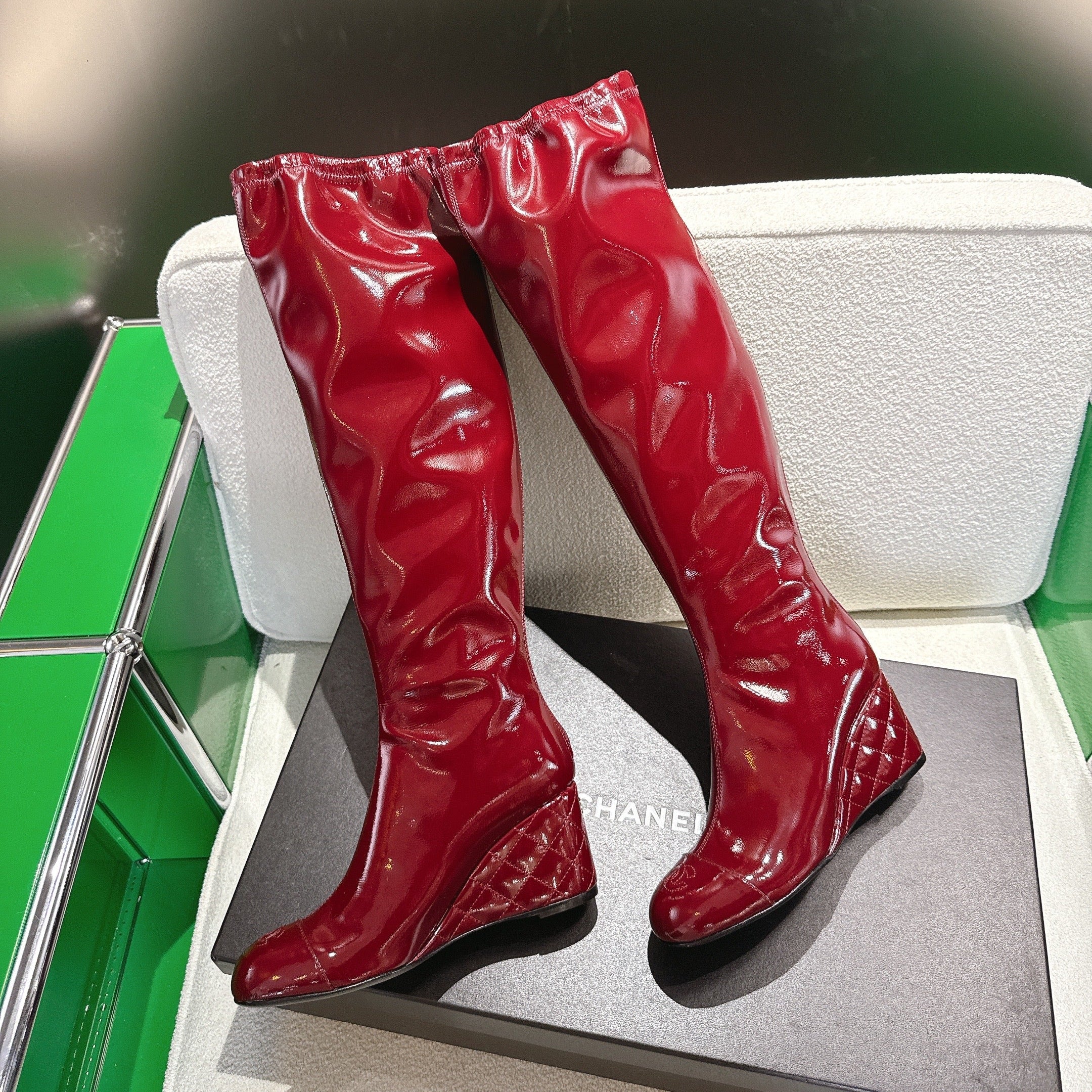 Chanel High-Top Boots Platform Heel 7cm Burgundy Glossy Leather 507532