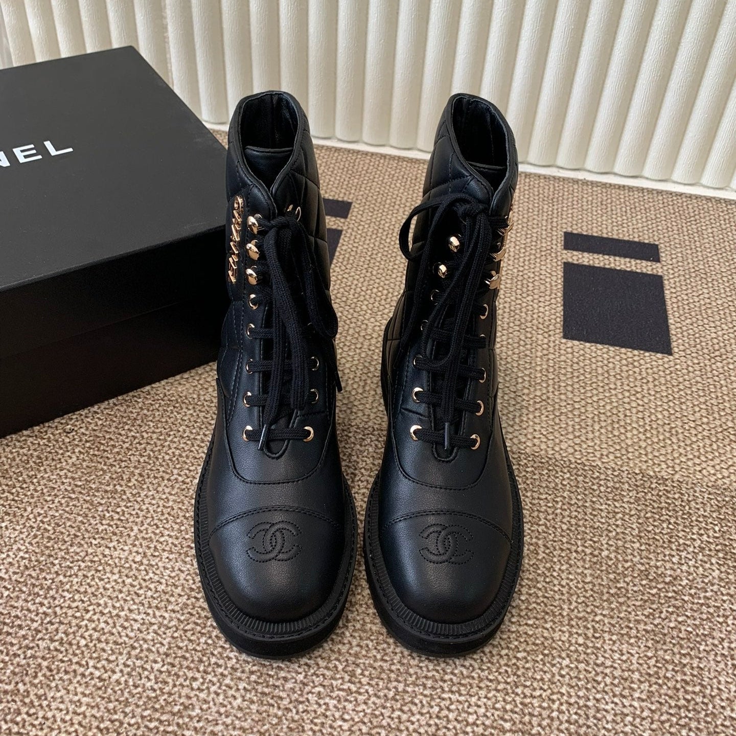 Chanel High-Top Boots Platform Heel 7cm Black Glossy Leather 507534