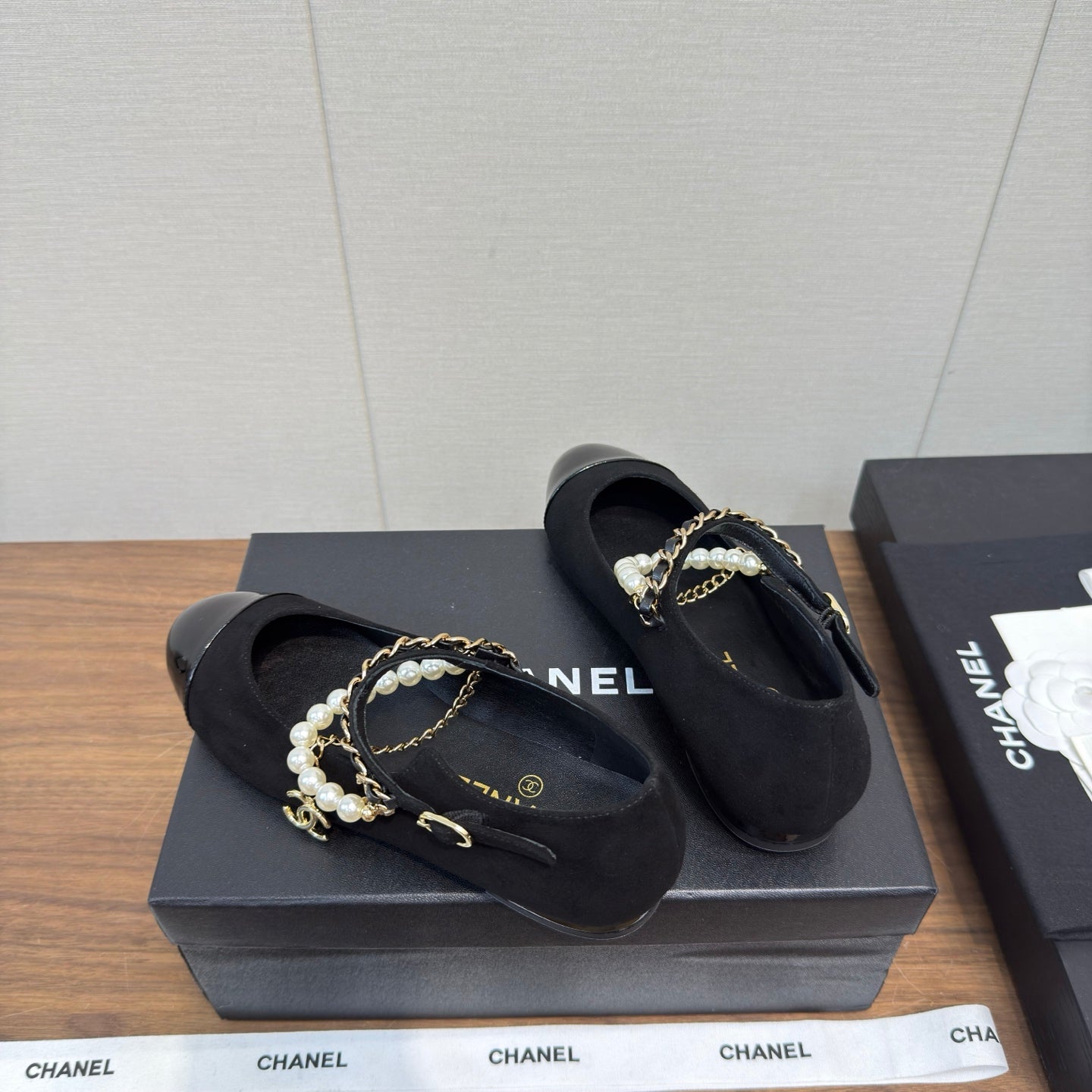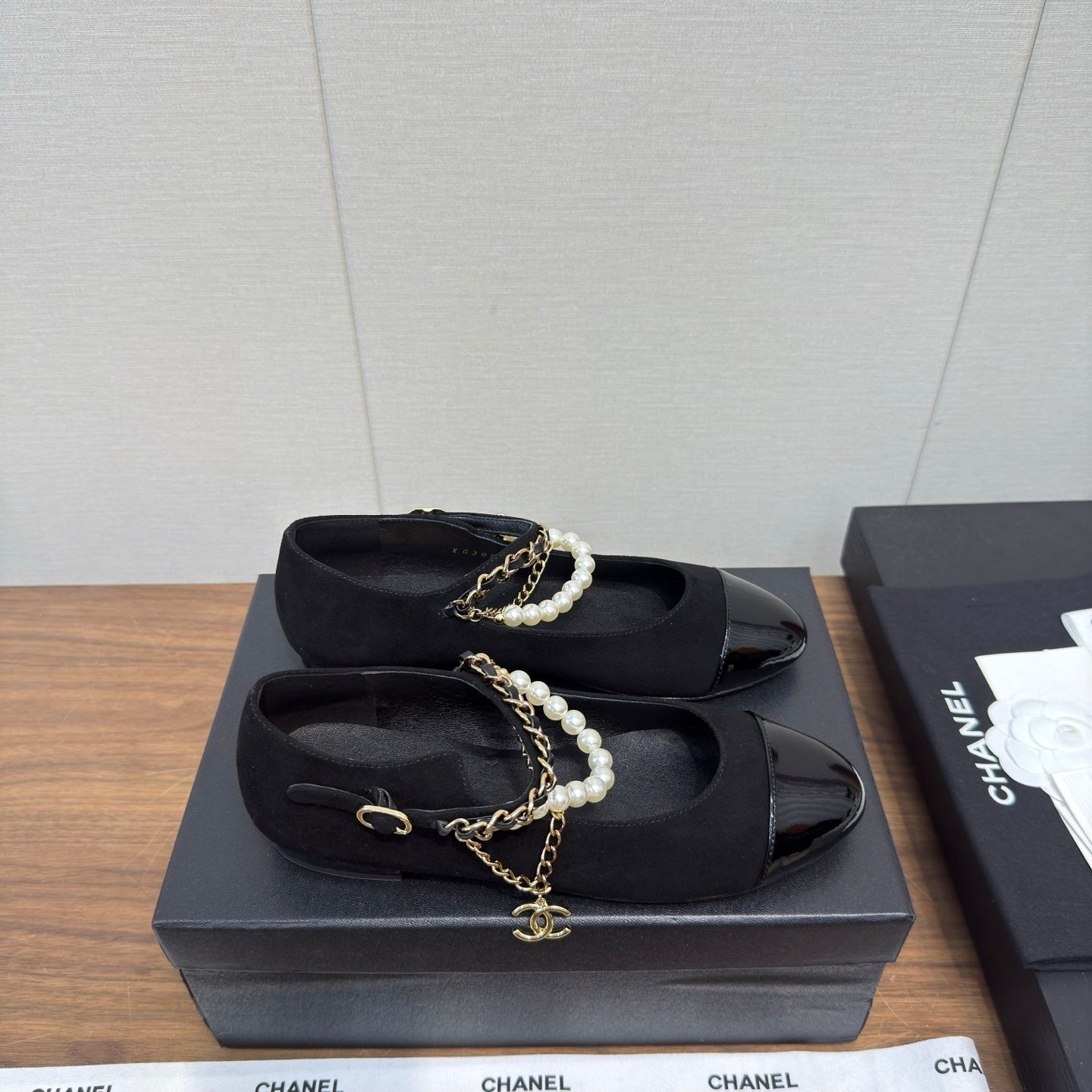 Chanel 25 Mary Jane Ankle Chain Ballet Flat black Suede Cowhide 465597