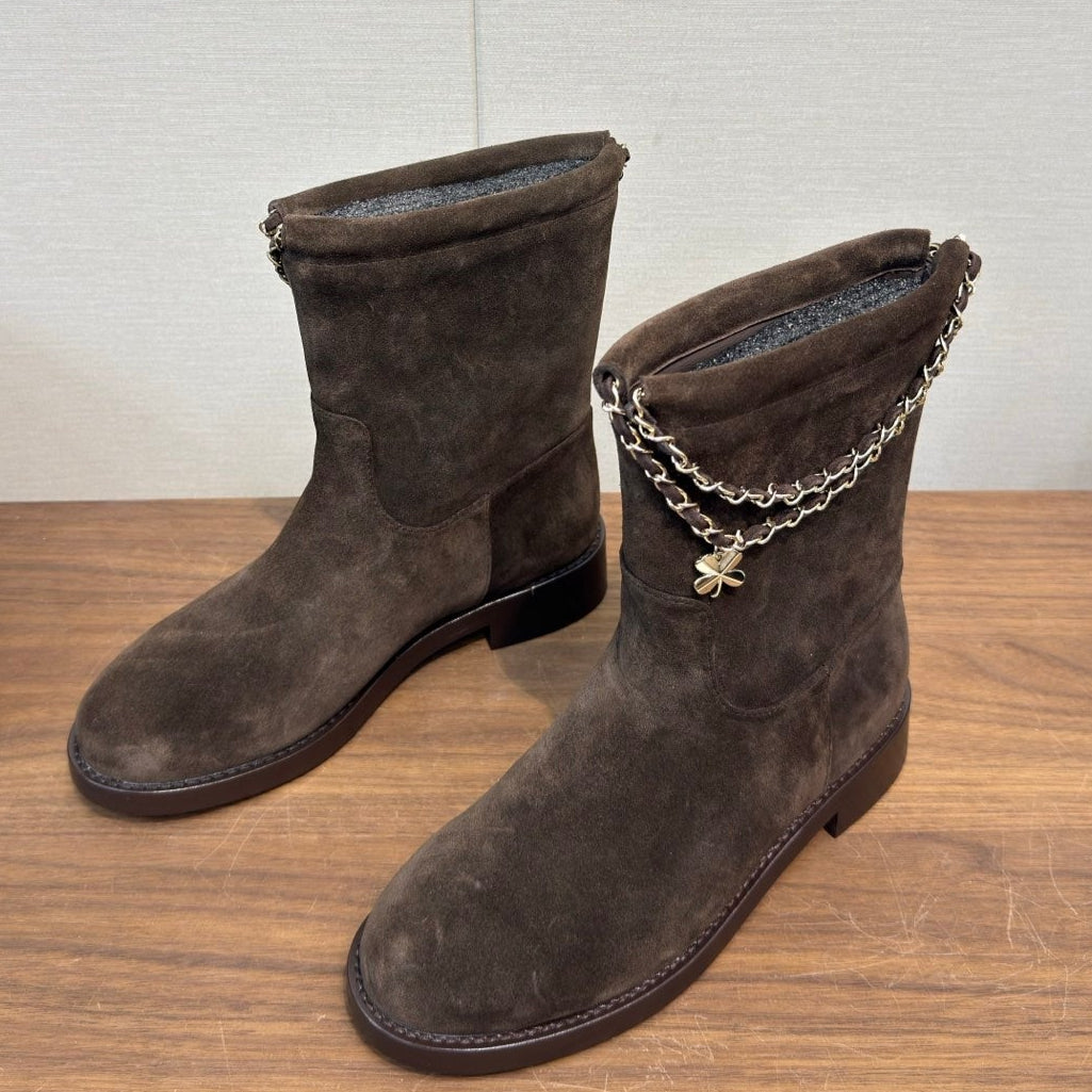 CC 25K Bow Chain Chunky Stretch Boots Black Suede 512072