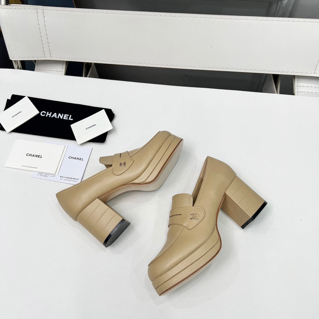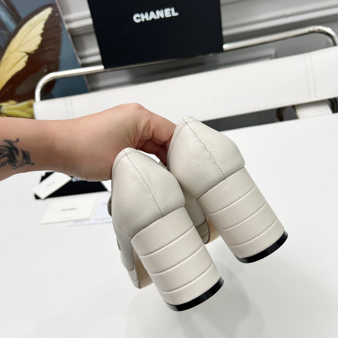 CC 25K Vintage Finition Main Loafers Beige White Calfskin 458644
