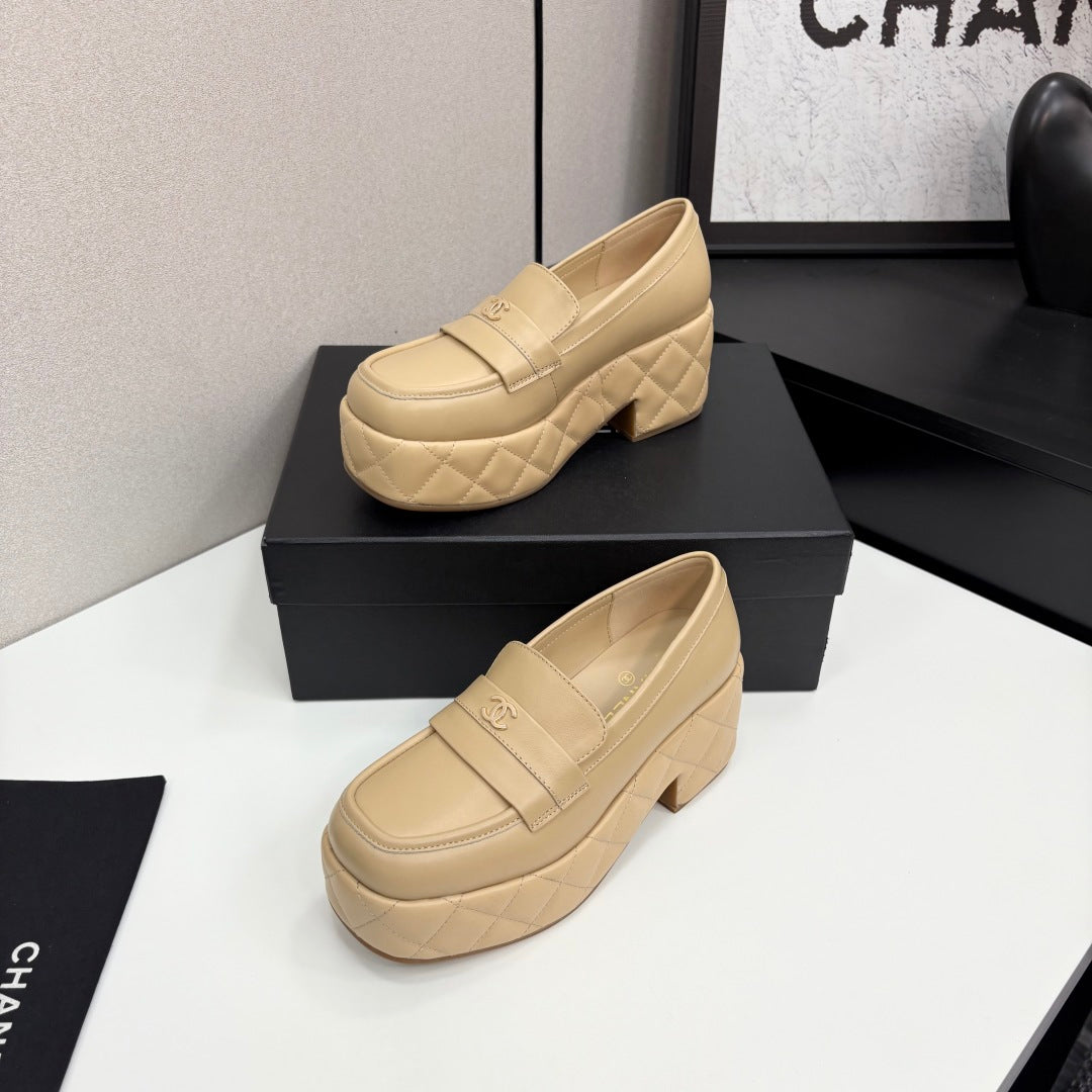 CC 25 Thick-Heeled Loafer 55mm Beige Quilted Lambskin 368827