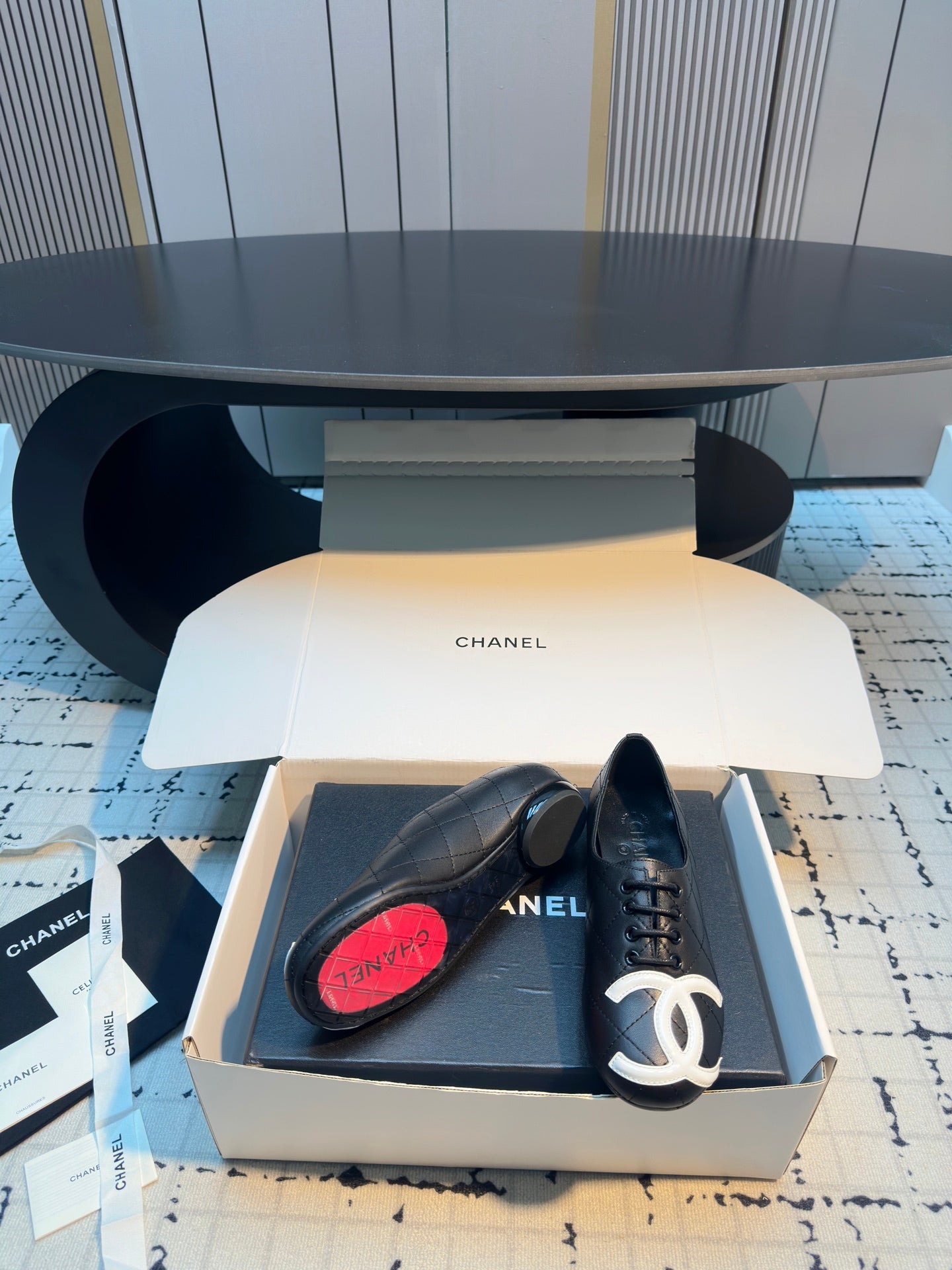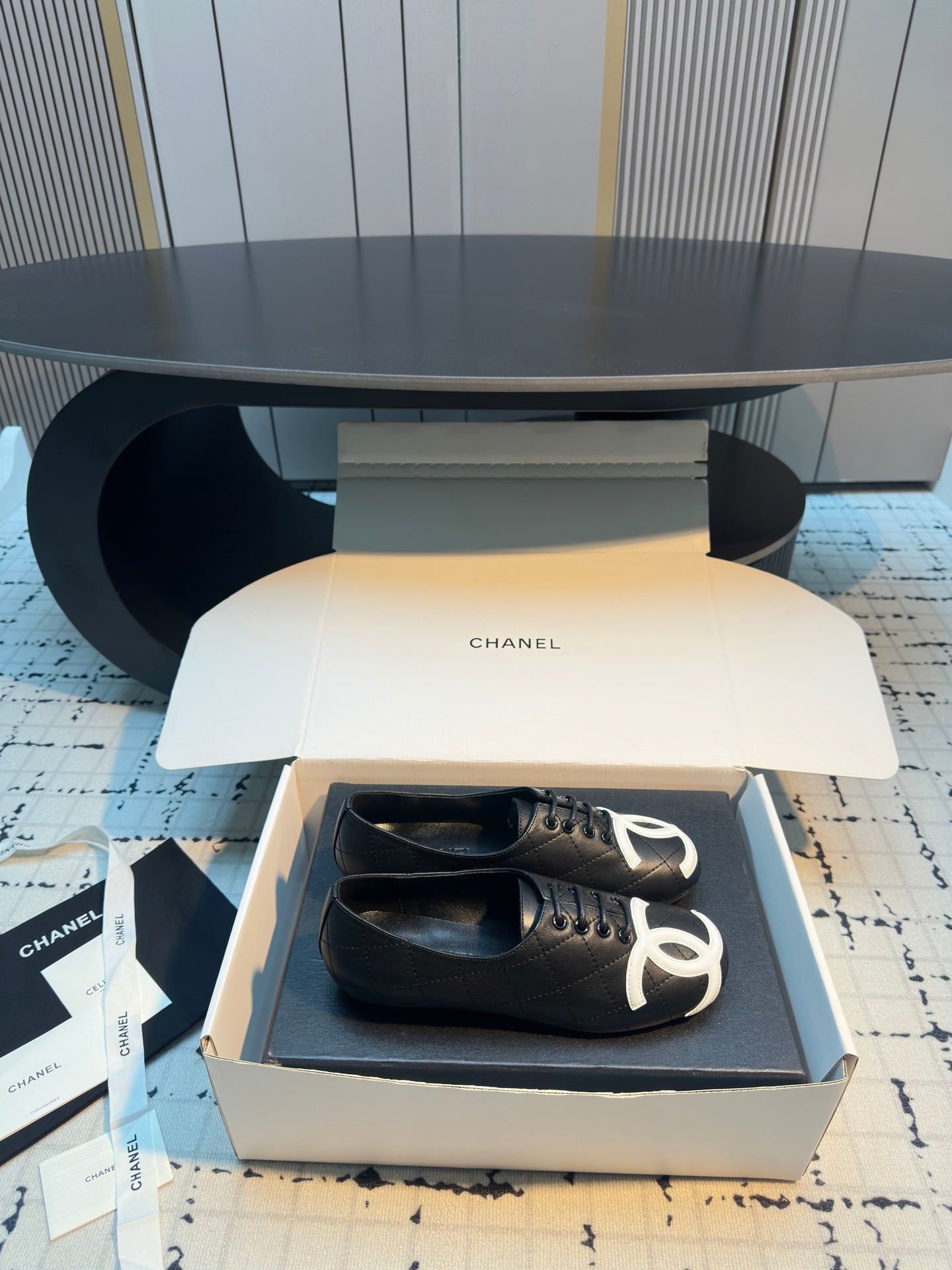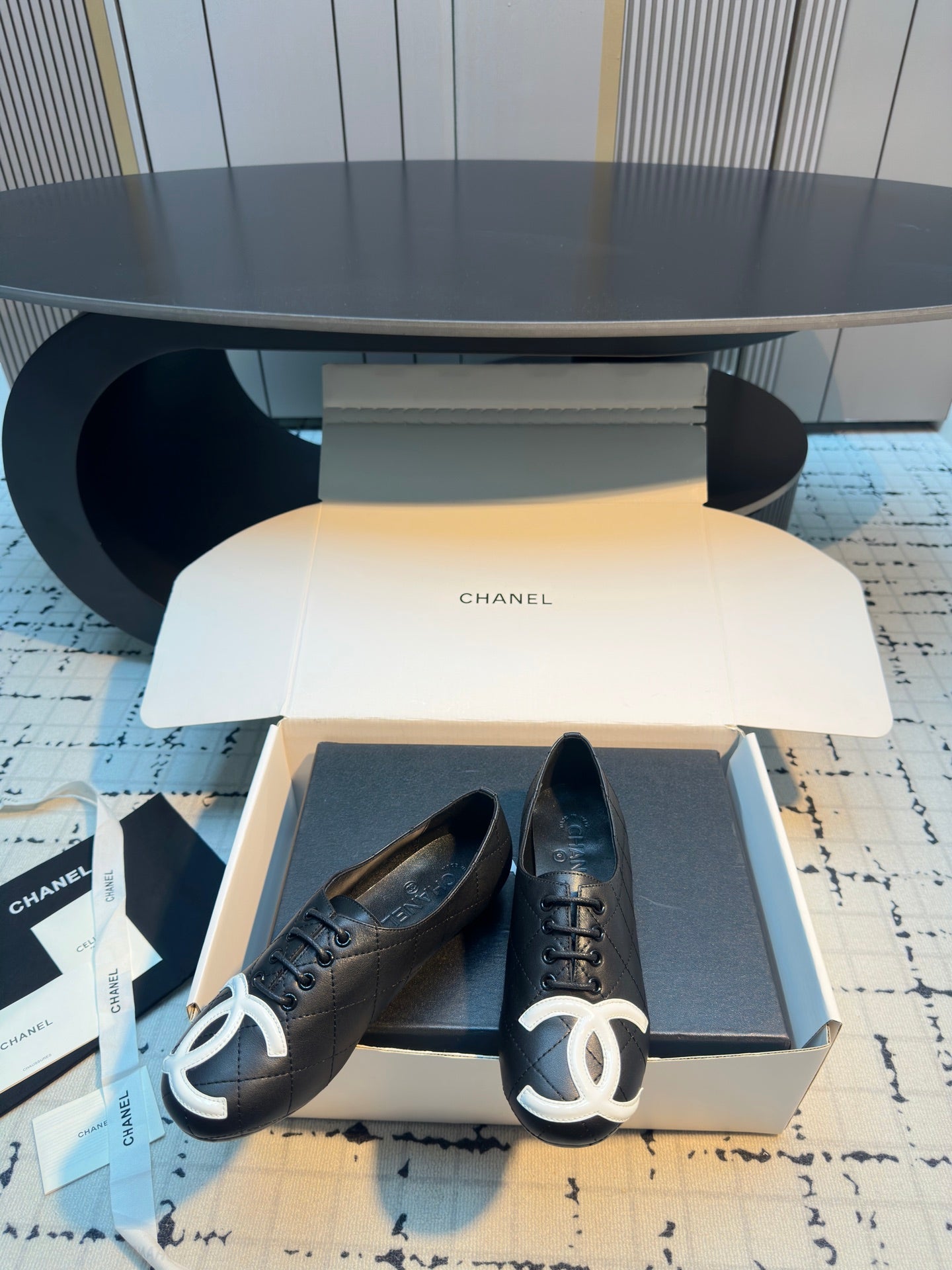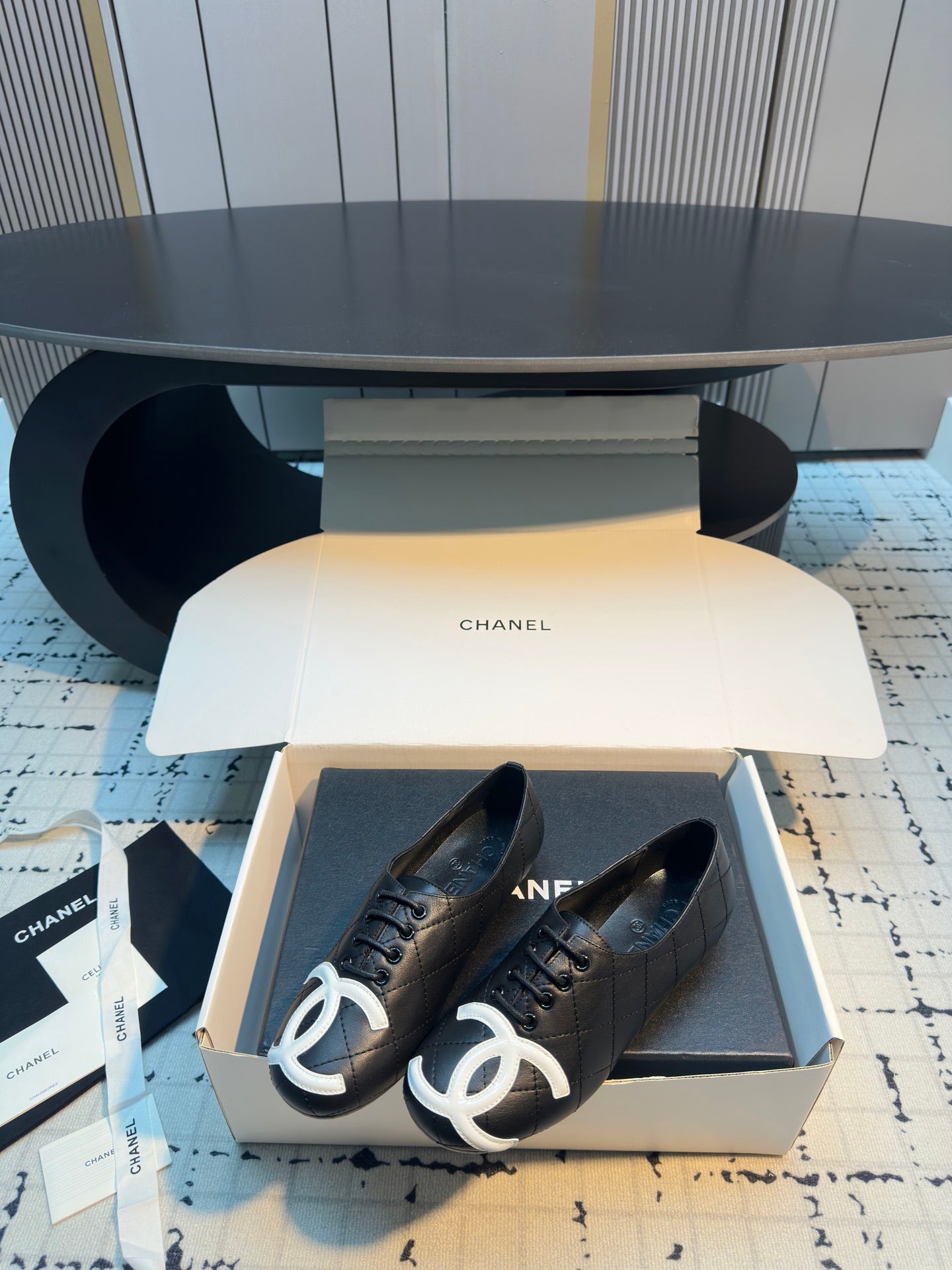 CC Cambon Ballet Shoes Black White Cowhide 538141