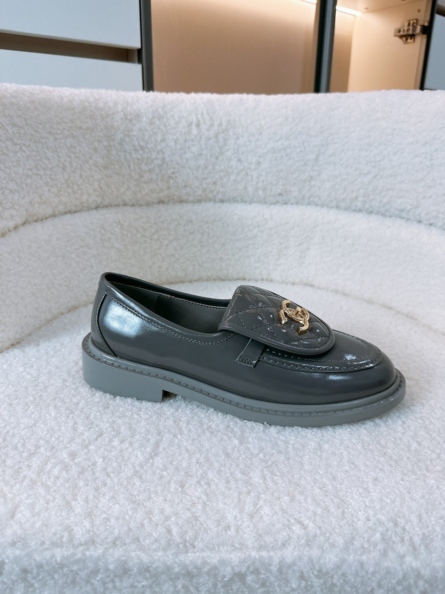 CC Moccasins 25mm In Grey Glossy Lambskin 144641