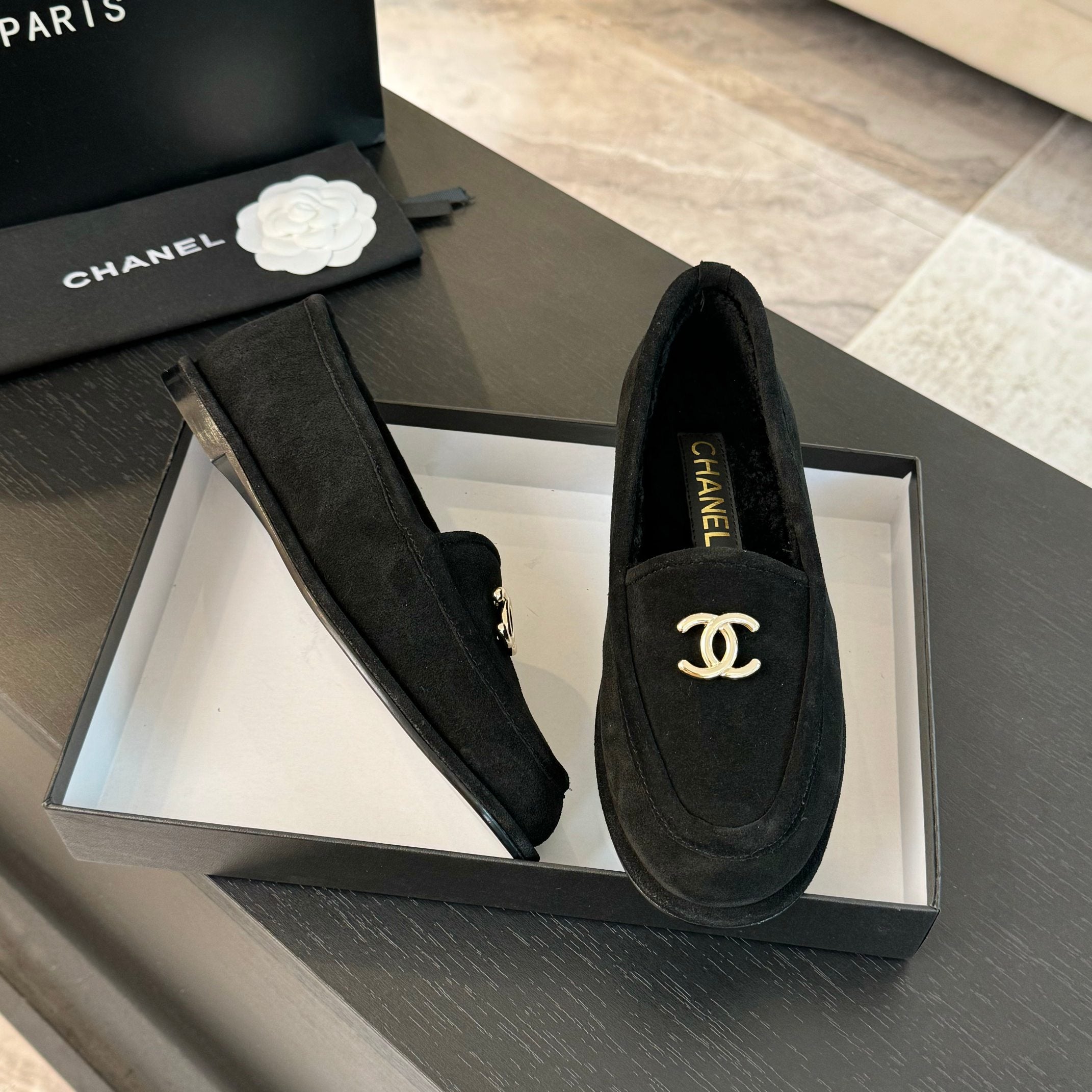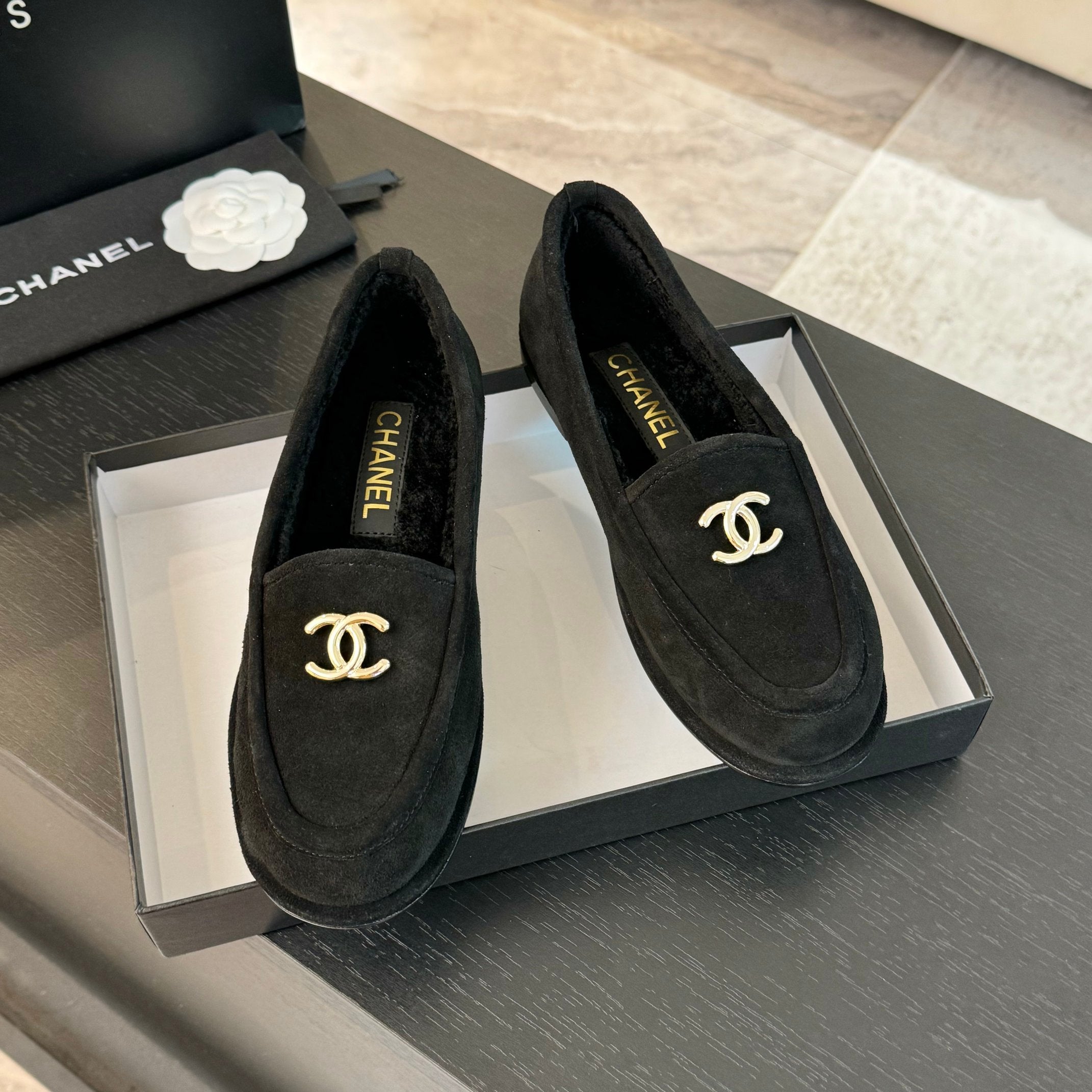 CC Moccasins Black Suede And Wool