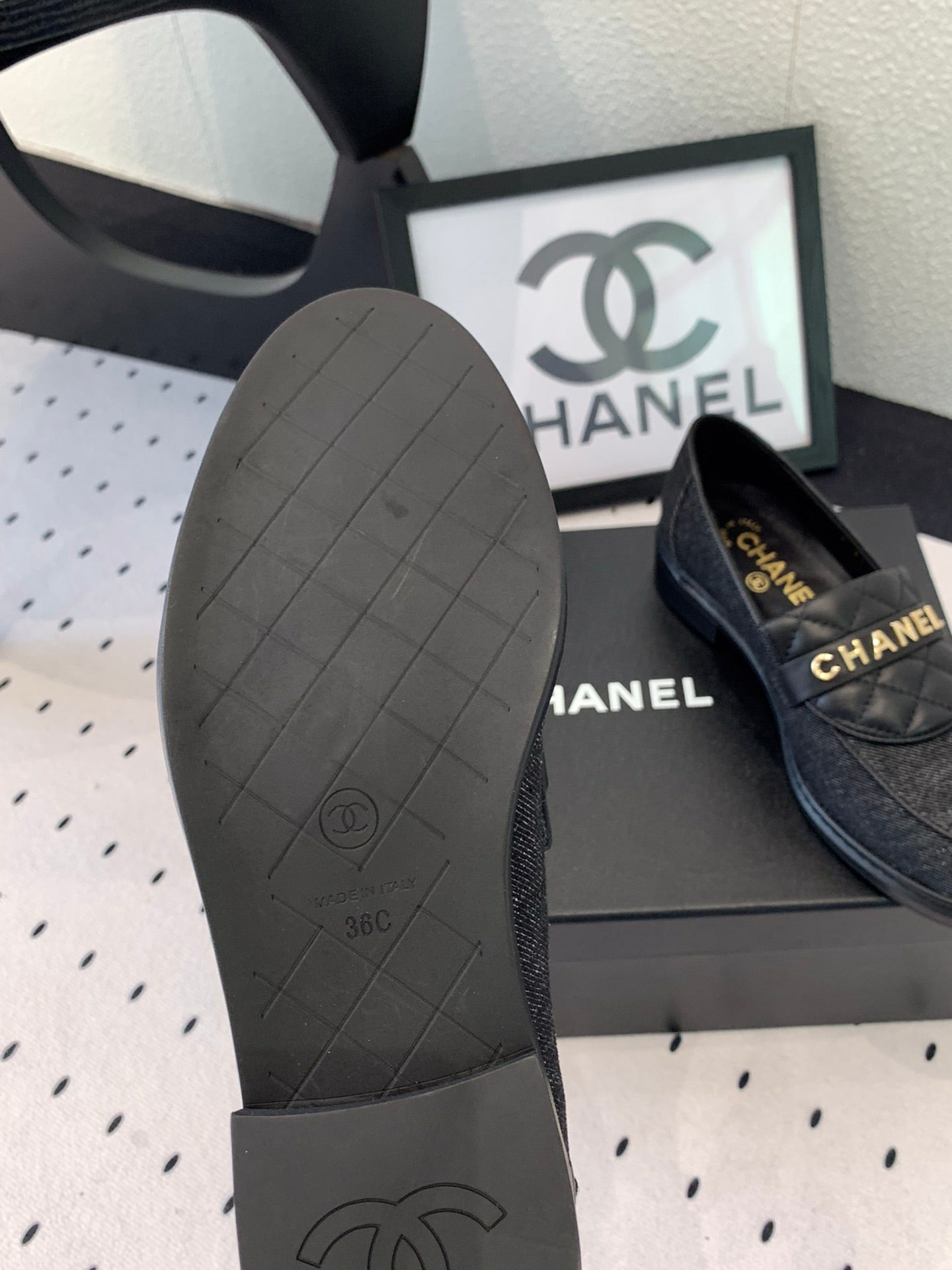 CC Moccasins In Black Denim Fabric 147020