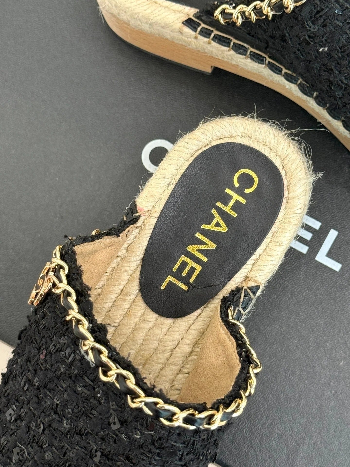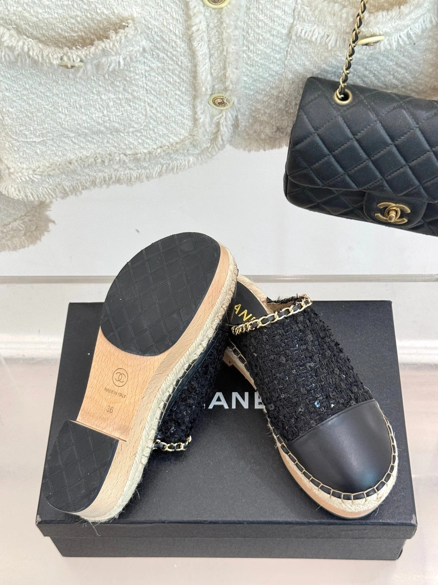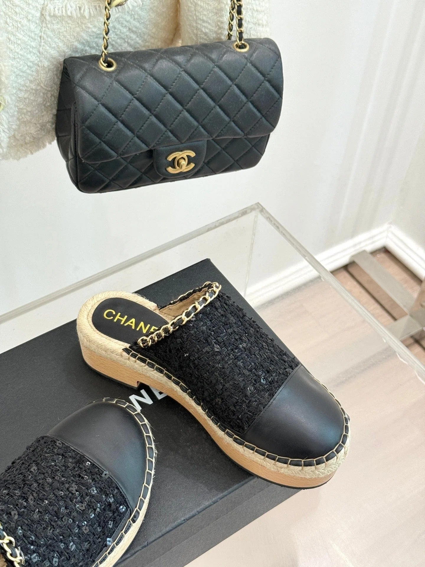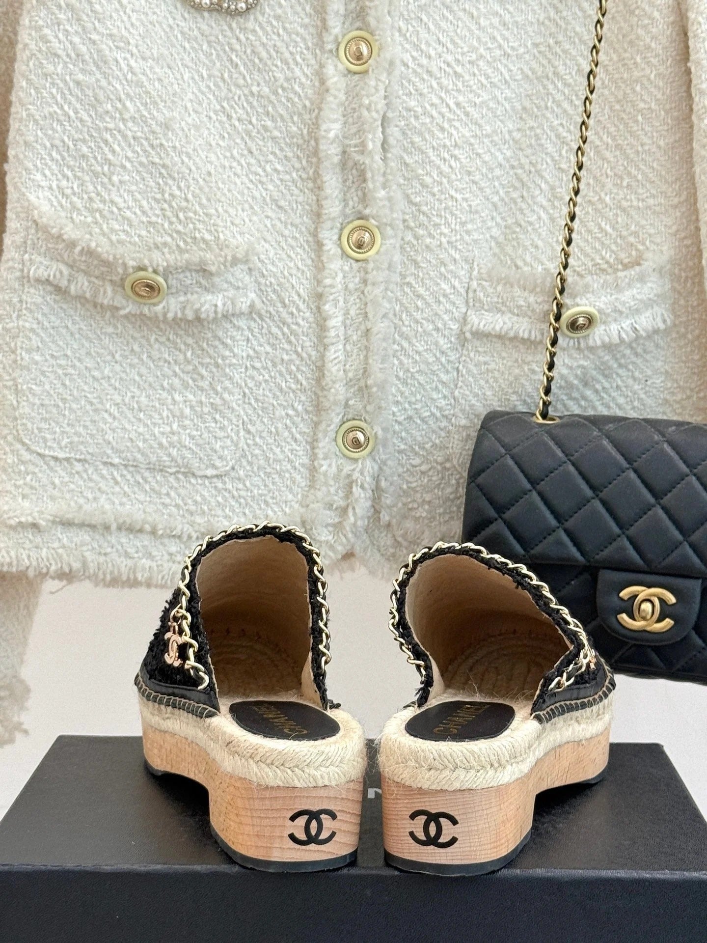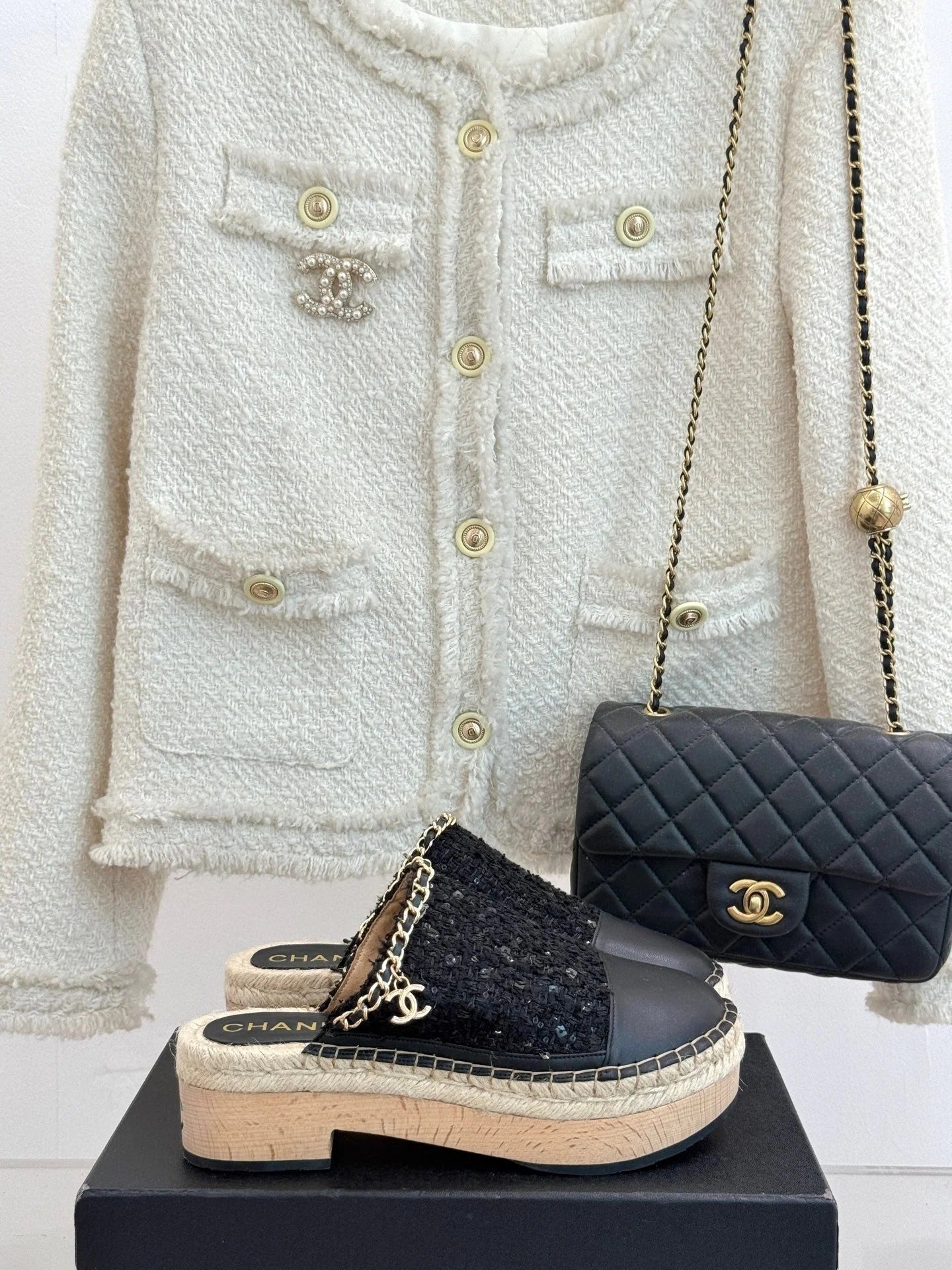 CC Mules 25ss 30 Mm In White Lambskin Mix Pastel Pink Tweed