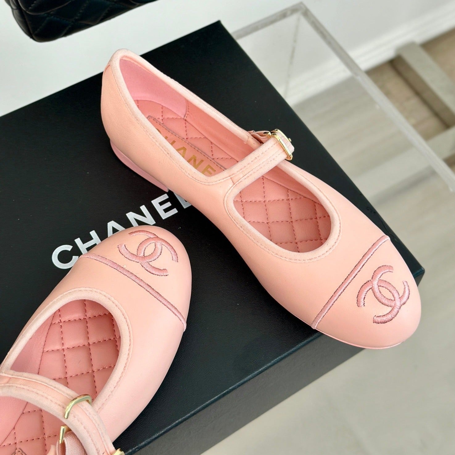 cc mary jane pink quilted calfskin