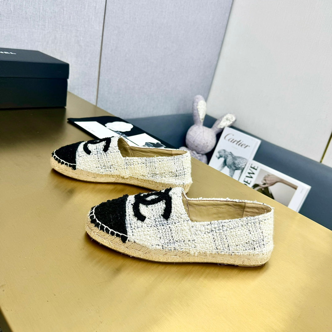 espadrilles white black tweed