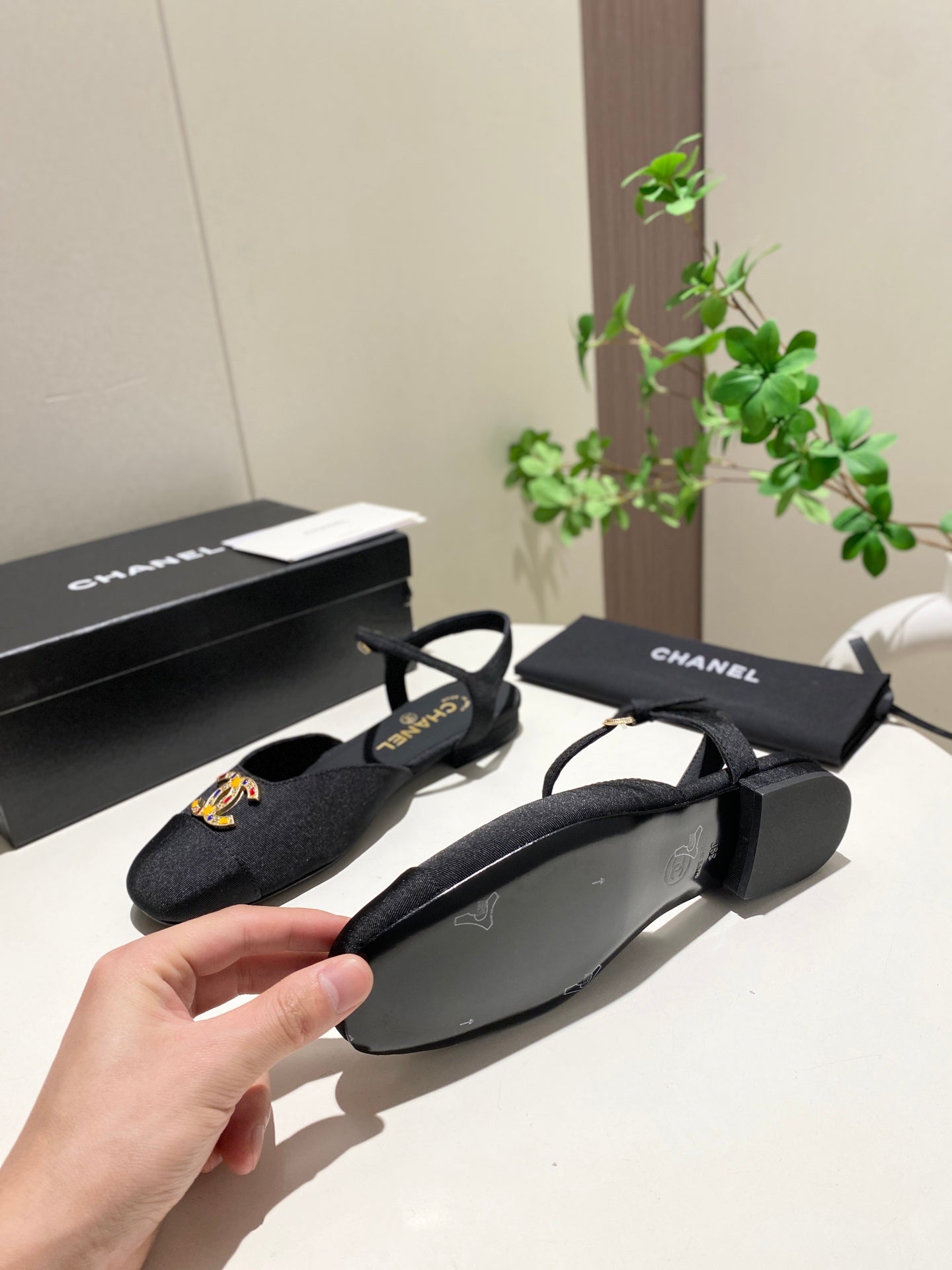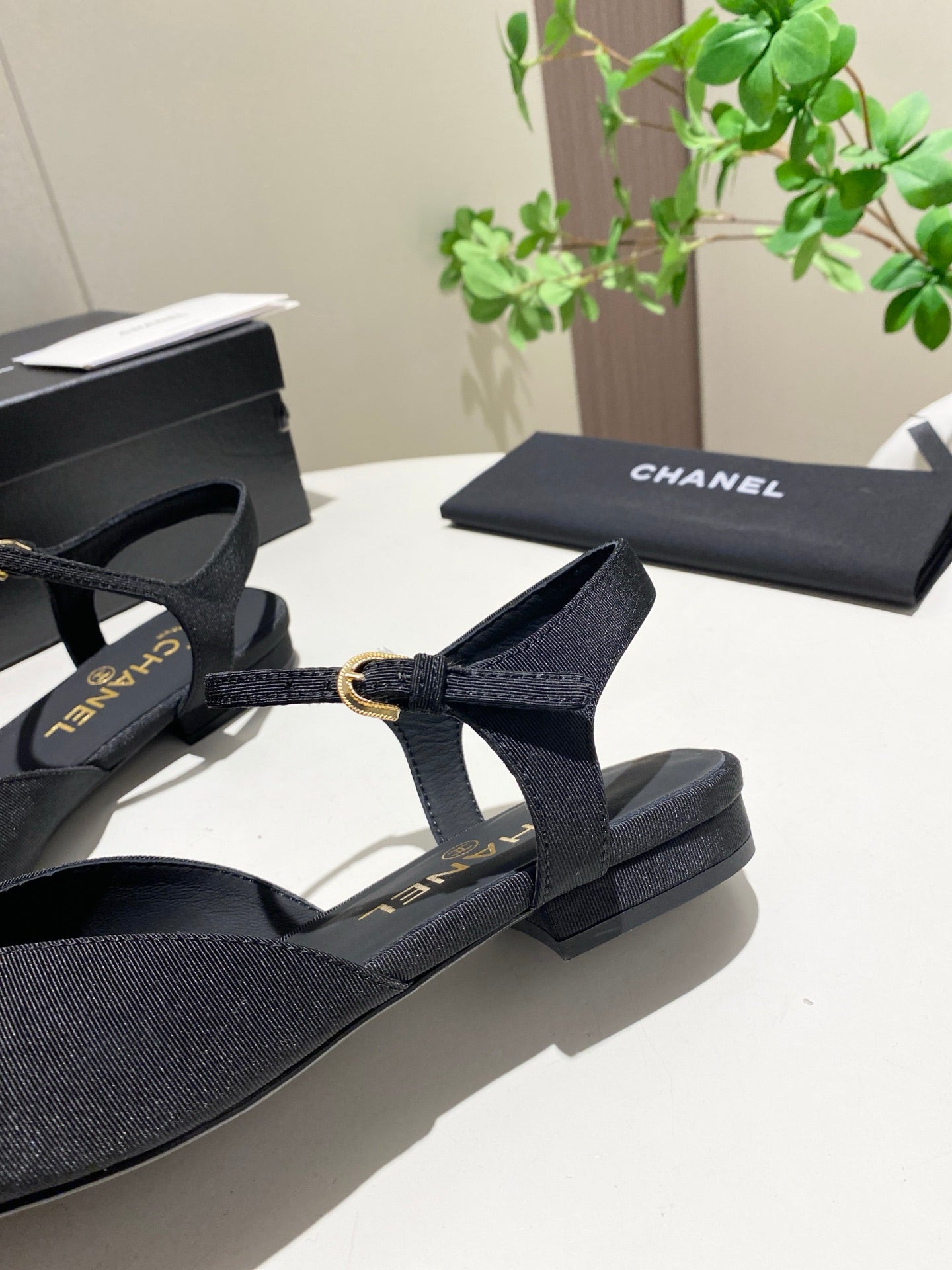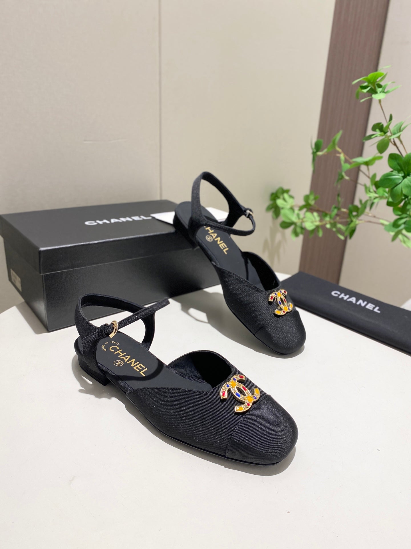 CC 25P Colorful Double Buckle Mary Jane Sandals Black Frabic 466988