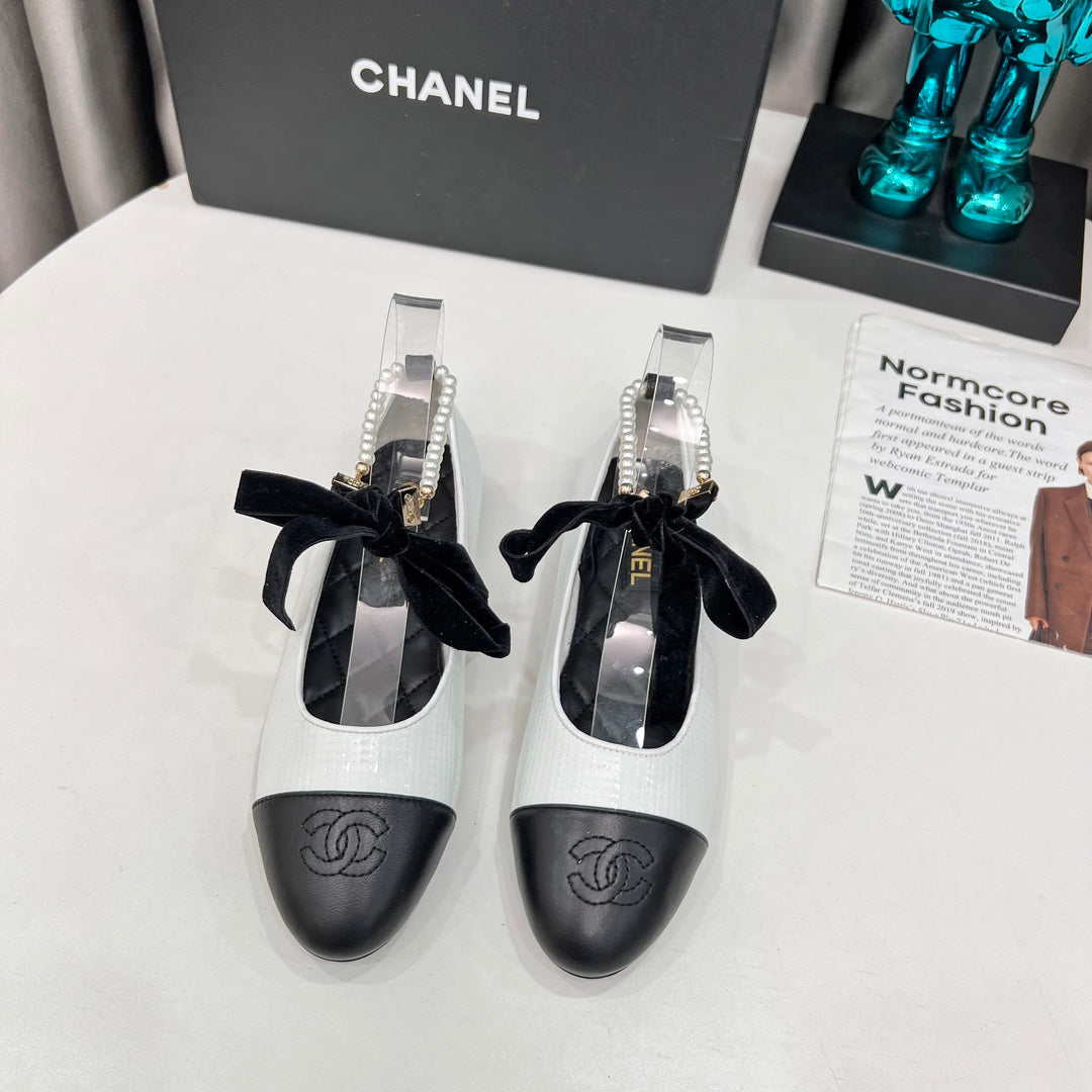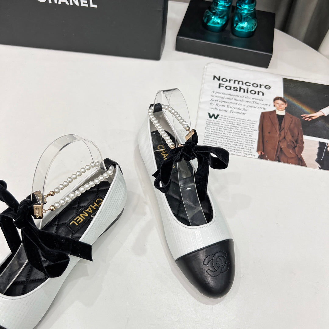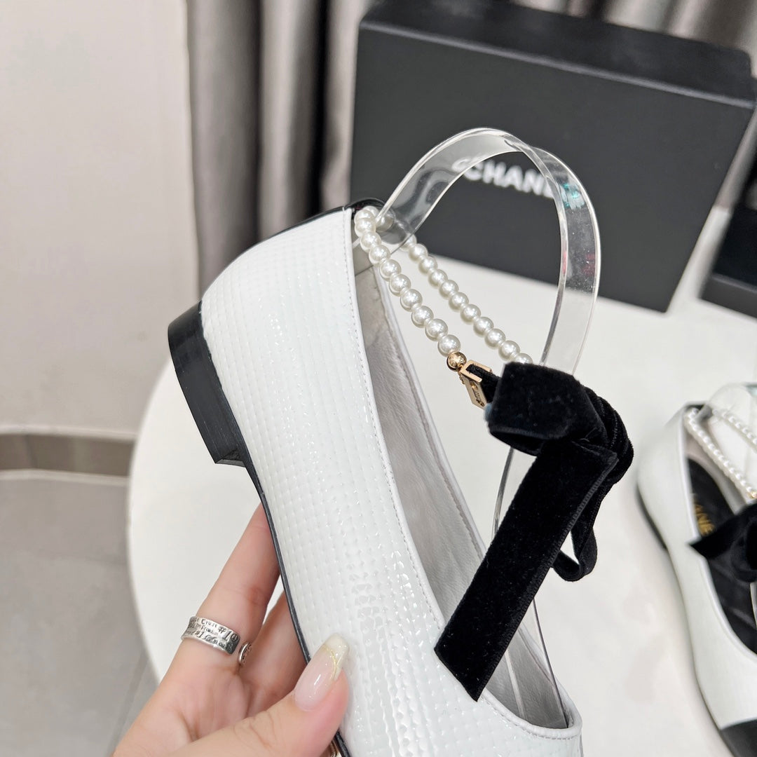 CC Mary Jane White Black Studded With Pearls Lambskin